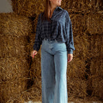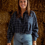 YOLANDA DARK BLUE CHECKERED BLOUSE