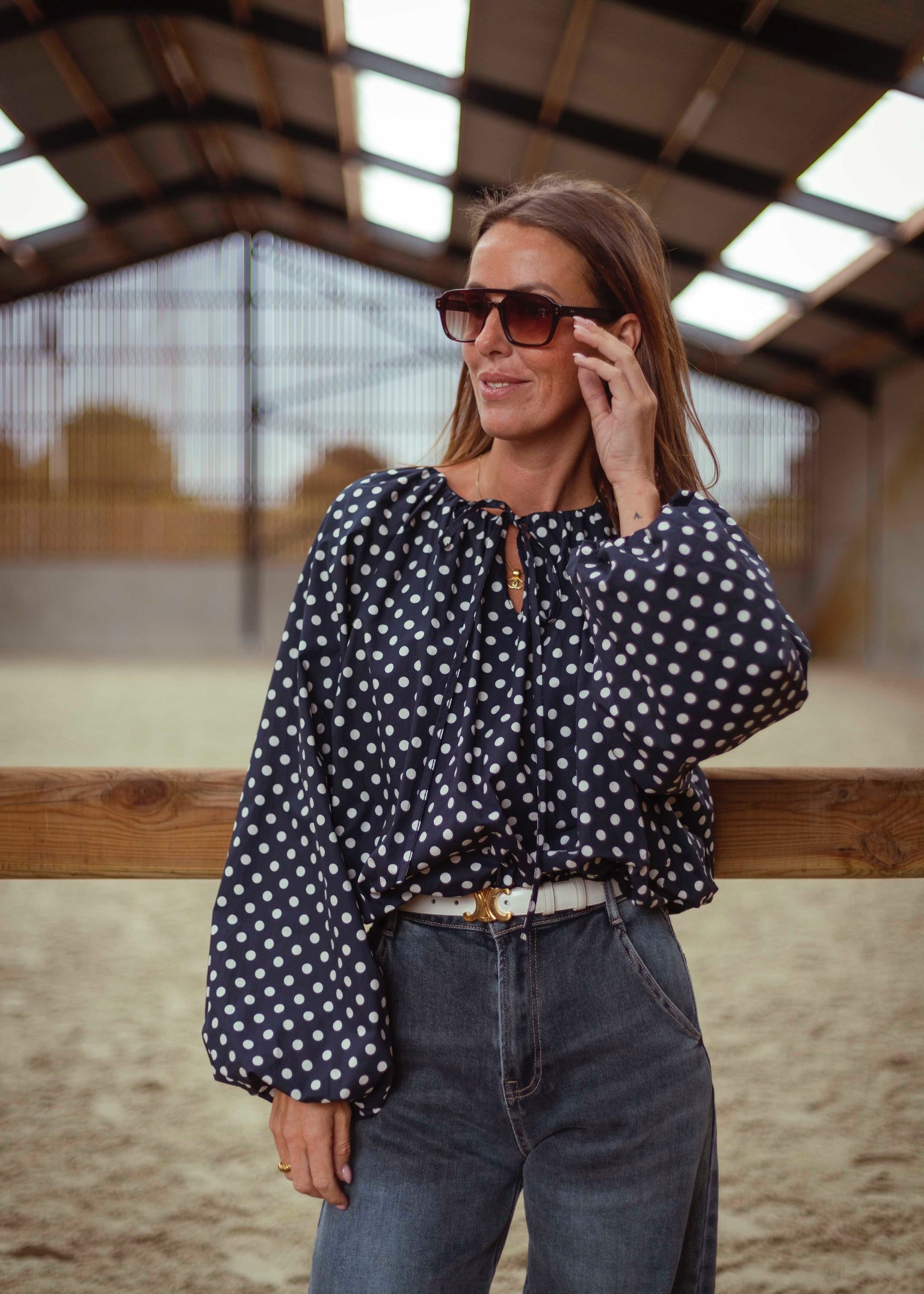 EUDORA DARK BLUE POLKADOTS BLOUSE