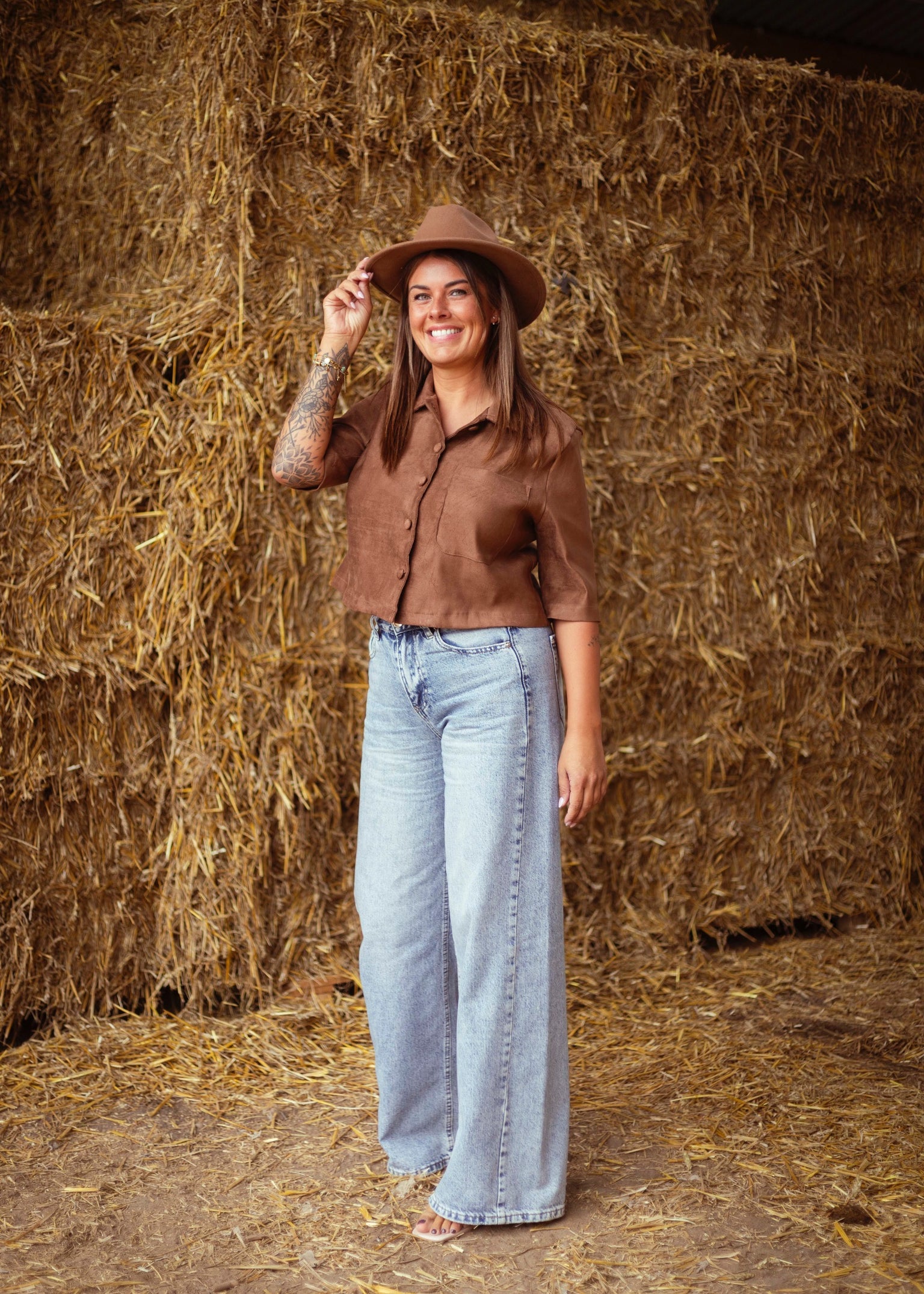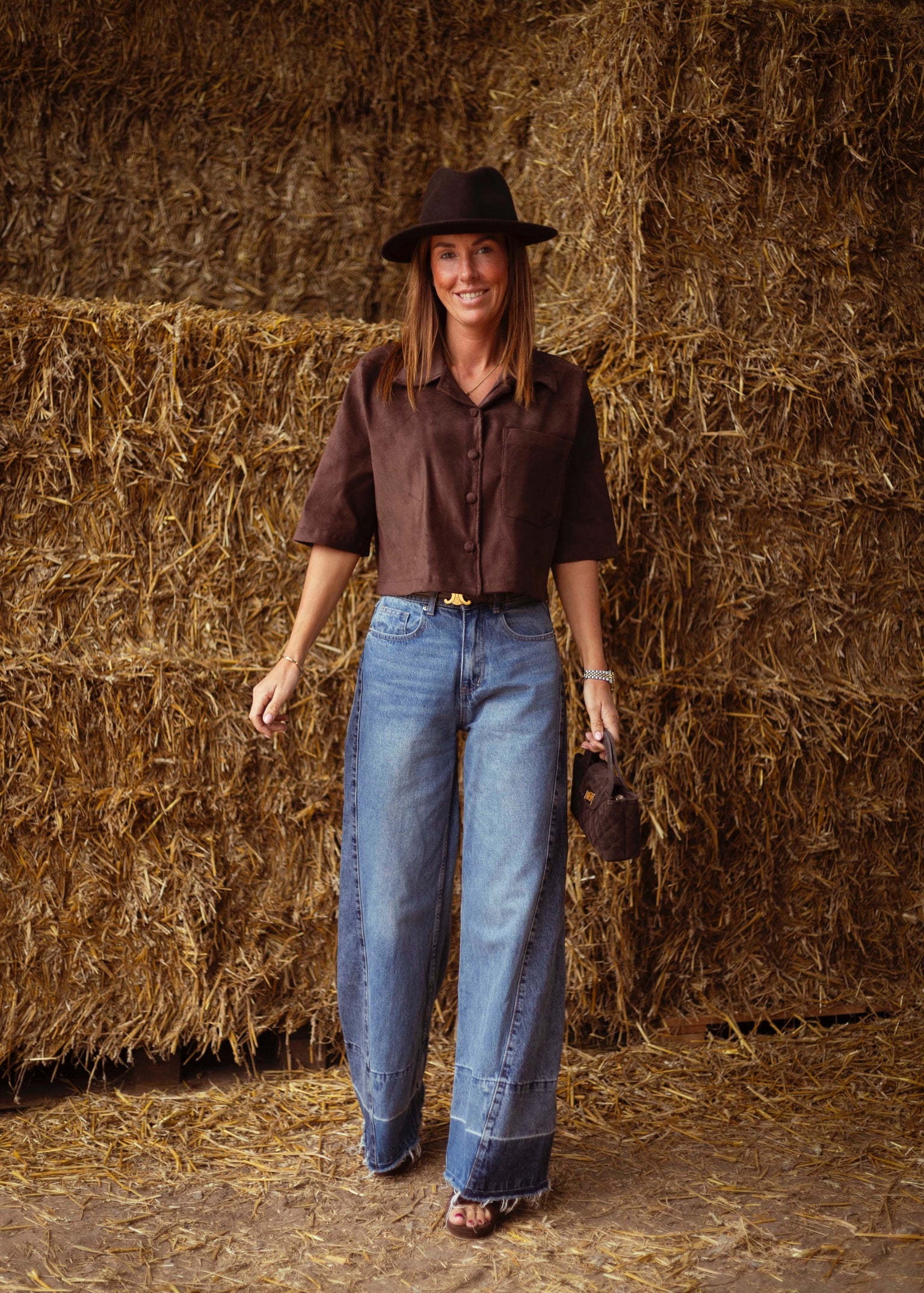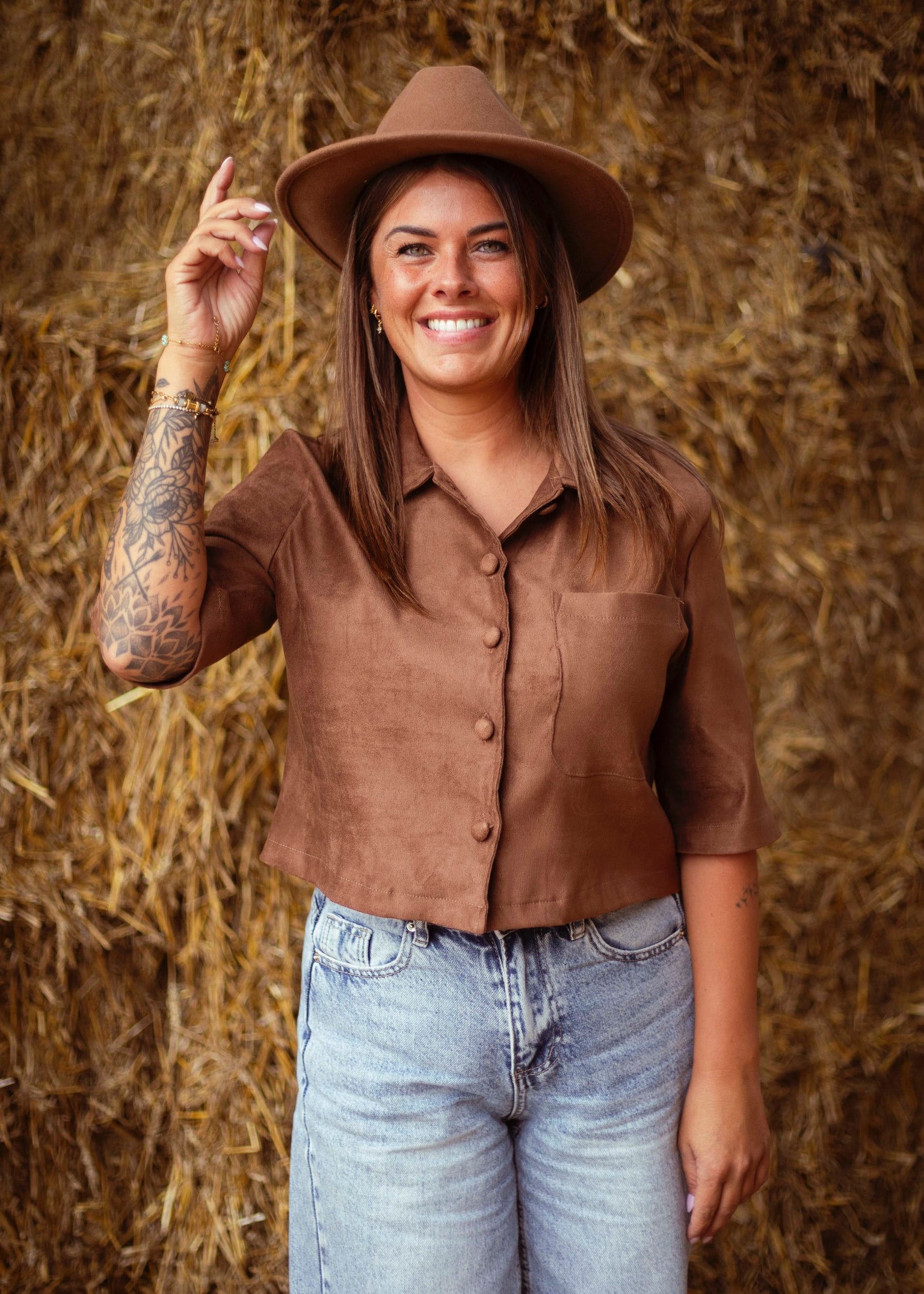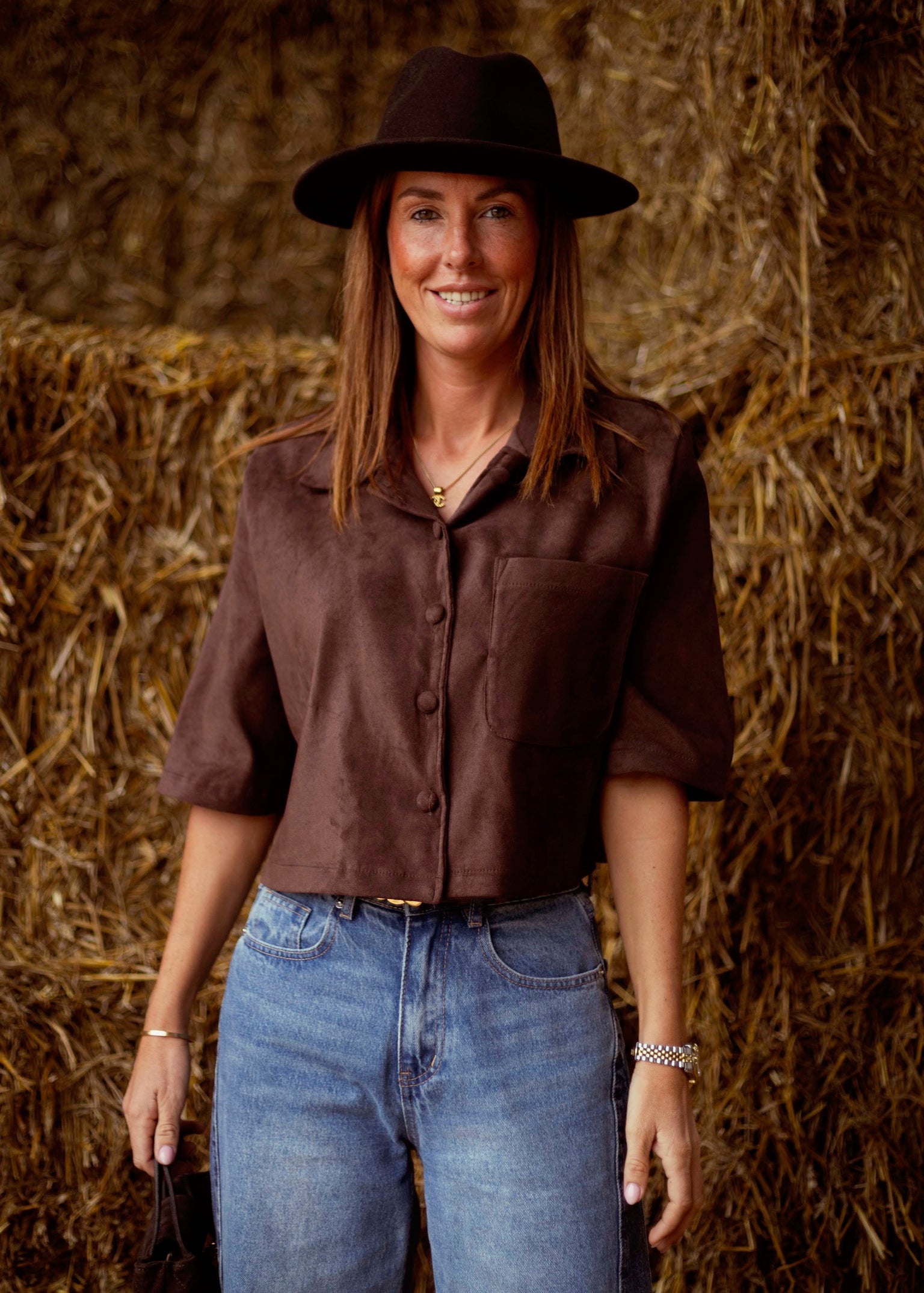 SKYLAR BROWN SUEDE BUTTON BLOUSE