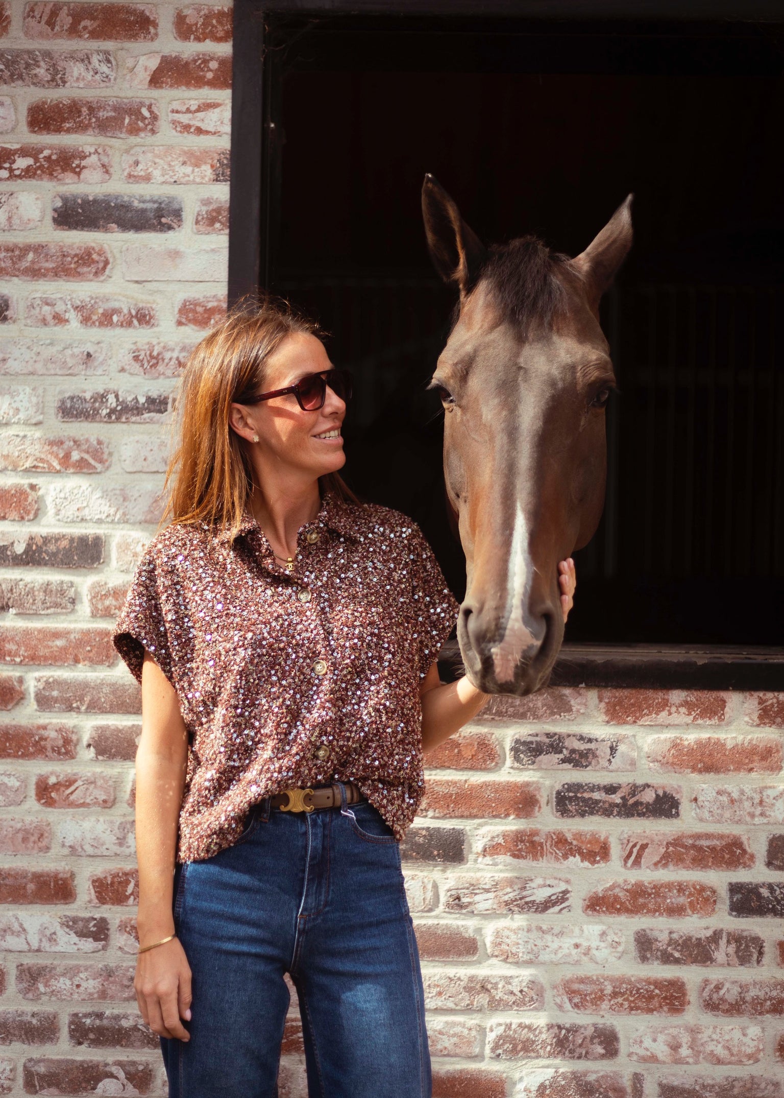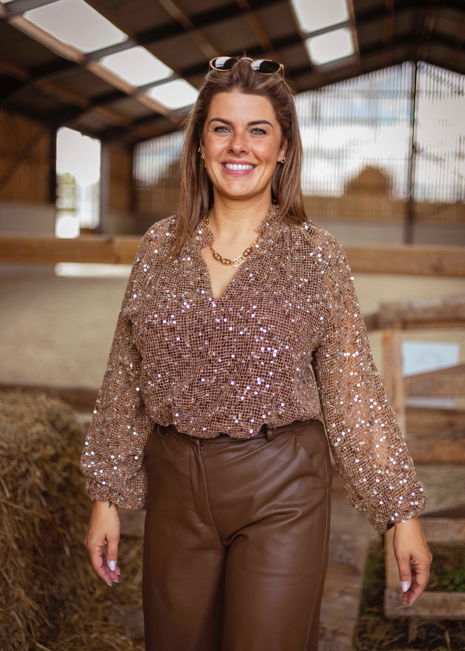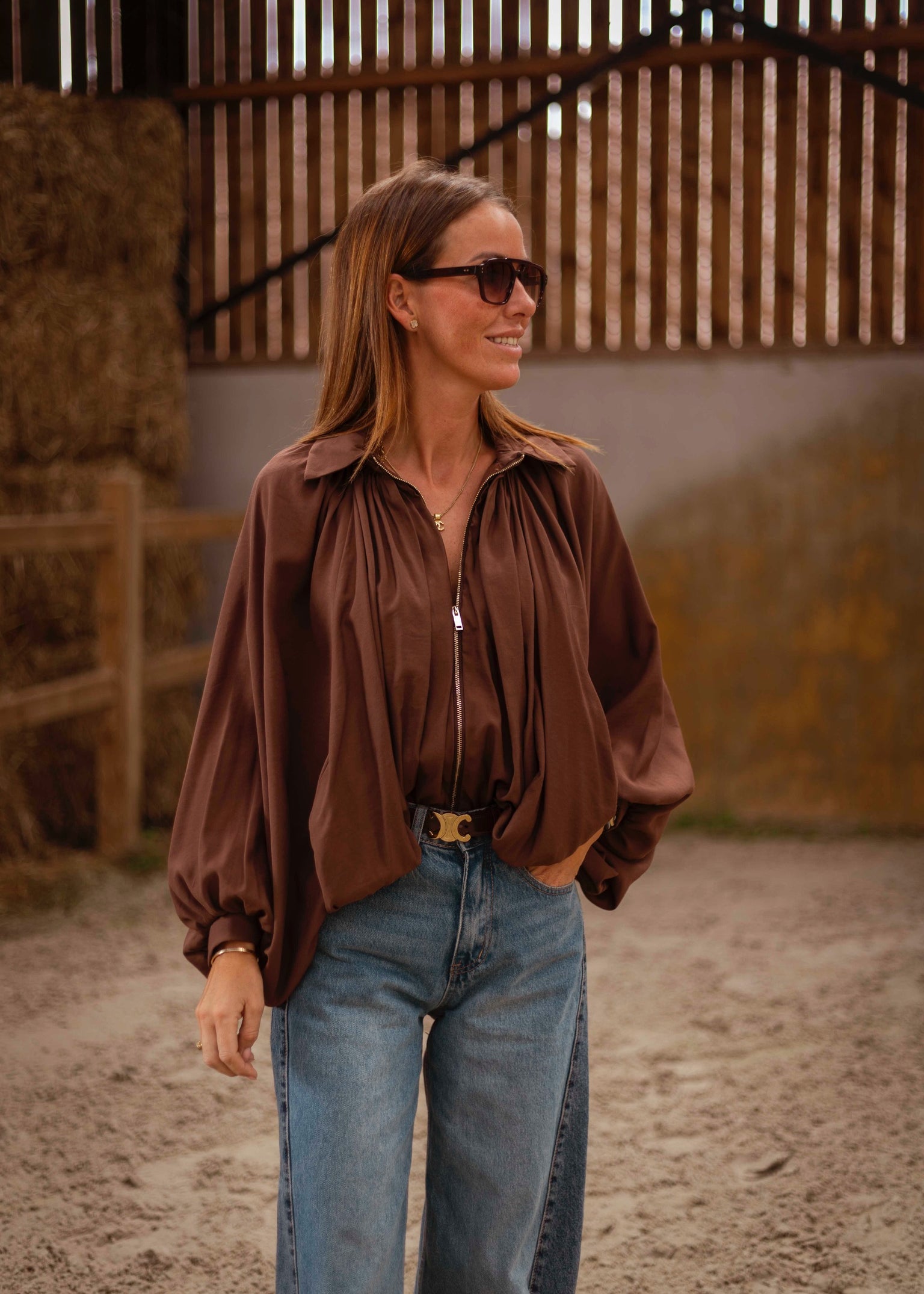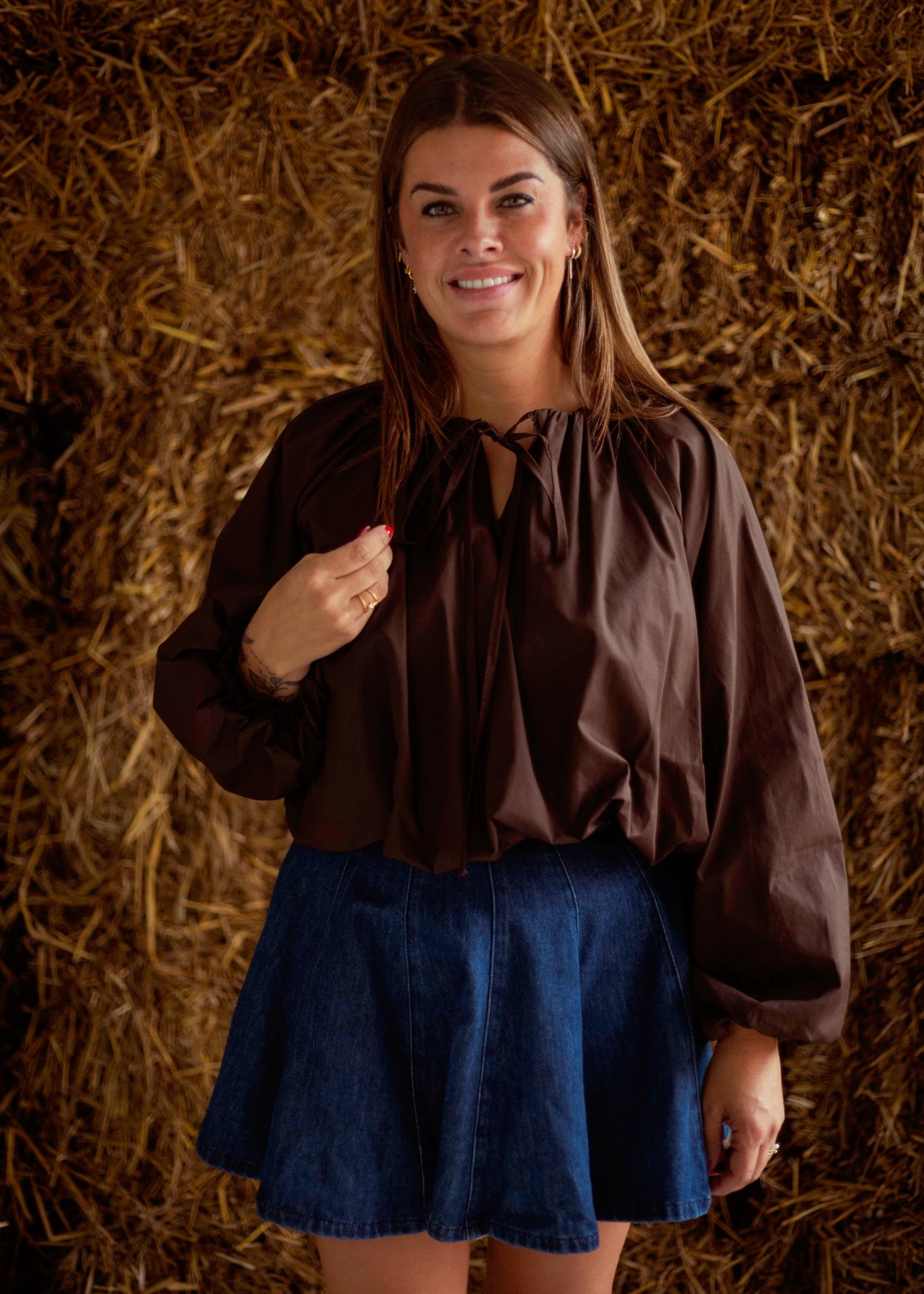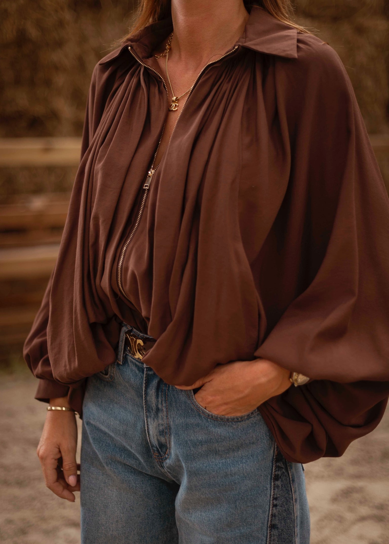 SKYLAR BROWN SUEDE BUTTON BLOUSE
