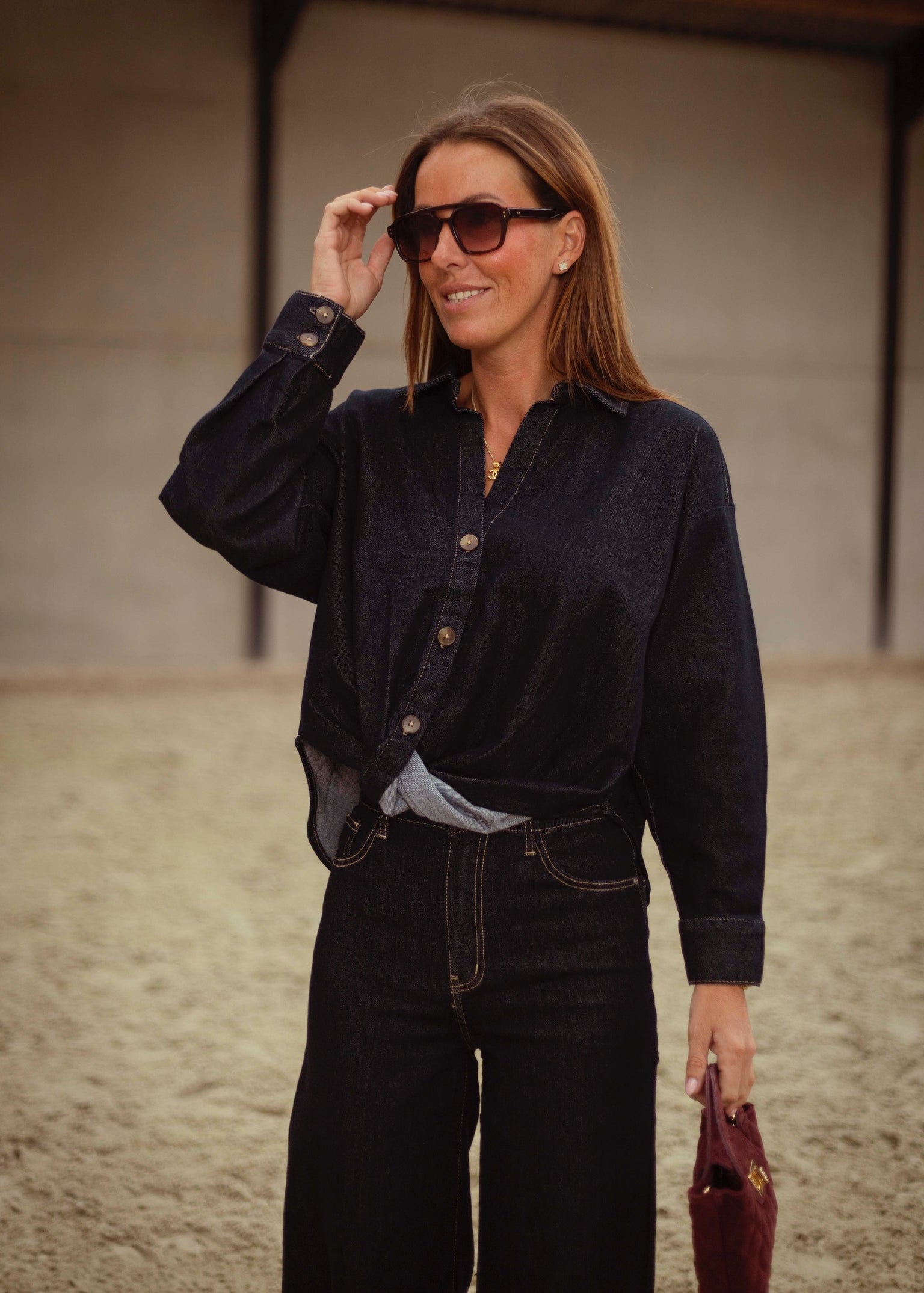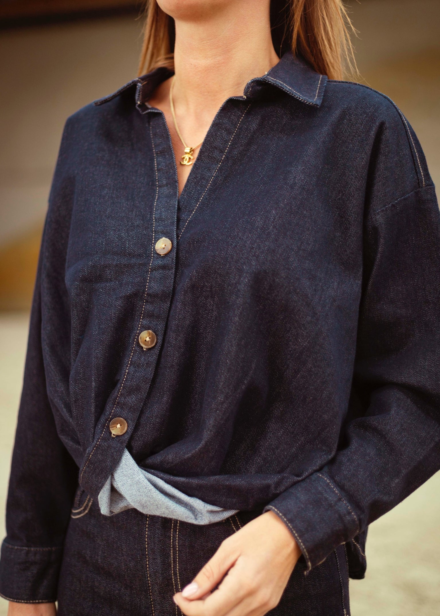 DARK BLUE DENIM BUTTON BLOUSE 3252