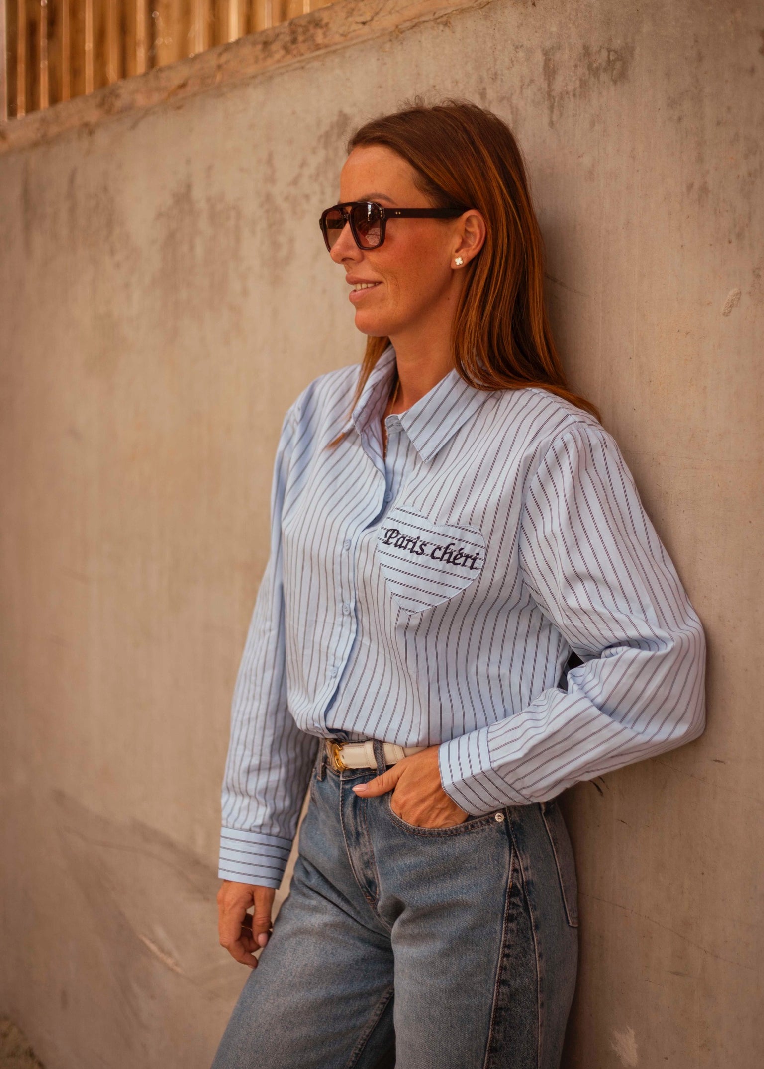 PARIS CHERI LIGHT BLUE STRIPED BLOUSE
