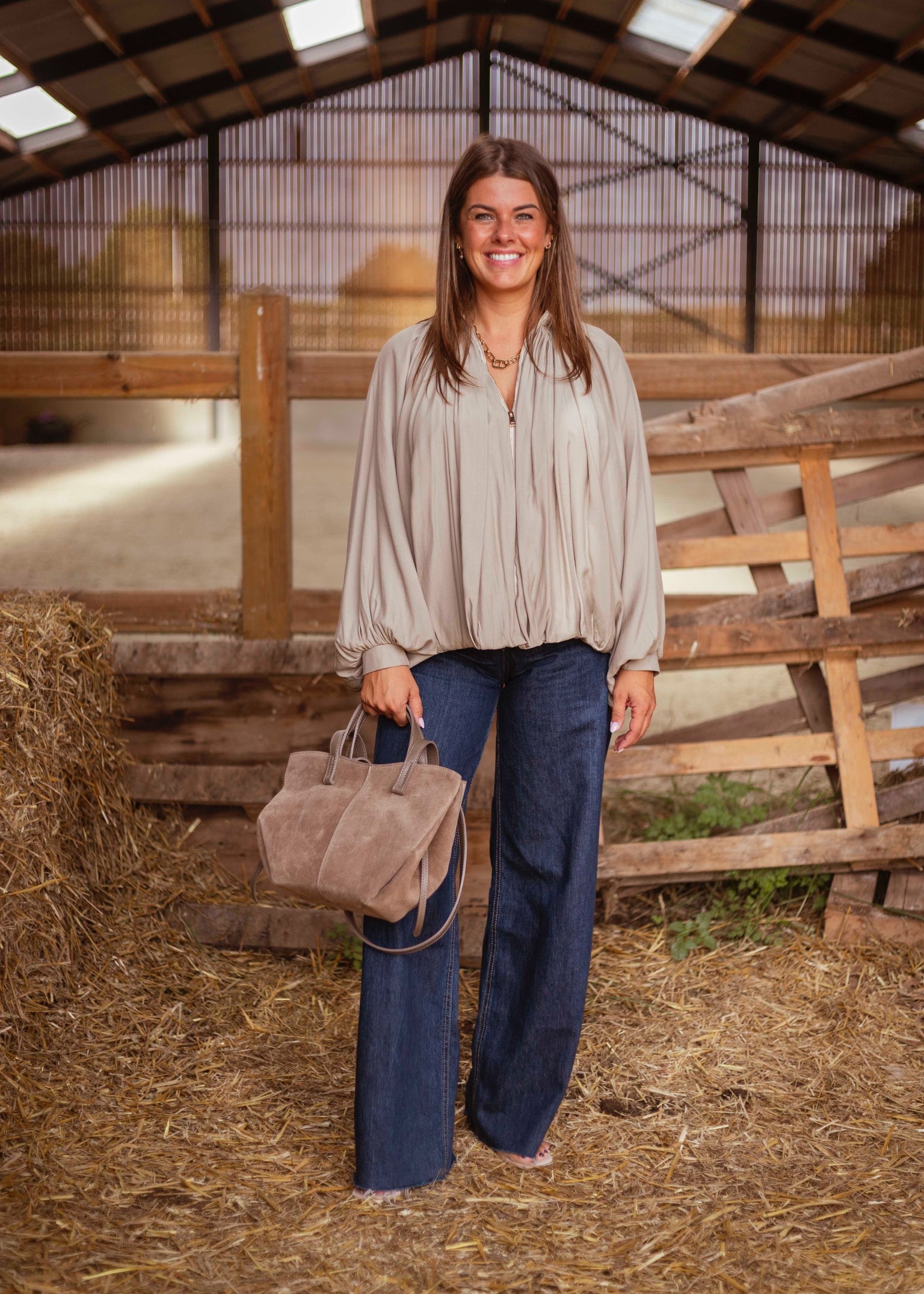 MAVIS TAUPE PERFECT FALL BLOUSE