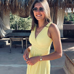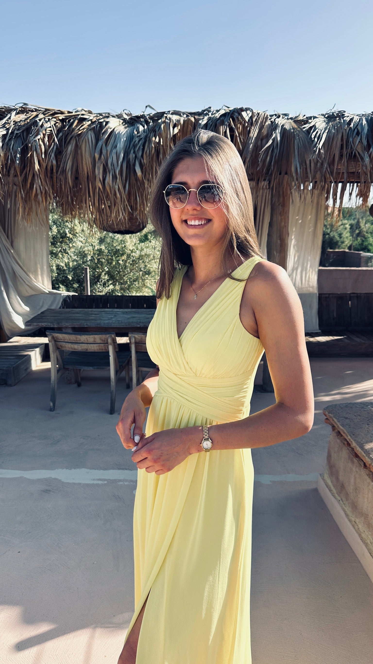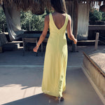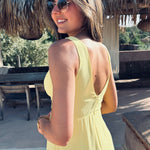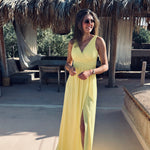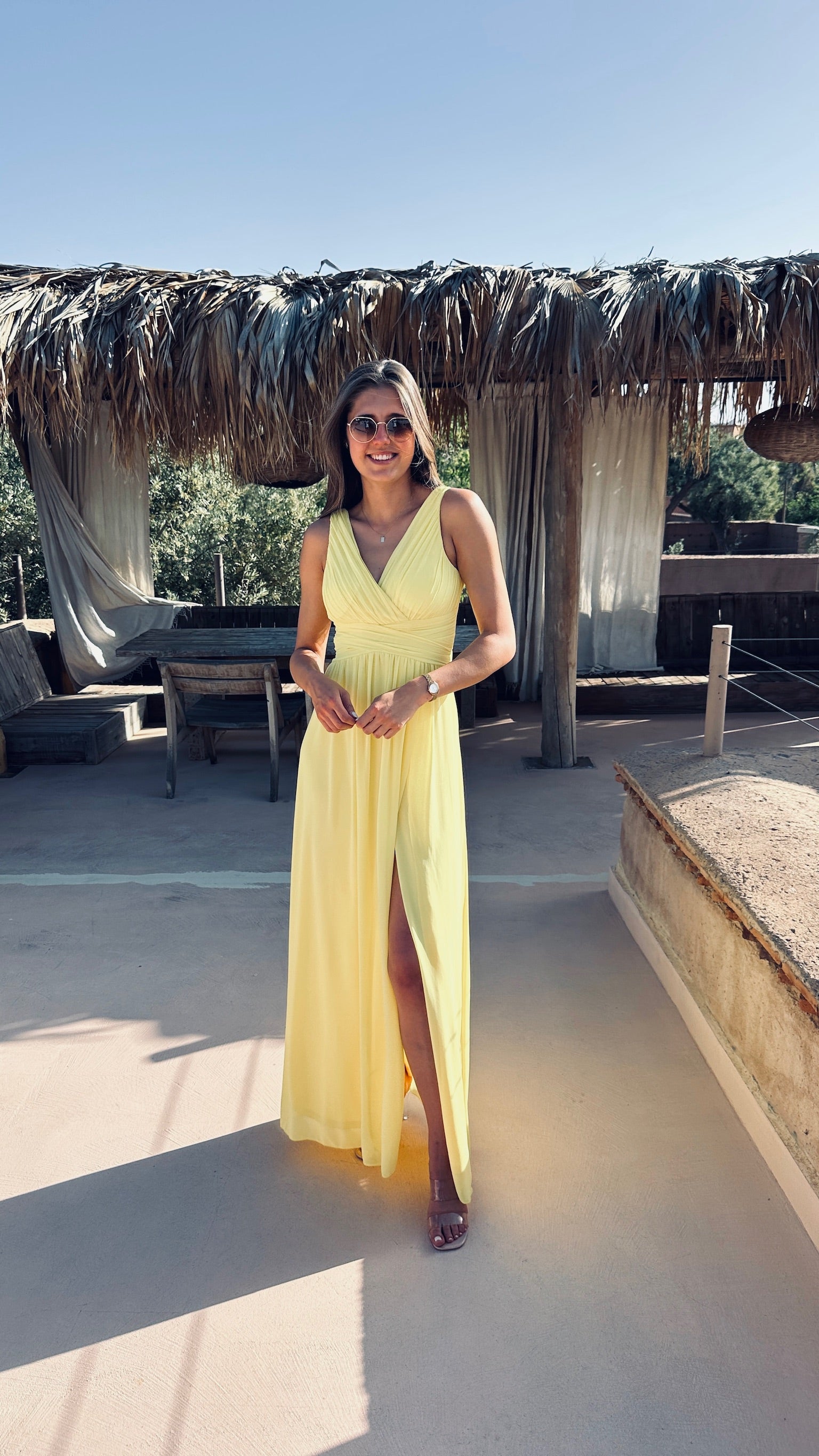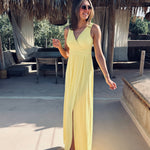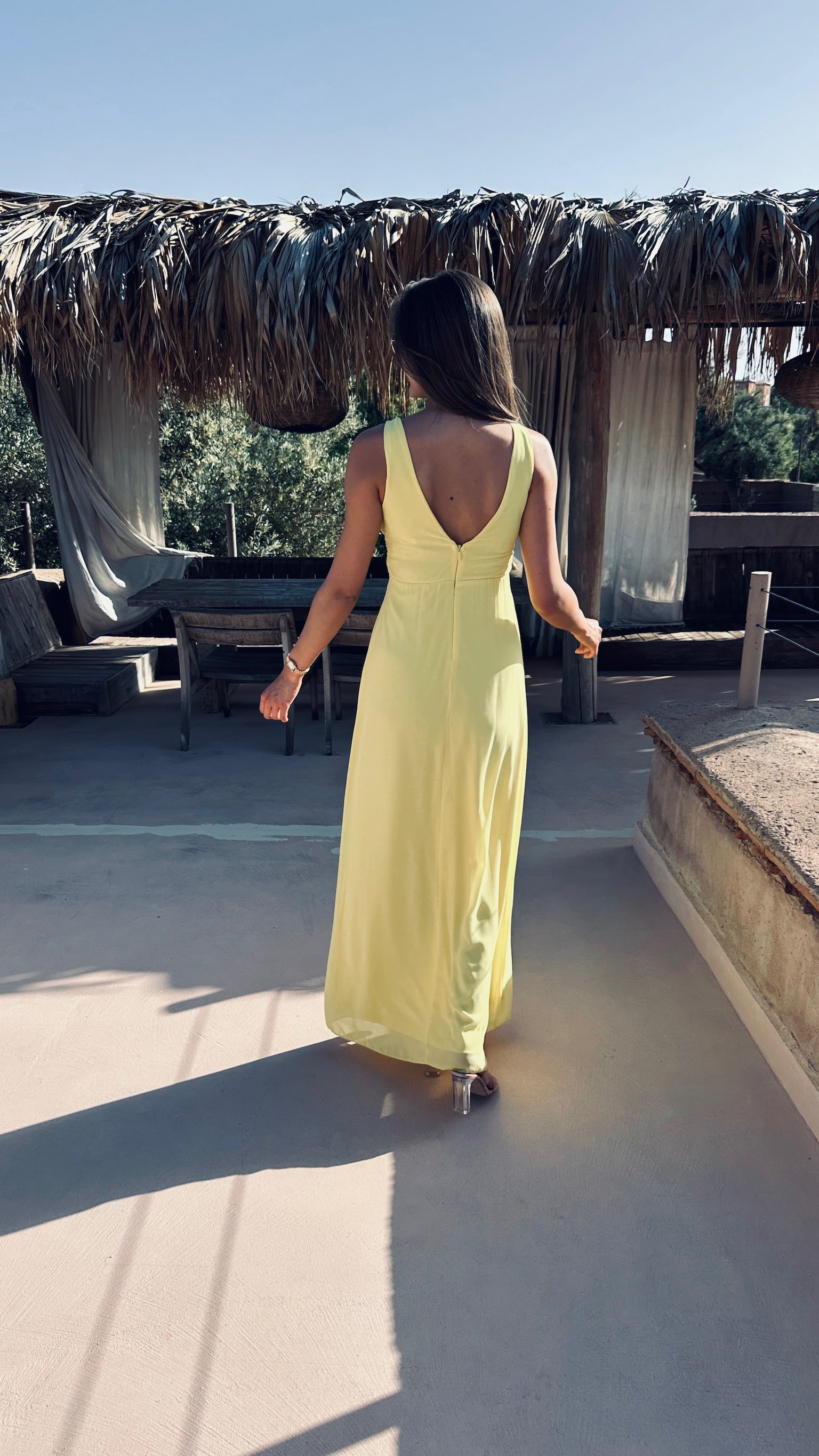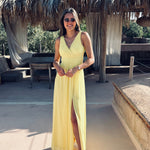 Deze elegante lange jurk heeft een simplistisch design met een adembenemende open V-hals op de rug. Simpel, maar oh zo fantastisch mooi – perfect voor een bruidsfeest en beschikbaar in vele kleuren, zodat er voor iedereen iets wils is!