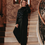Een stijlvolle zwarte broek met riem die een elegante en verzorgde uitstraling geeft. Het tijdloze model is makkelijk te combineren en voegt een feestelijke touch toe aan elke outfit. Perfect om tijdens de feestdagen comfortabel én chic voor de dag te komen.