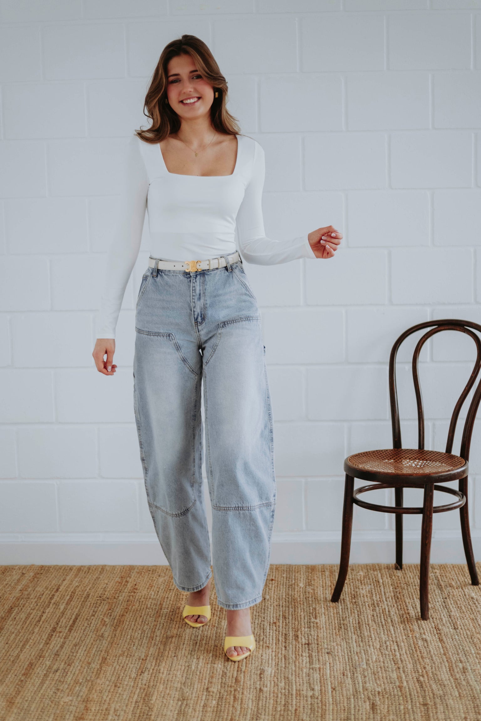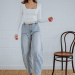 Een speelse denim met volume en een frisse lente uitstraling. De lichte wassing en ballonvorm geven je outfit een eigentijdse twist die direct opvalt. Niet voor niets onze absolute favoriet dit seizoen.