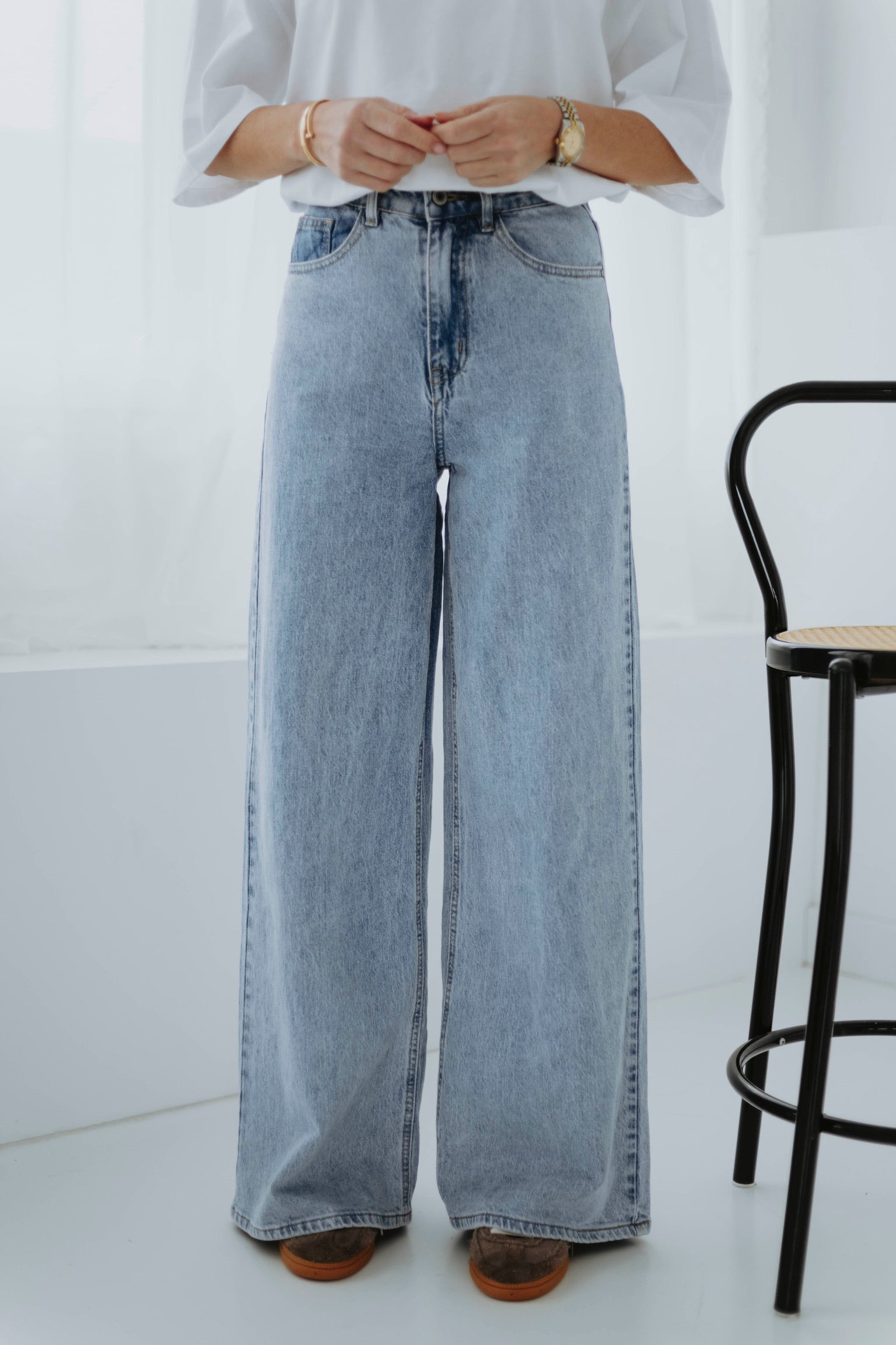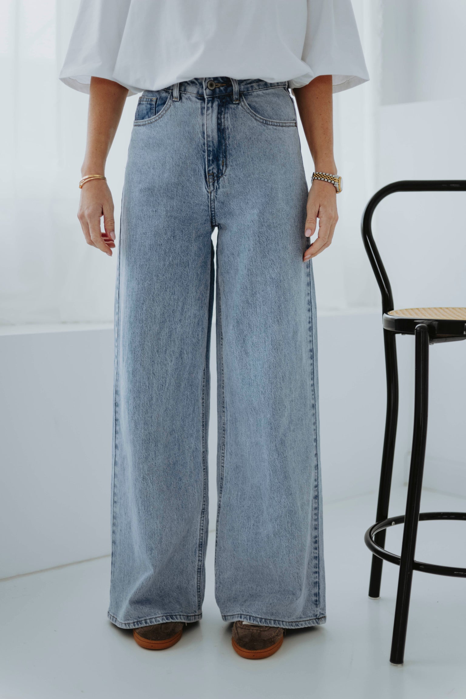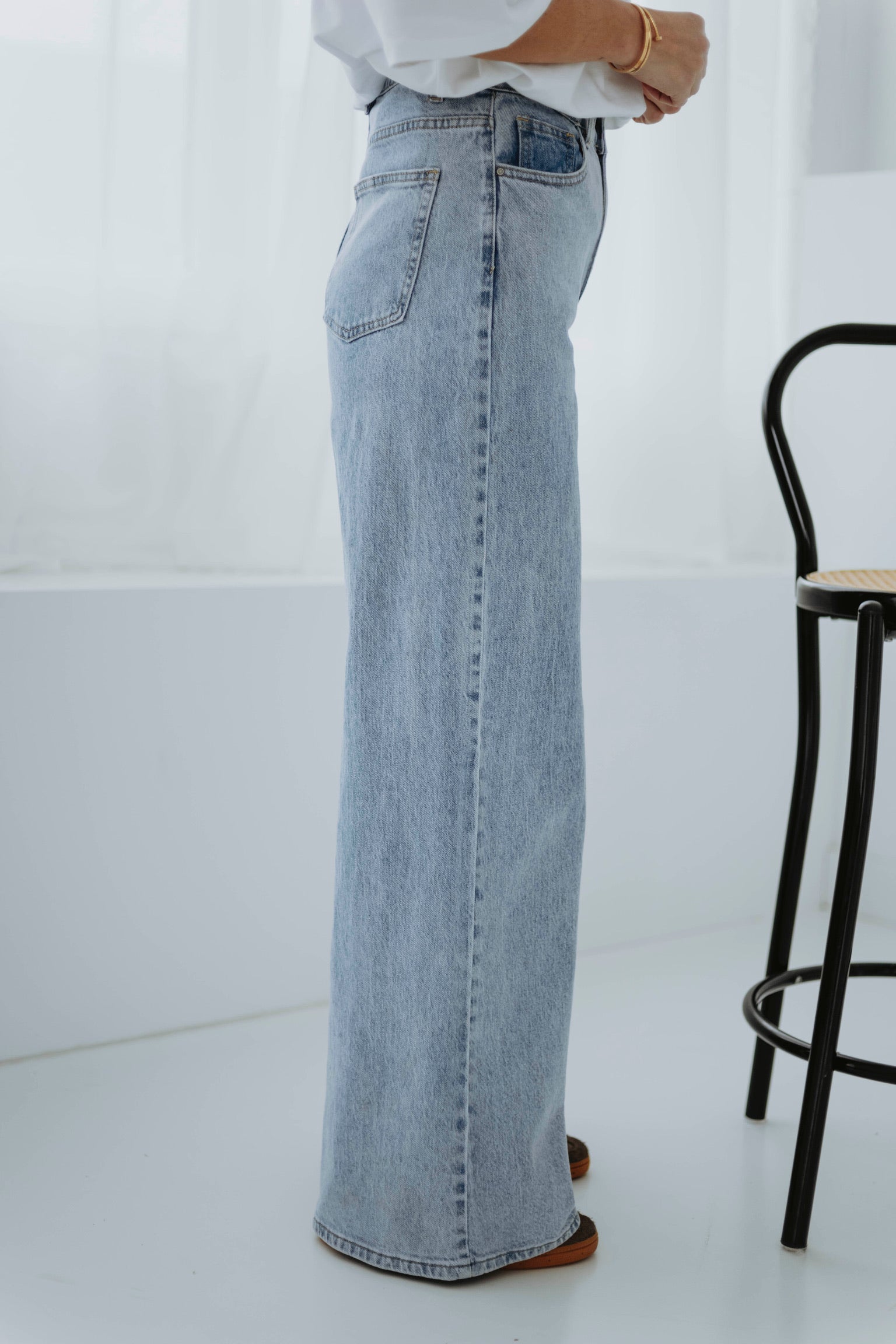 Een frisse denim essential met een relaxte pasvorm die perfect past bij het nieuwe seizoen. De lichte wassing en wijde pijpen geven je look een moderne, moeiteloze uitstraling. Ideaal om te combineren met zachte knitwear of luchtige blouses voor een echte lente vibe.