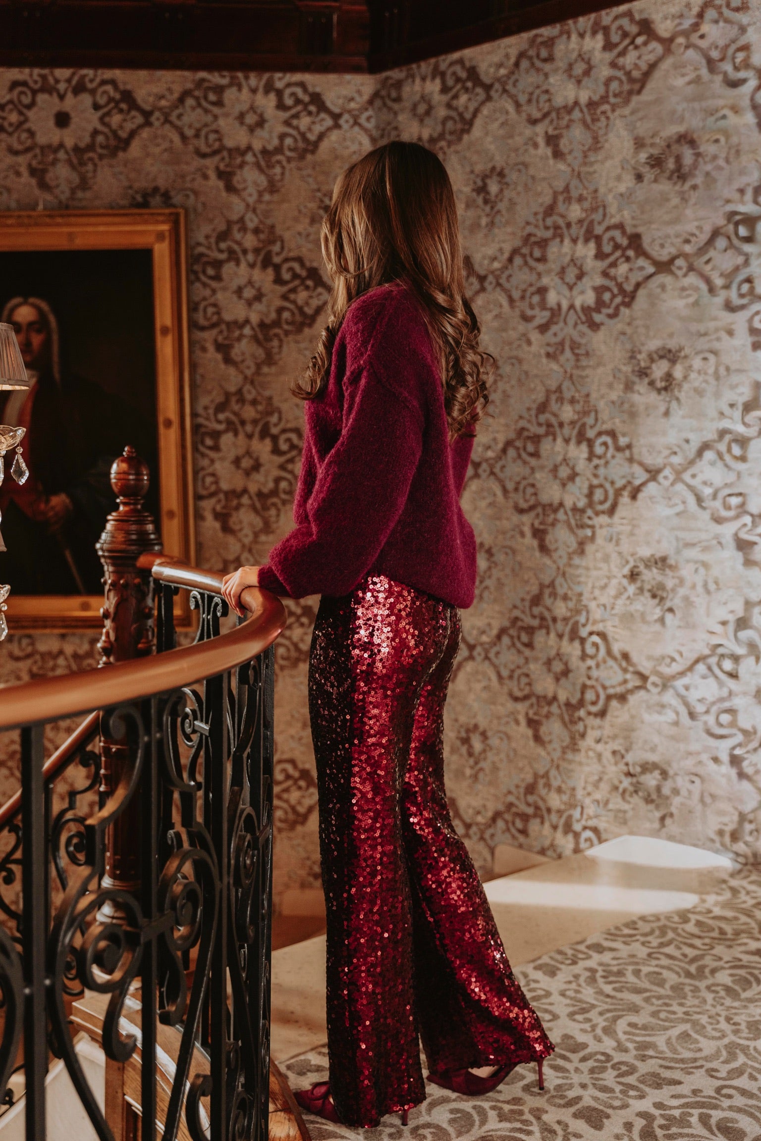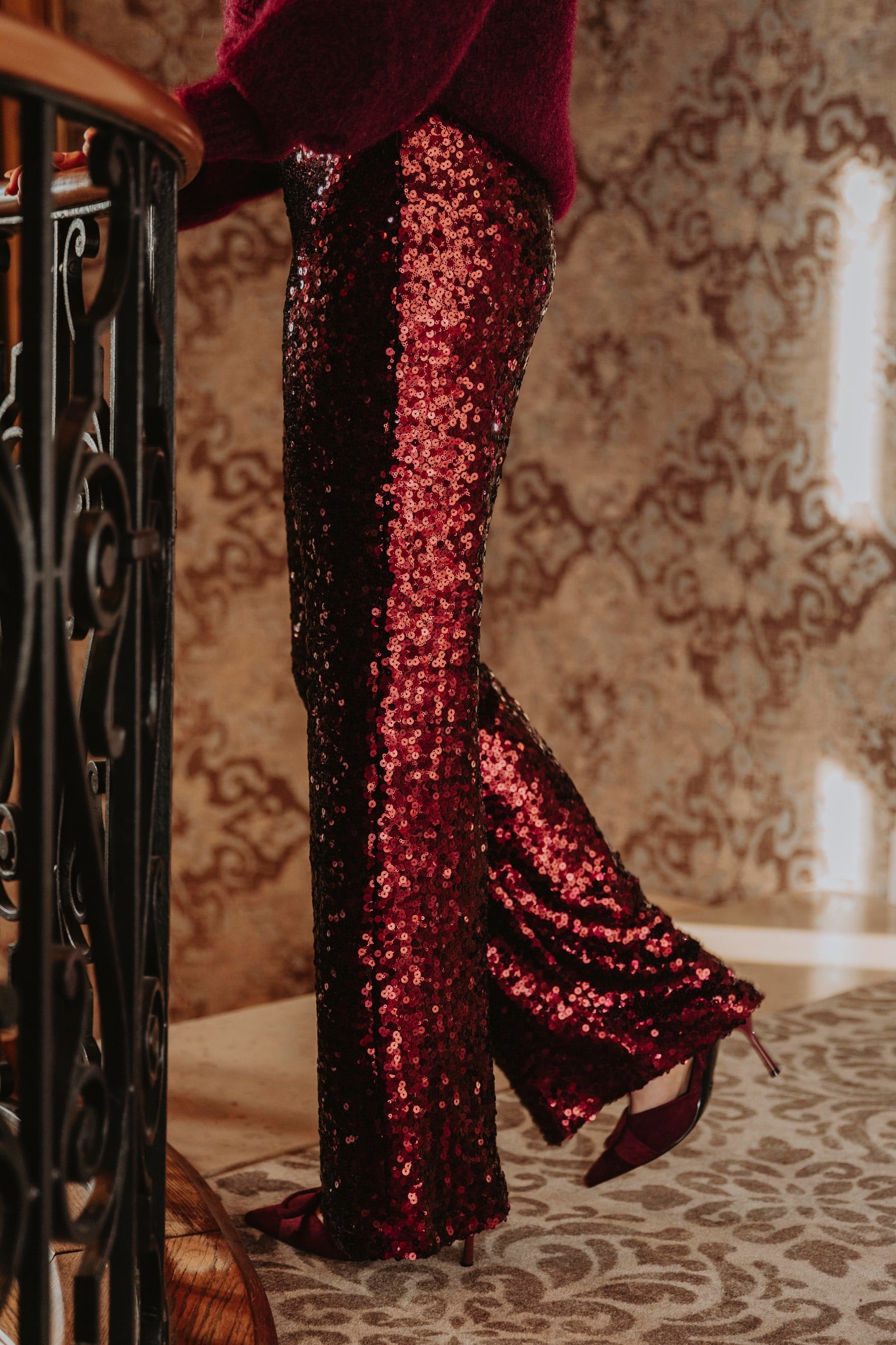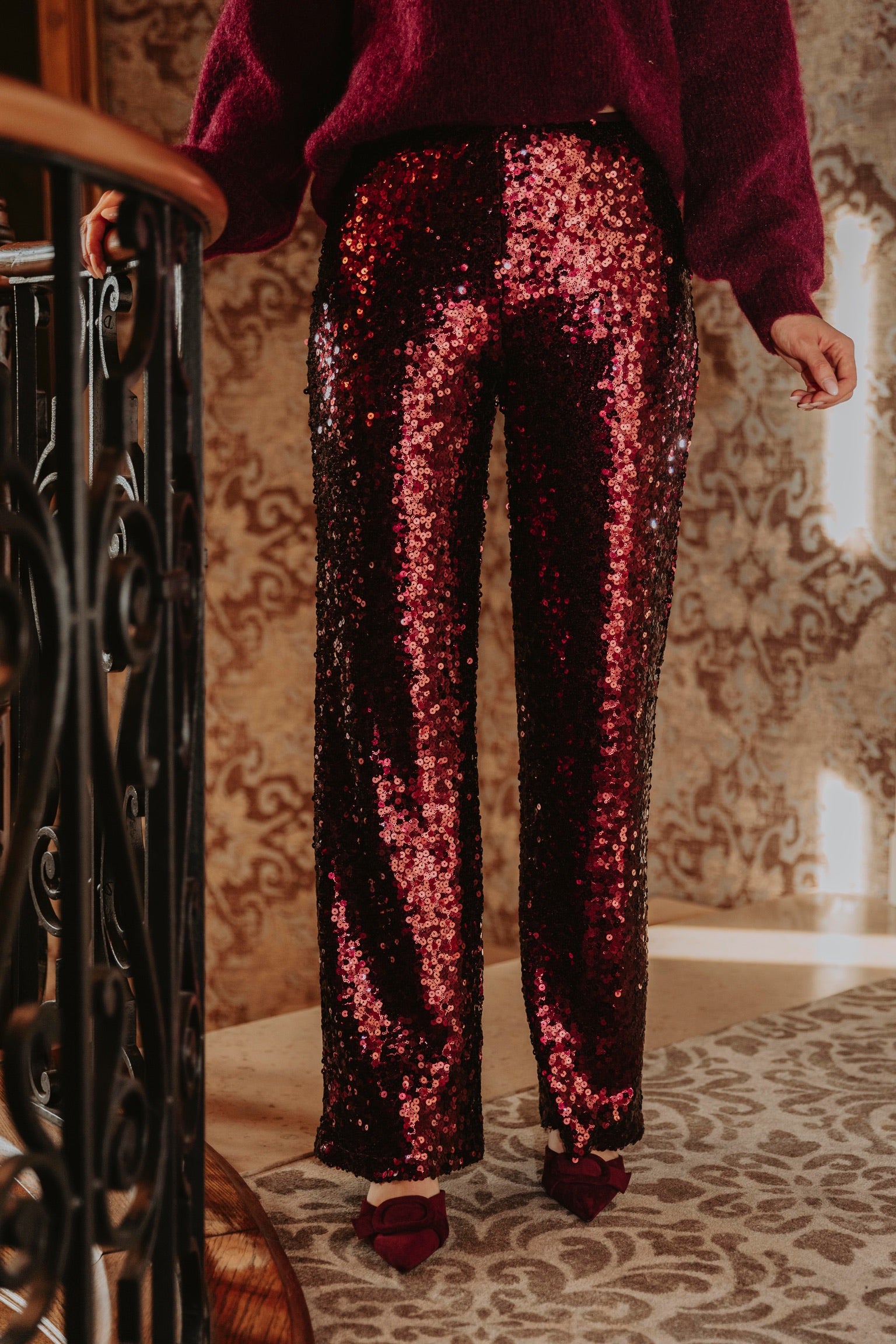 MAKE IT SPARKLE BORDEAUX SEQUIN PANTS