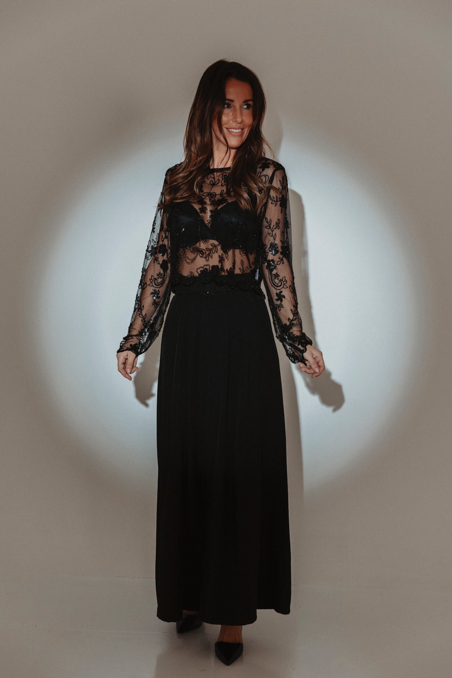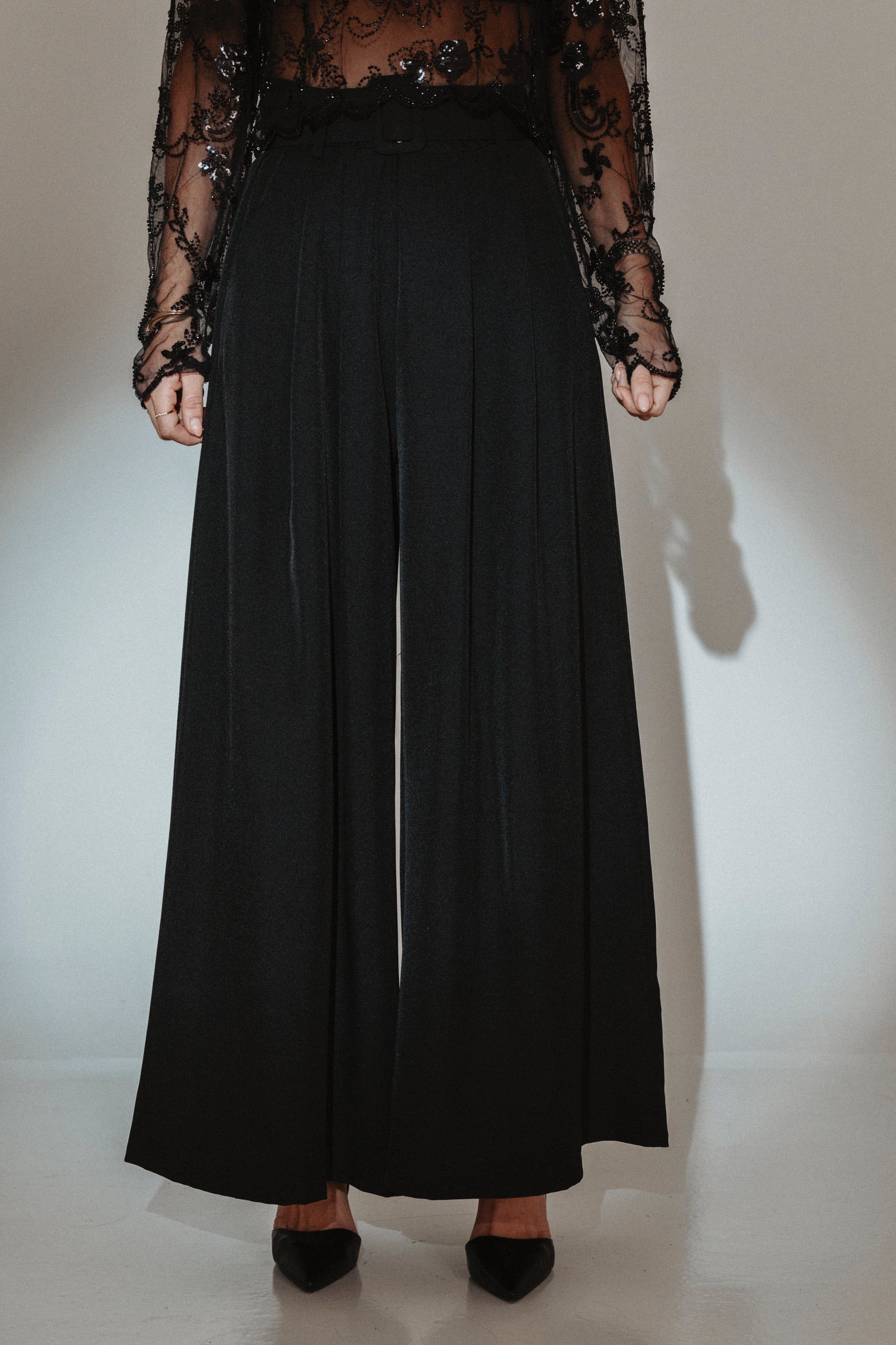 Een comfortabele, brede pasvorm in zwart die meteen een stijlvolle stadslook creëert. De tailleband voegt structuur toe en maakt ze ideaal voor laagjes en herfstige lagen met karakter.