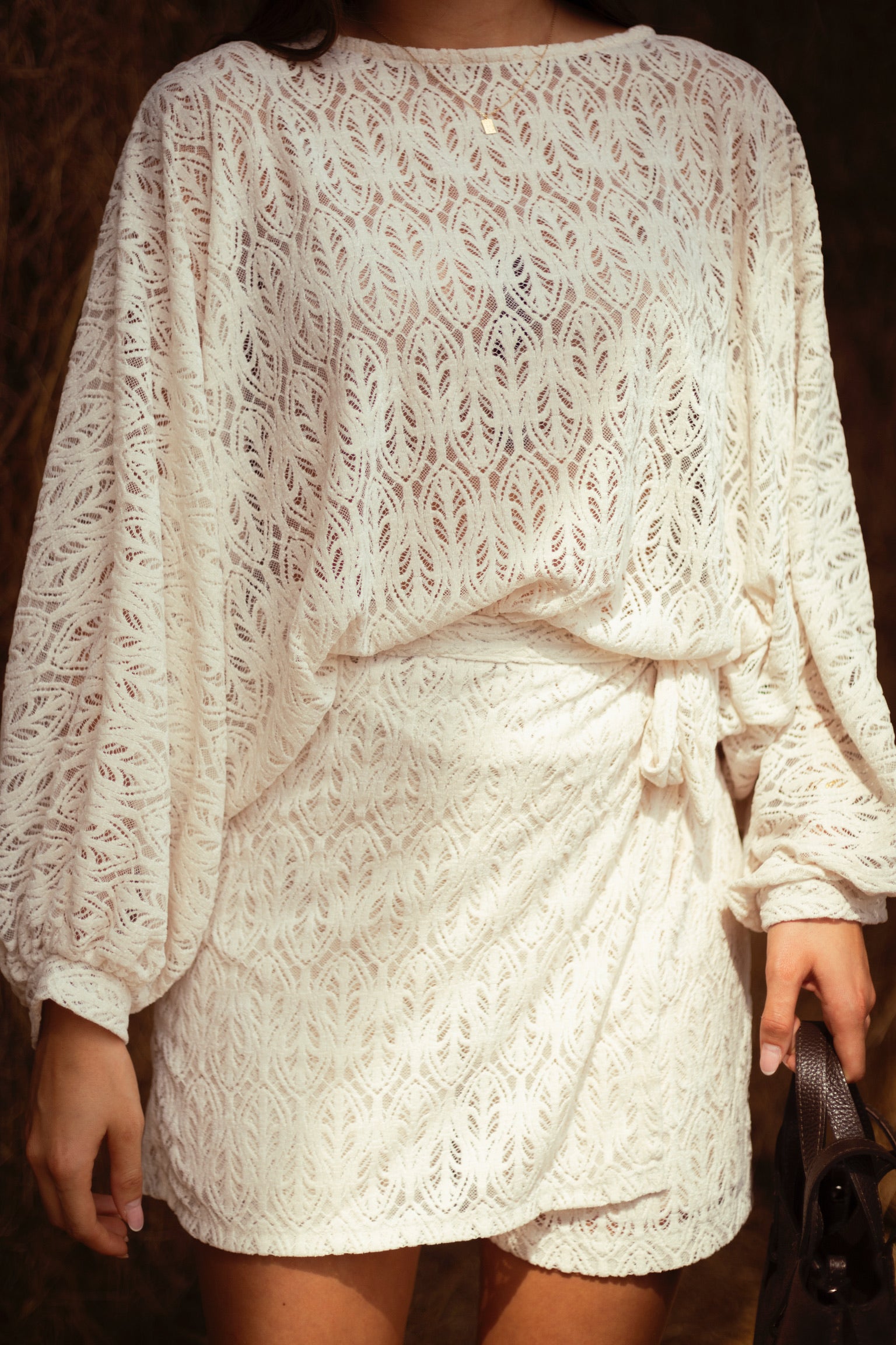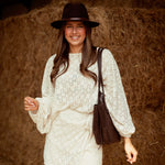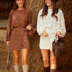 Een elegante set in zachtestof, bestaande uit een blouse en bijpassende rok die samen een geraffineerde look vormen. Licht, comfortabel en ideaal voor het tussenseizoen – stijlvol met laarsjes of een blazer voor frisse herfstdagen.