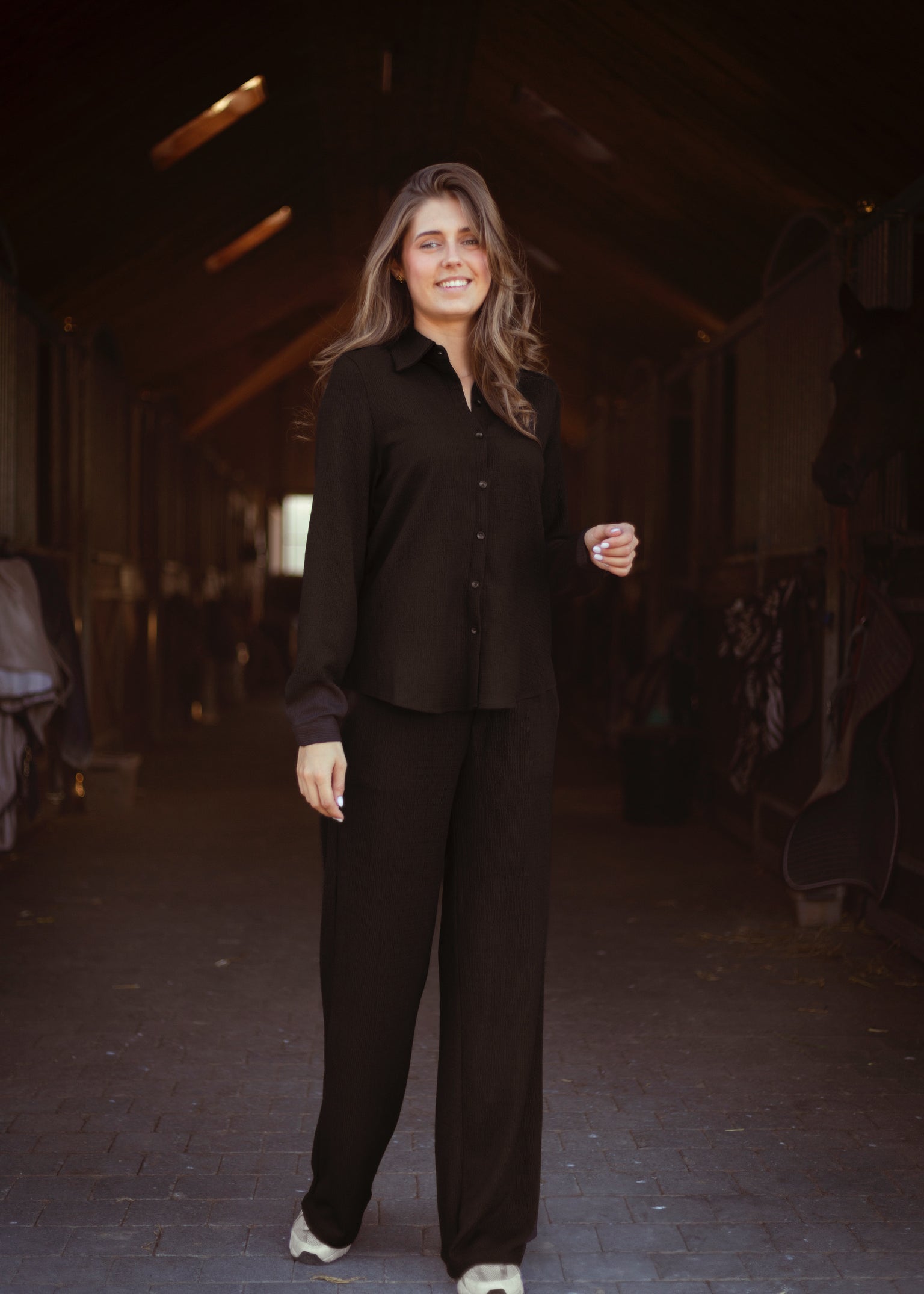 AVELINE BLACK RIBBED TWO-PIECE SET