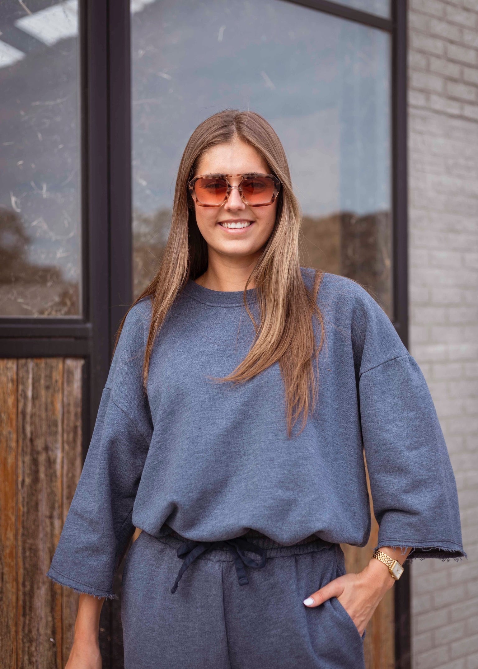 AVELINE BLUE RIBBED TWO-PIECE SET