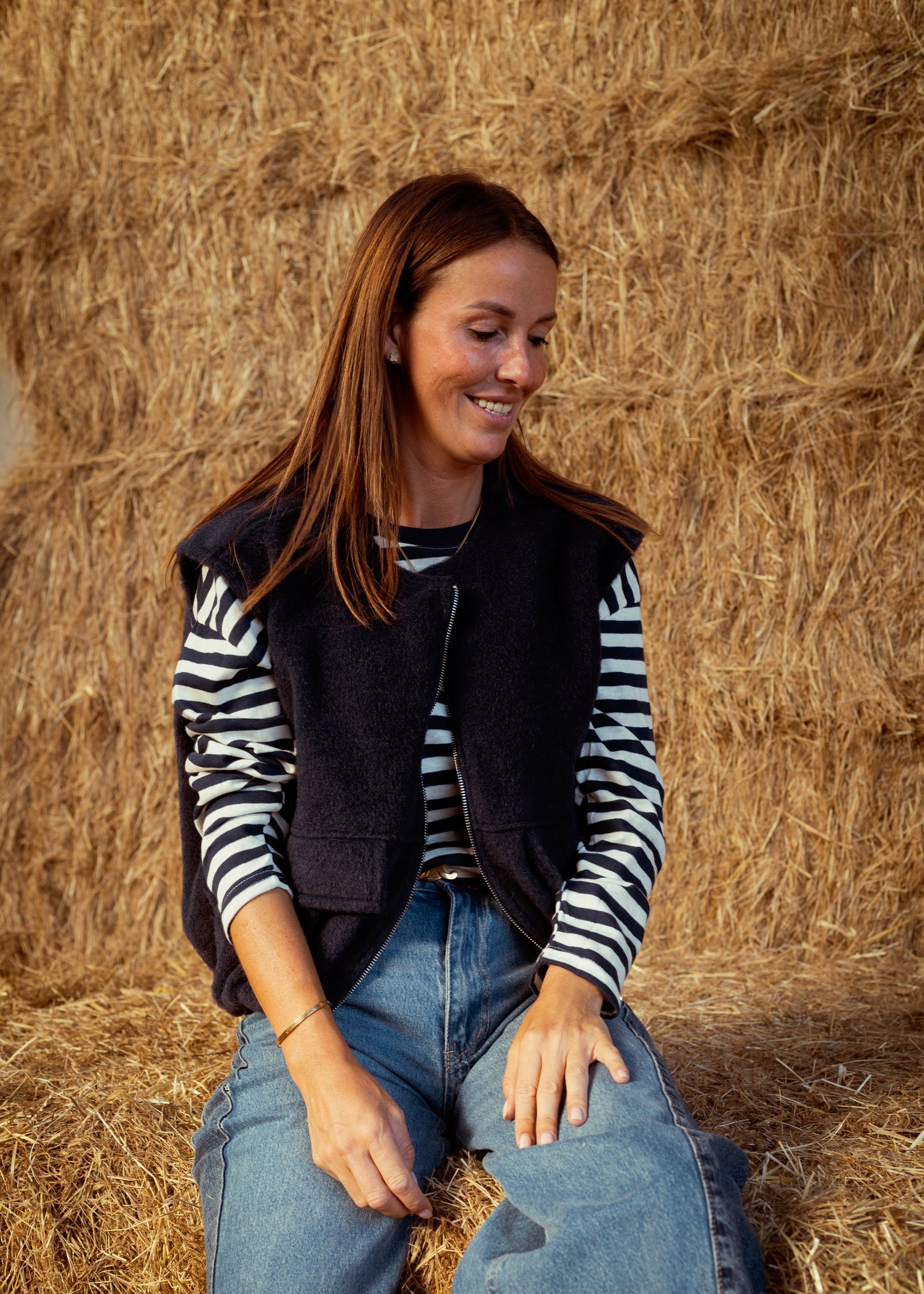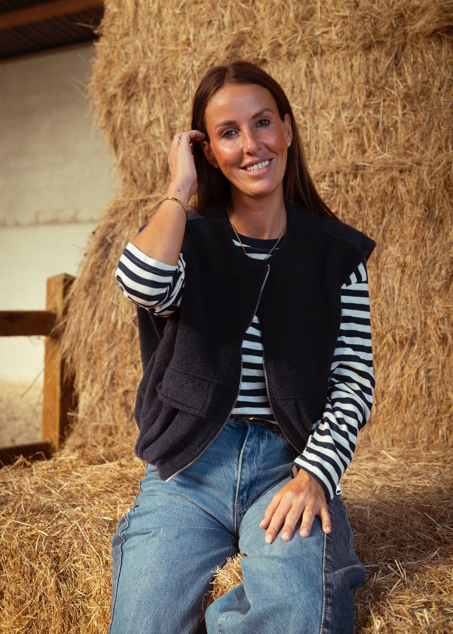 HARPER DARK BLUE SLEEVELESS ZIP JACKET