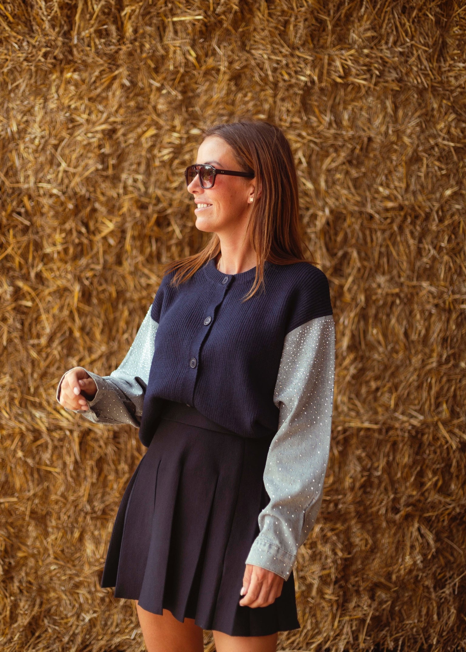 LOUELLA DARK BLUE DIAMOND SLEEVES CARDIGAN