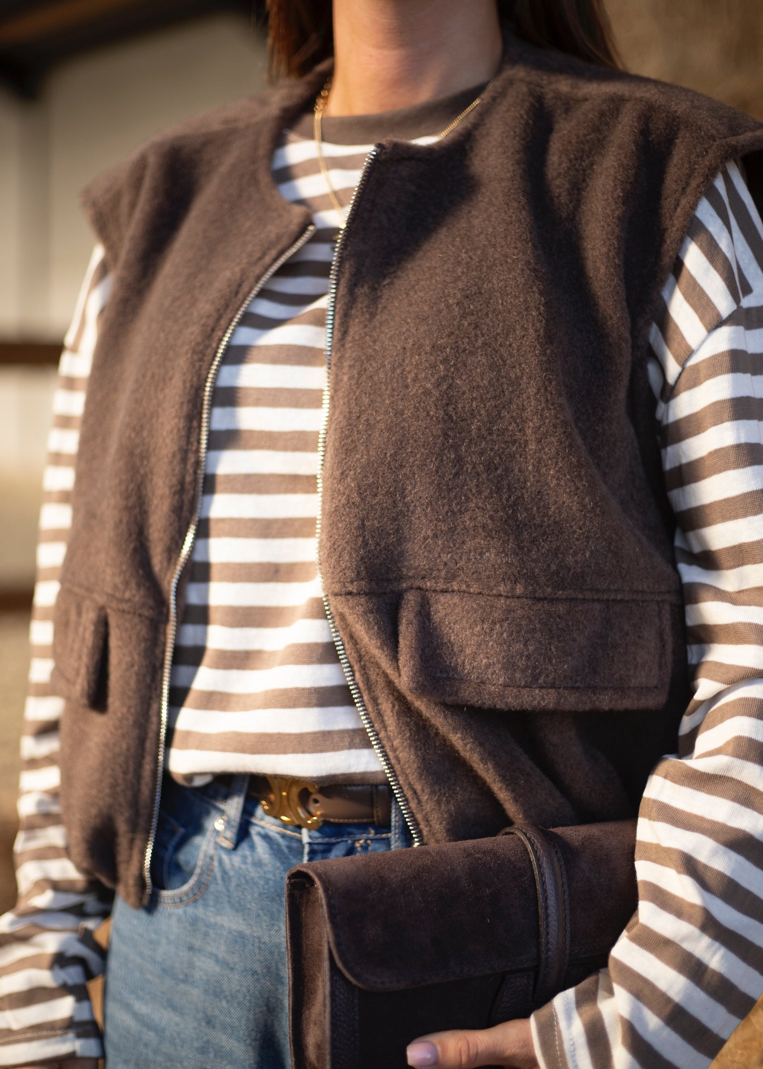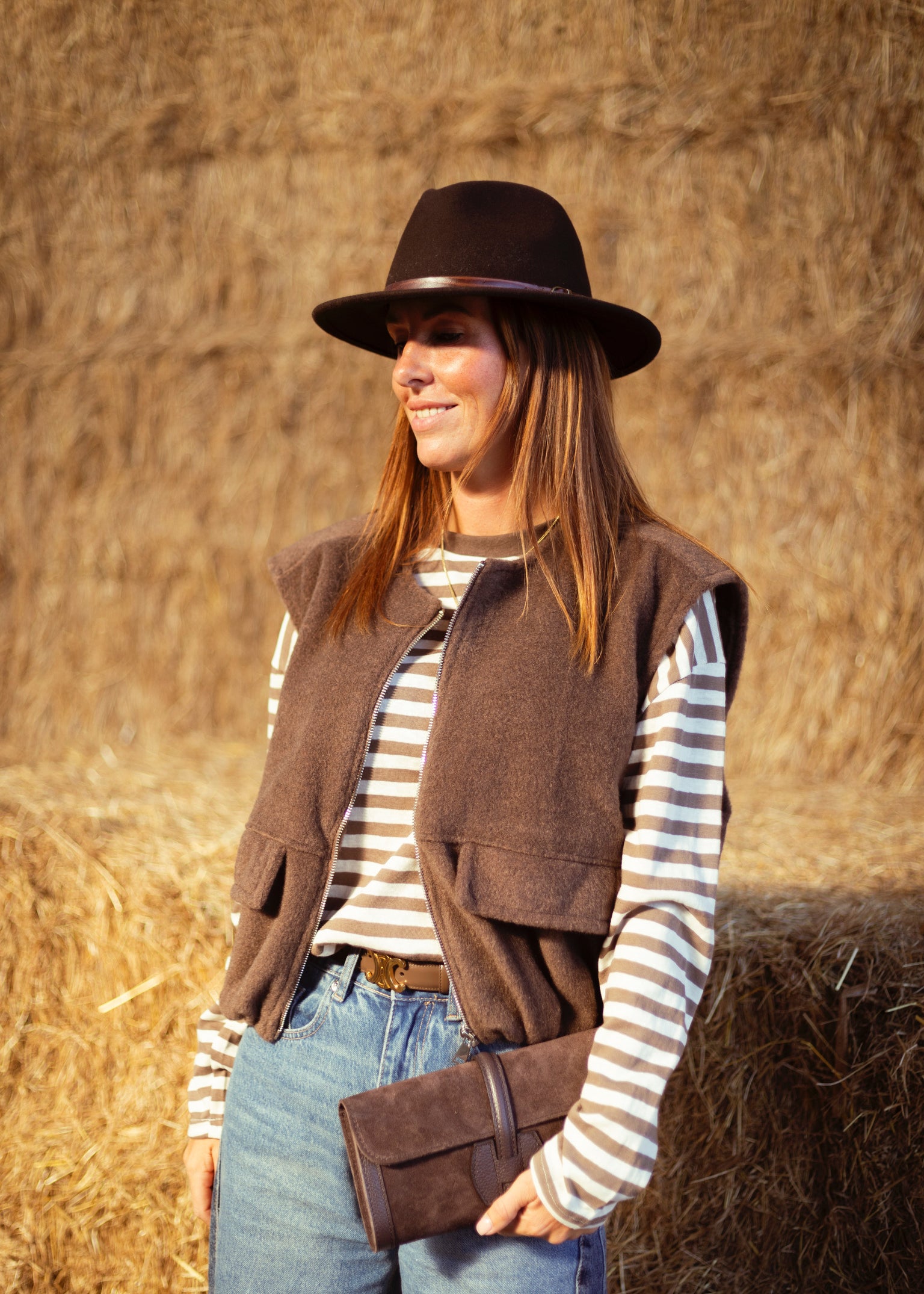 RAVENNA BROWN SLEEVELESS CARDIGAN