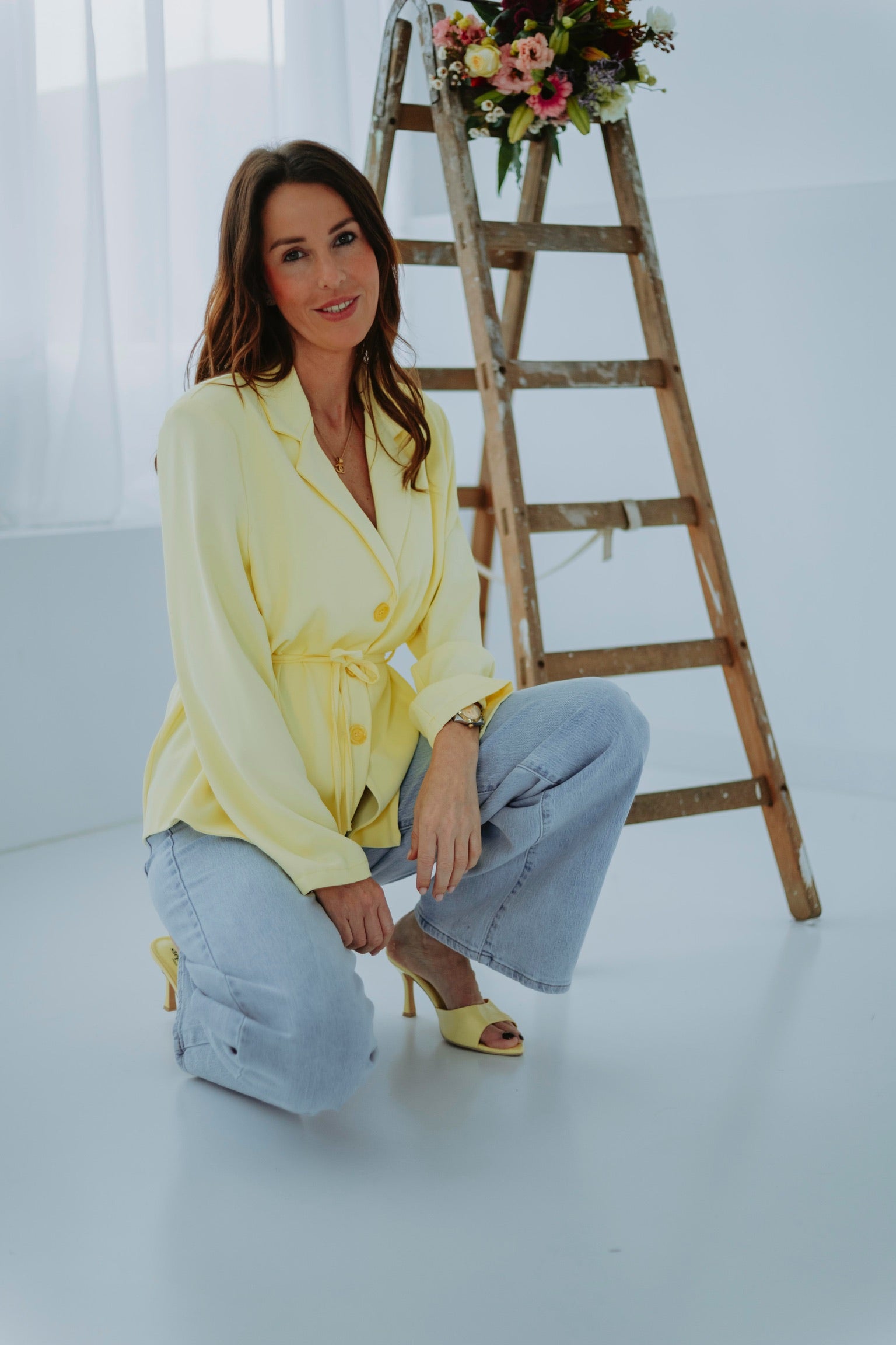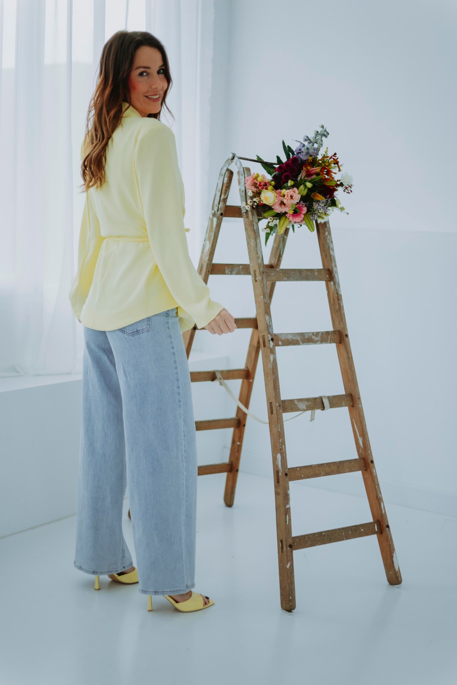 De frisse, vrolijke kleur geeft direct een lentegevoel aan je outfit. Het speelse lintje om te knopen voegt een charmant detail toe en accentueert het silhouet op een subtiele manier. Verkrijgbaar in verschillende kleuren, ideaal om af te wisselen en te combineren.