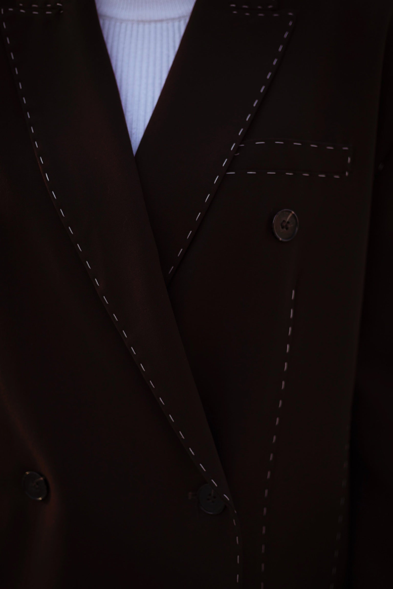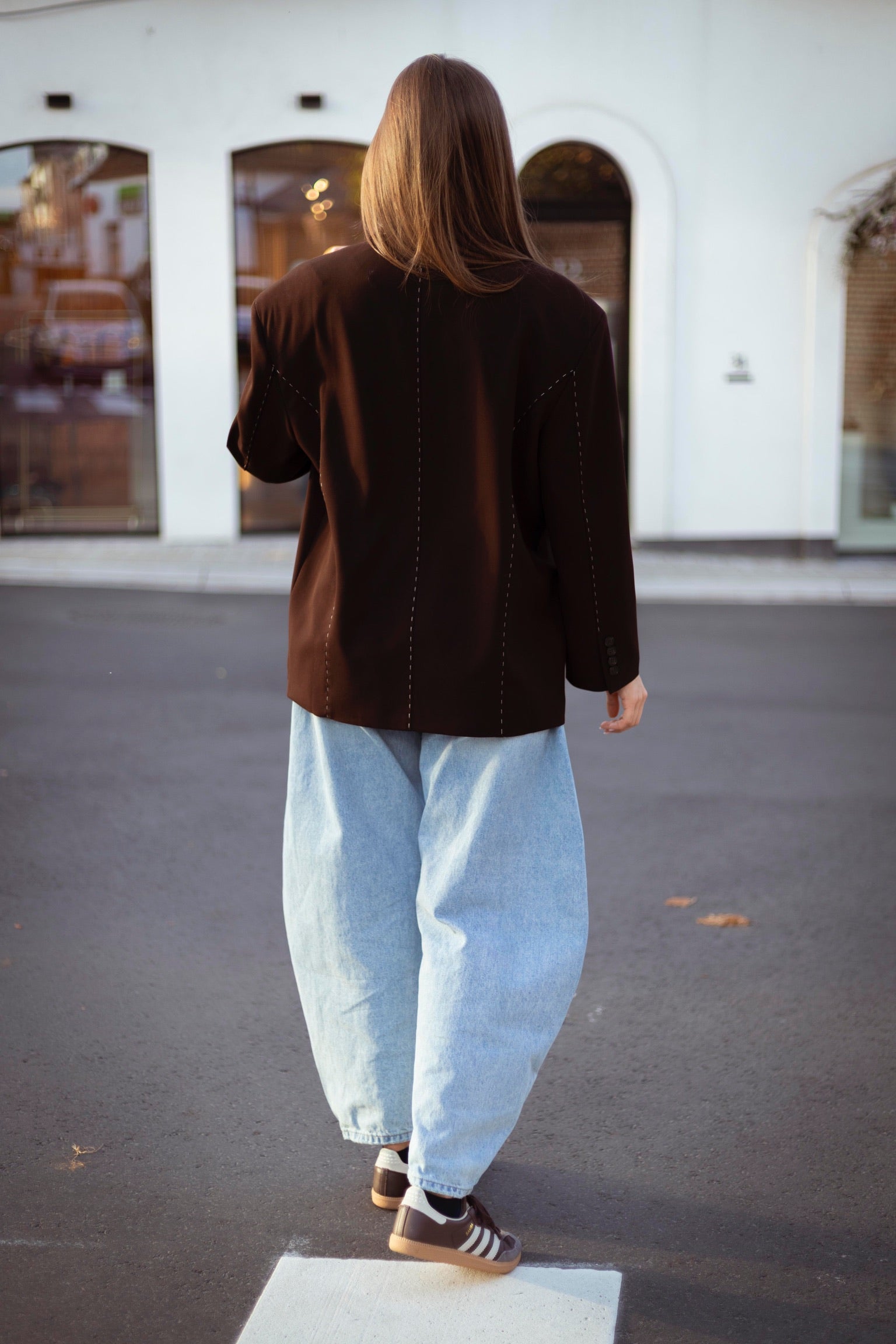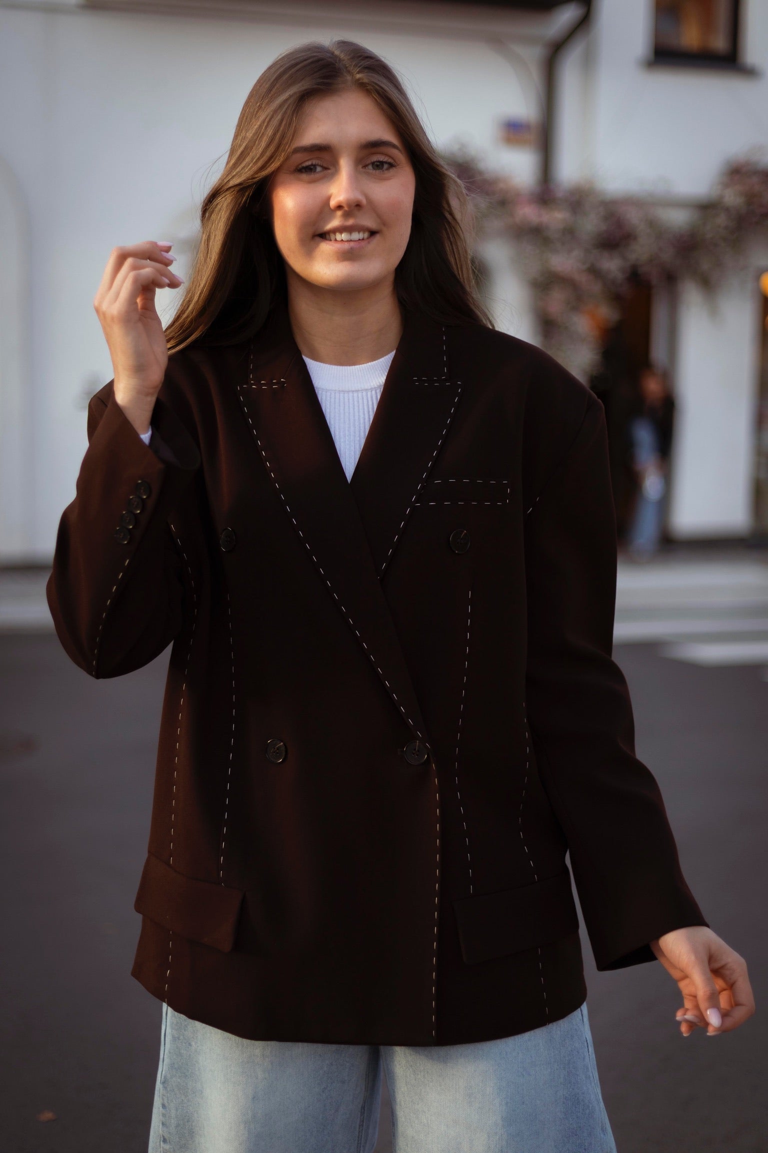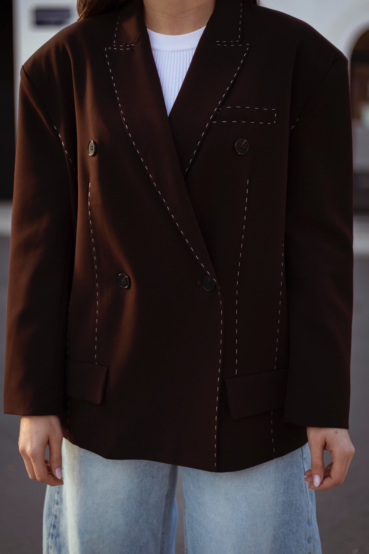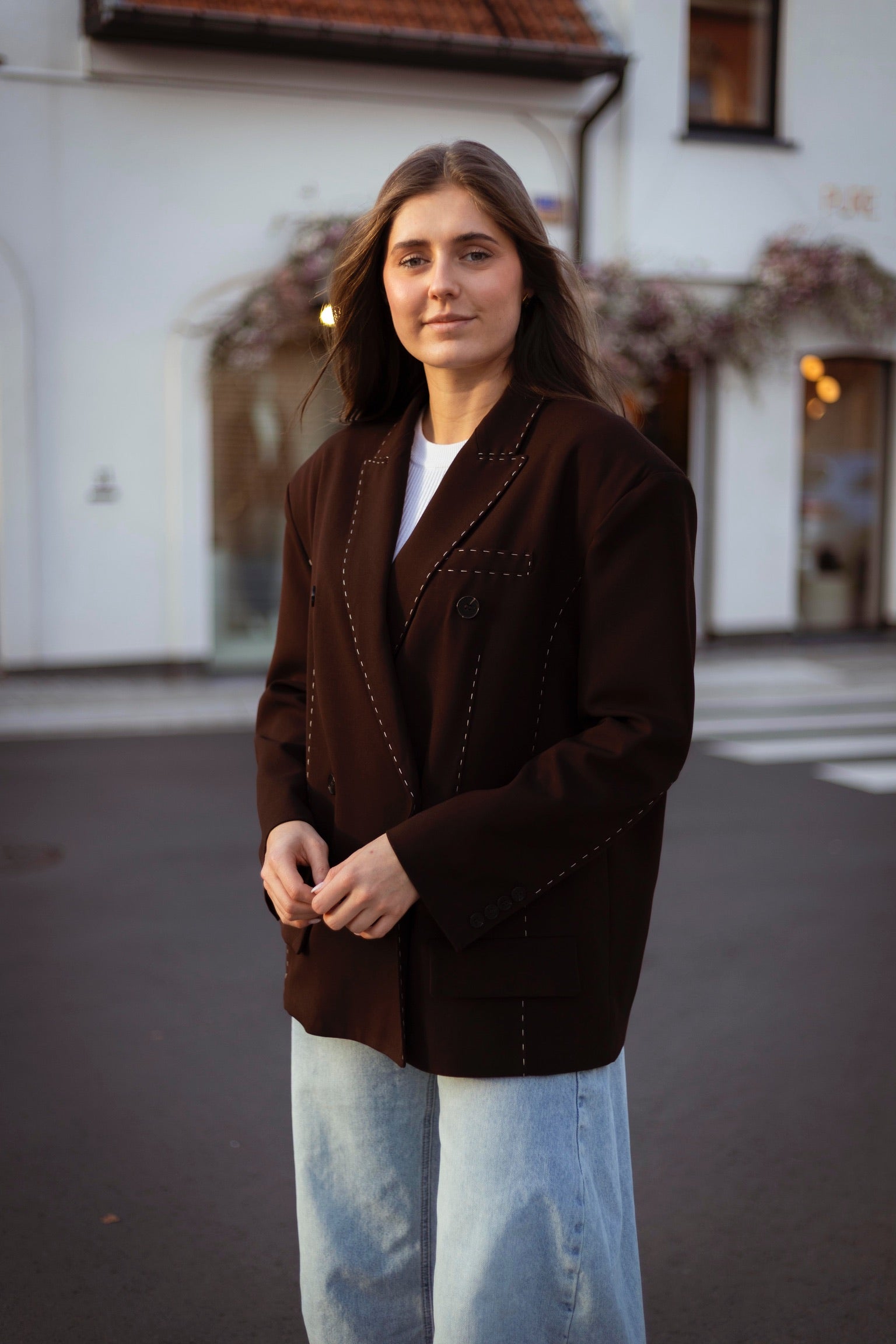 ROXIE BROWN CONTRAST STITCH BLAZER