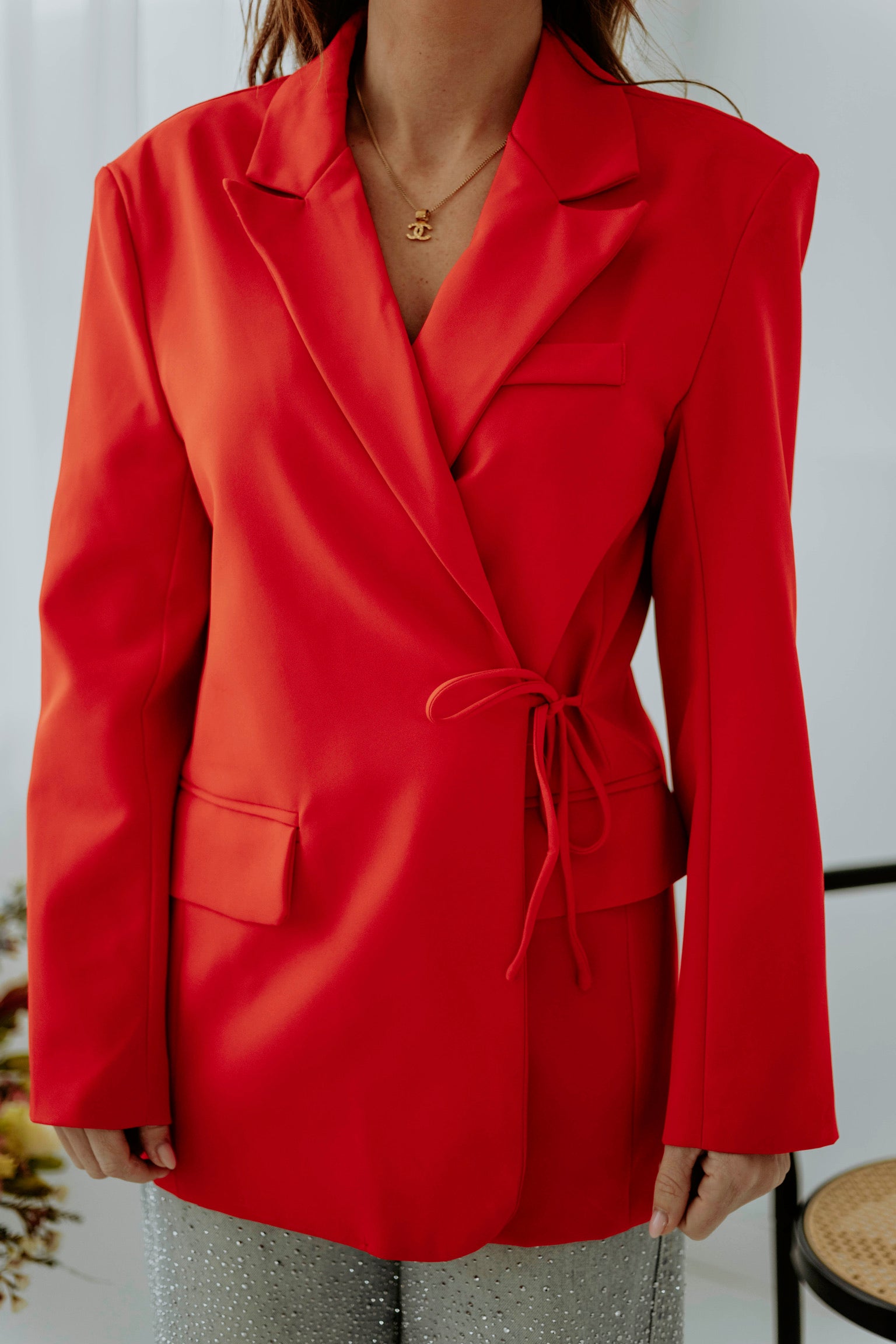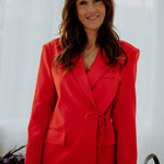 PRE-ORDER SHARON RED WRAP BLAZER – Boetiek Pure Sense