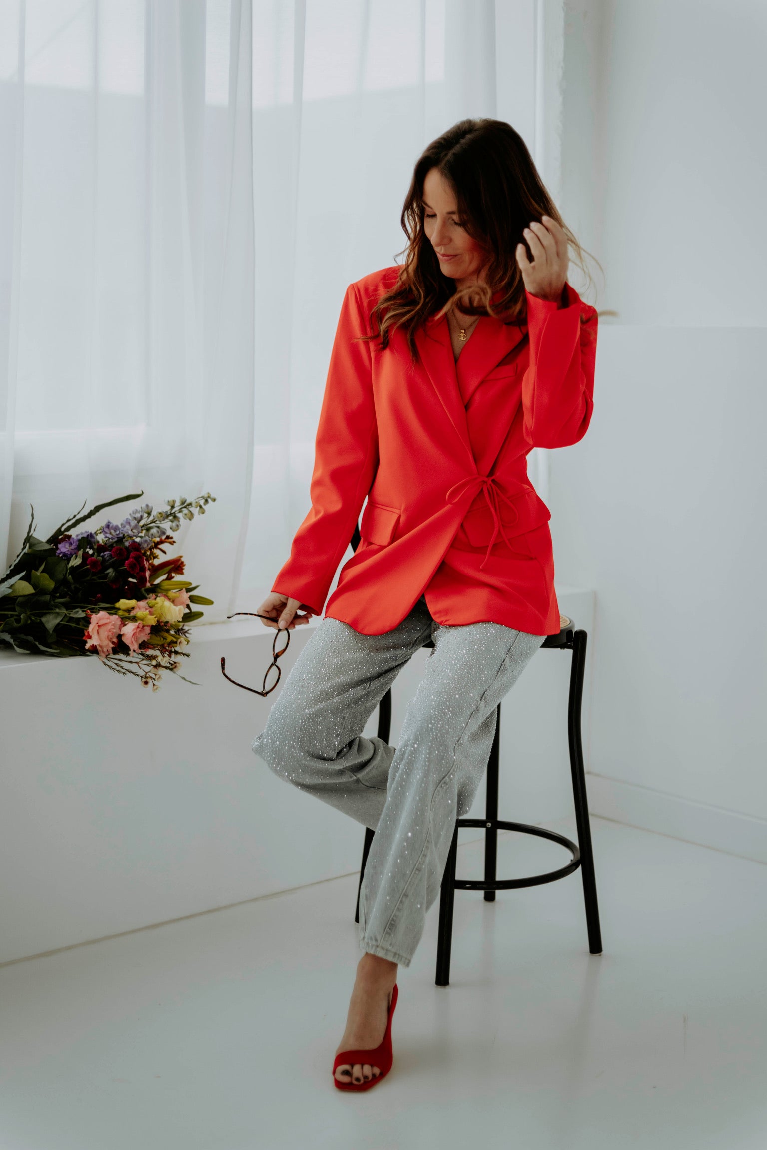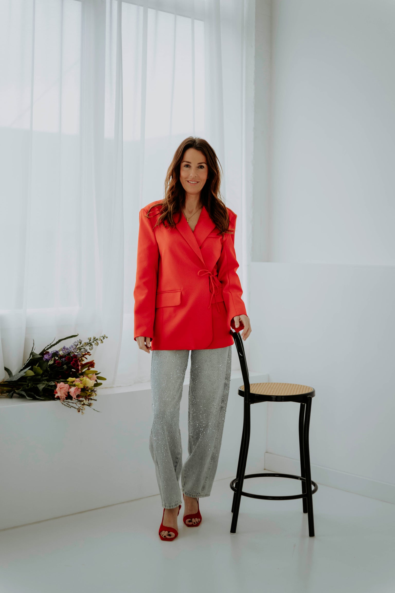 Een echte blikvanger die lef en elegantie samenbrengt. De speelse wikkelvorm en intense rode tint geven je look energie en karakter. Perfect voor het voorjaar wanneer je outfit mag spreken.