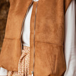 VIVIAN CAMEL SUEDE SLEEVELESS JACKET
