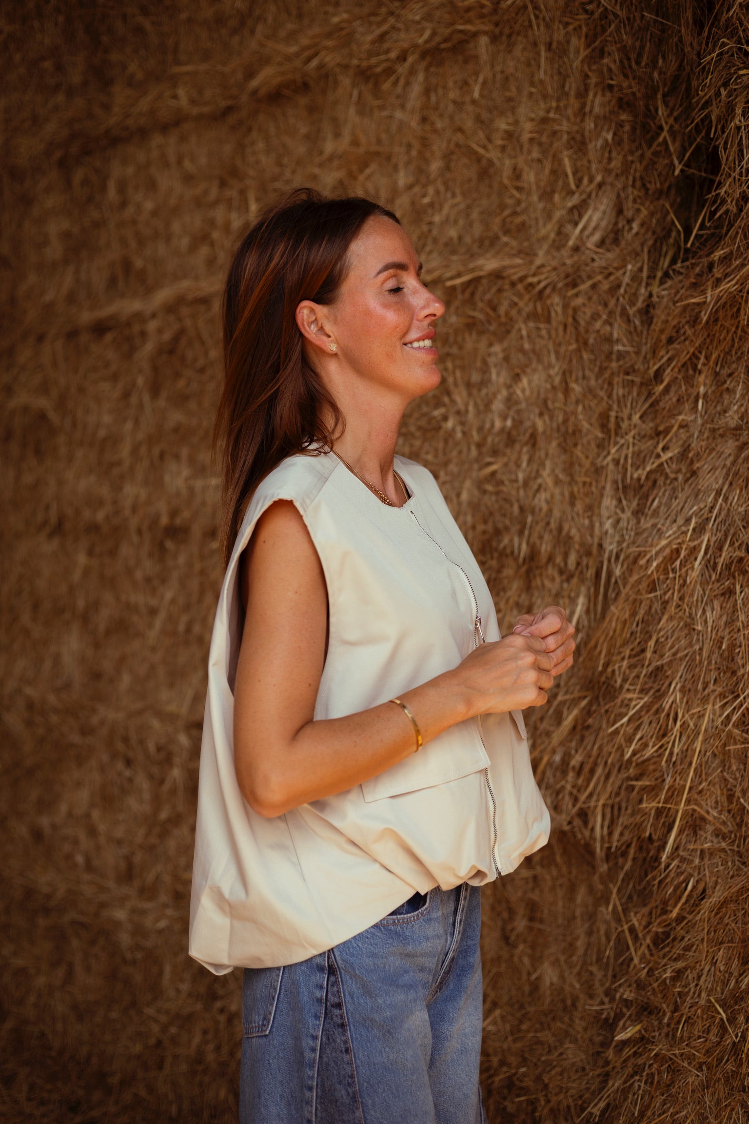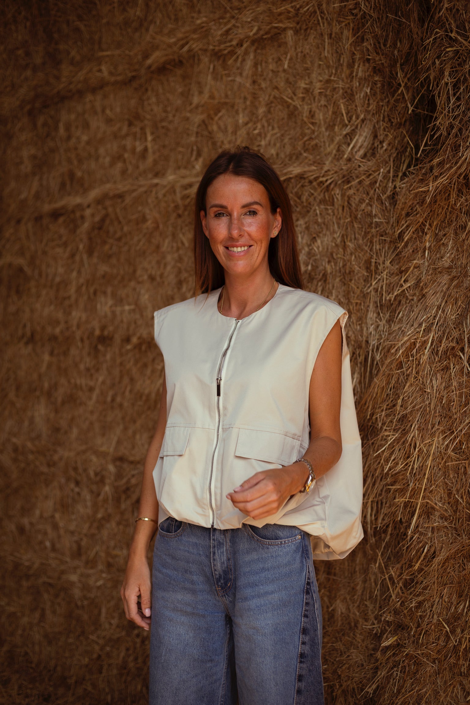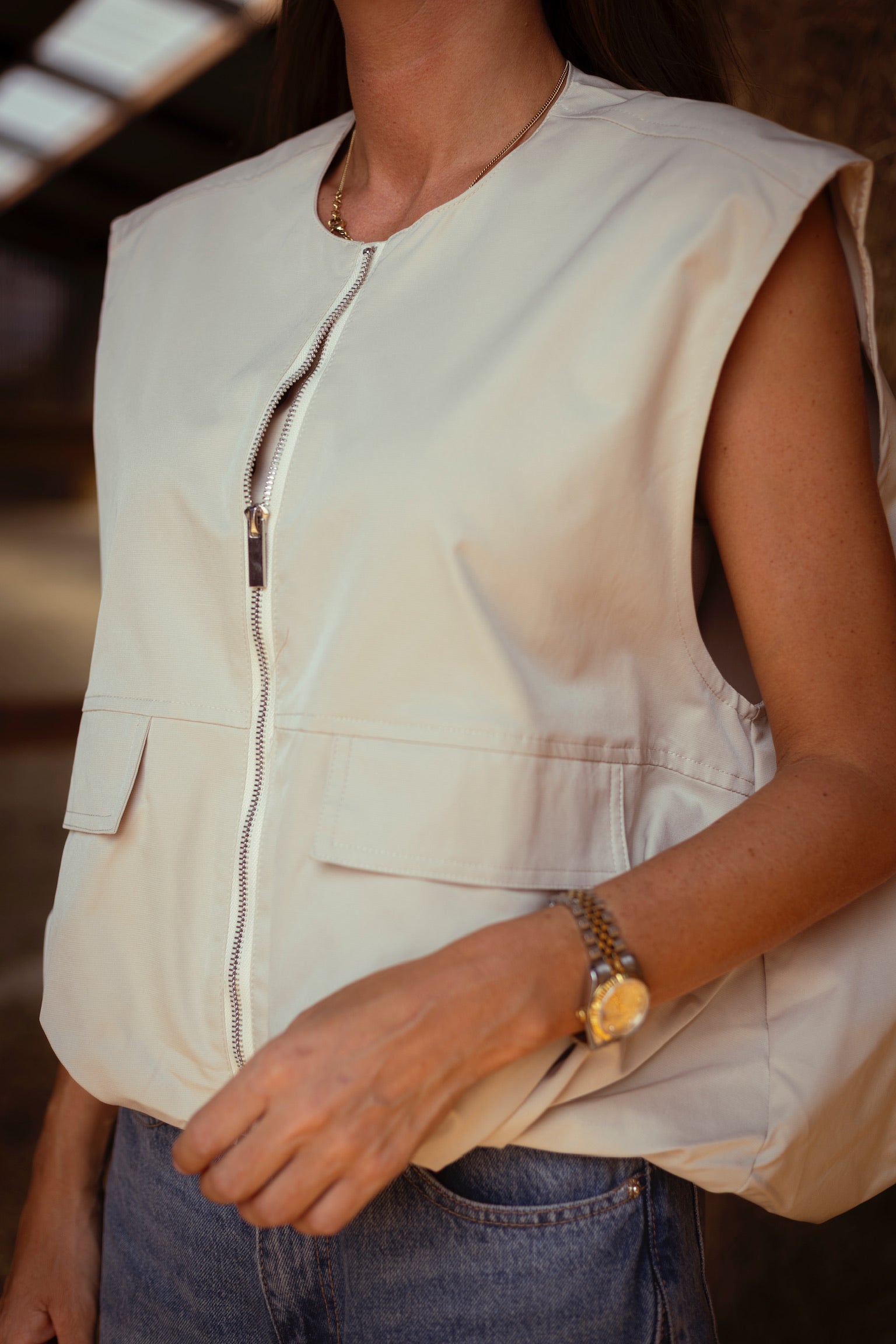 WILLOW BEIGE SLEEVELESS JACKET – Boetiek Pure Sense
