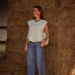 Een losvallend, mouwloos jasje met een nonchalante snit dat je makkelijk over een trui, blouse of t-shirt draagt. De baggy fit geeft je look een relaxte, stoere touch. Ideaal voor de start van het herfstseizoen.