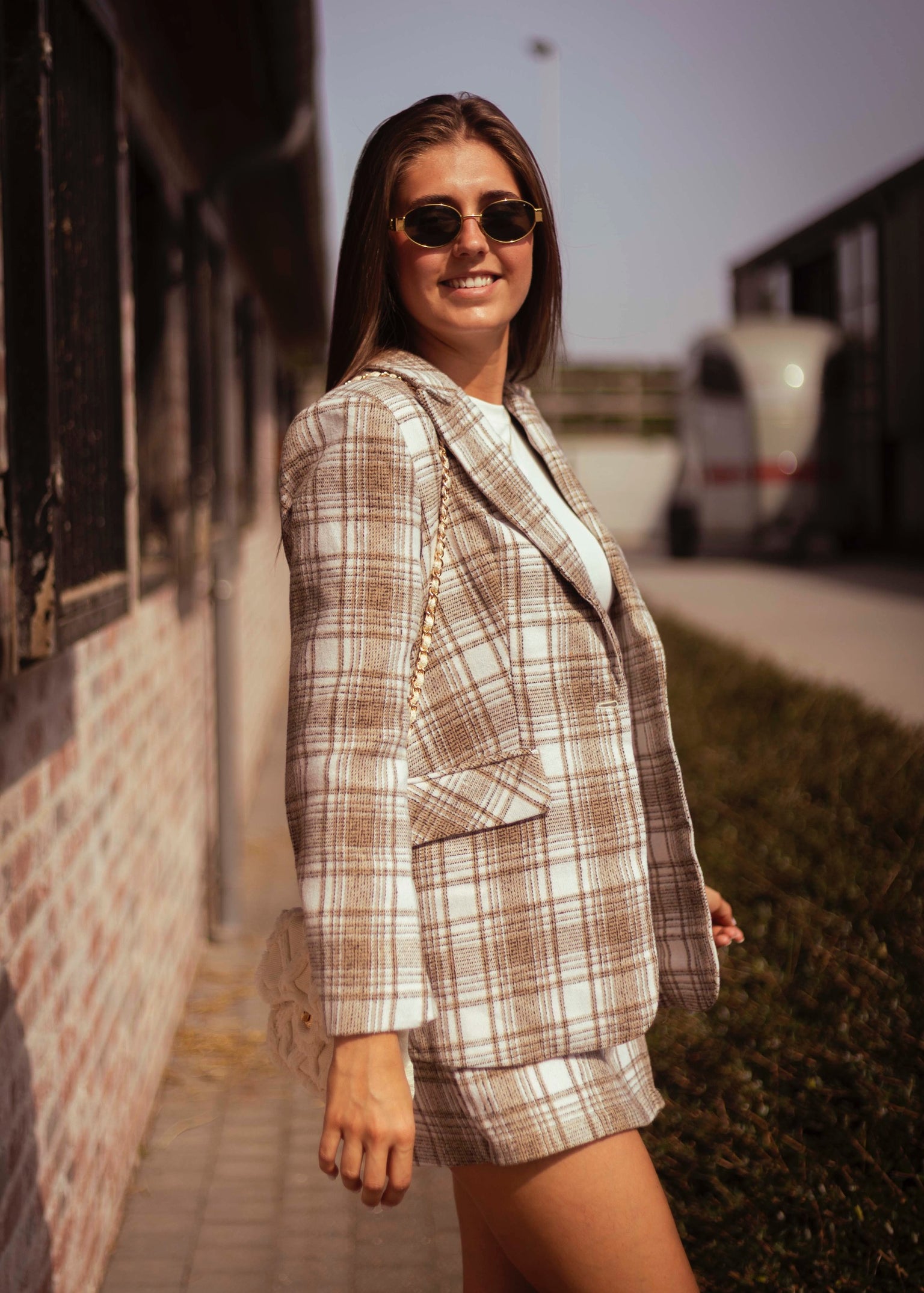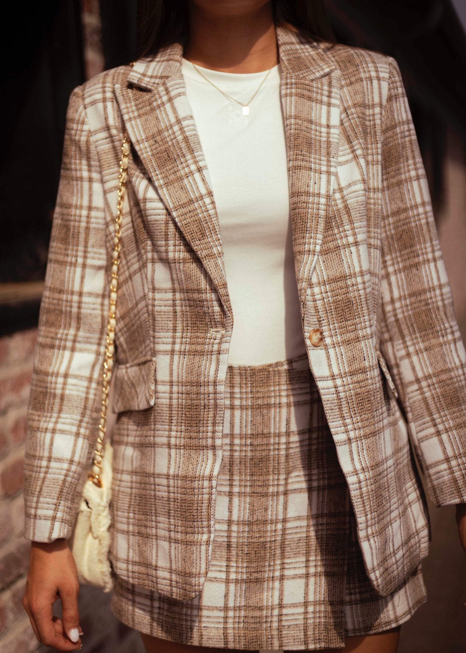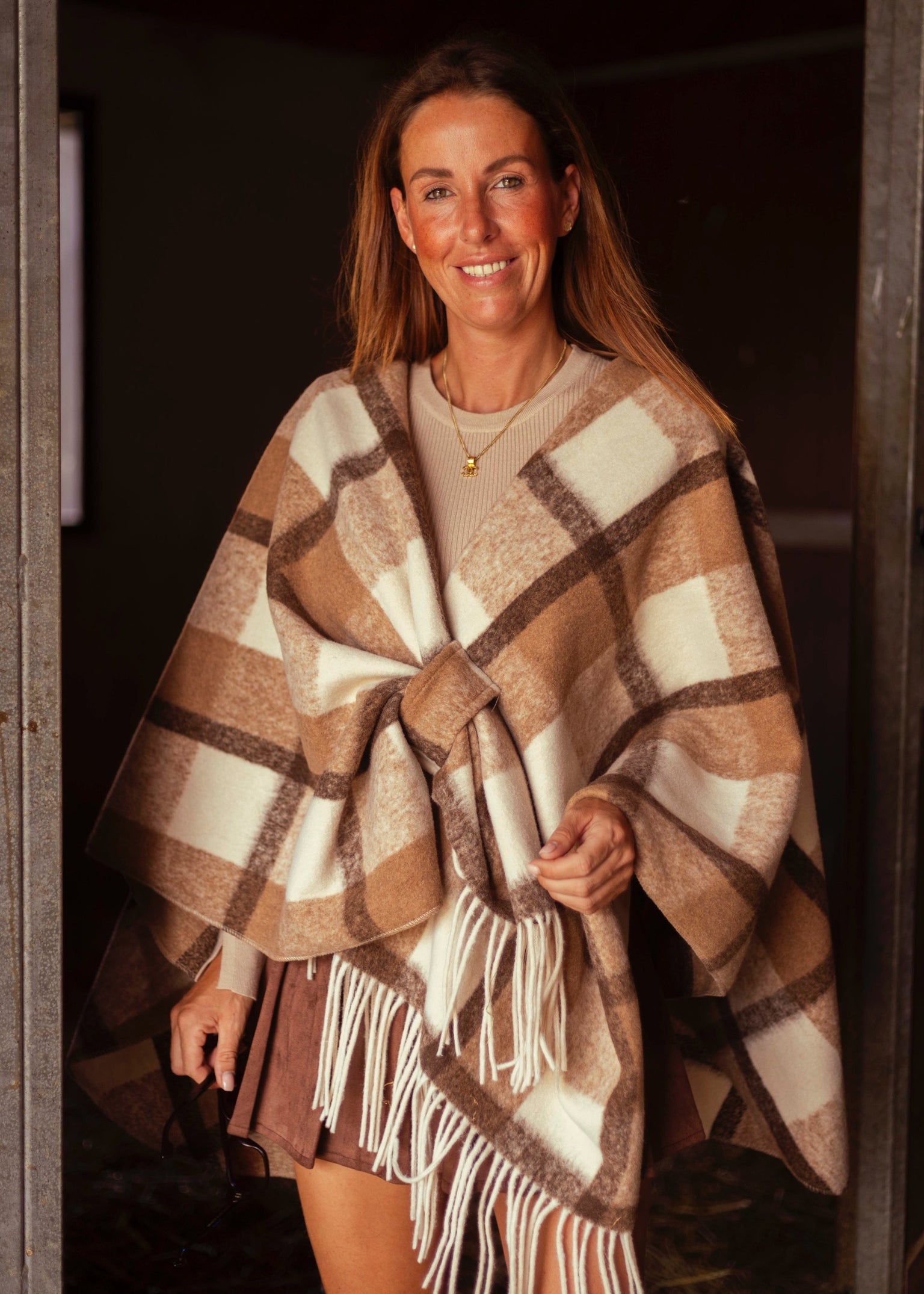 DOLLYROSE BEIGE CHECKERED PONCHO
