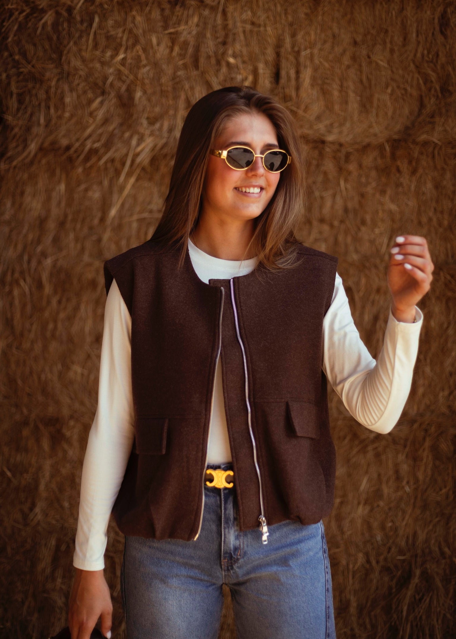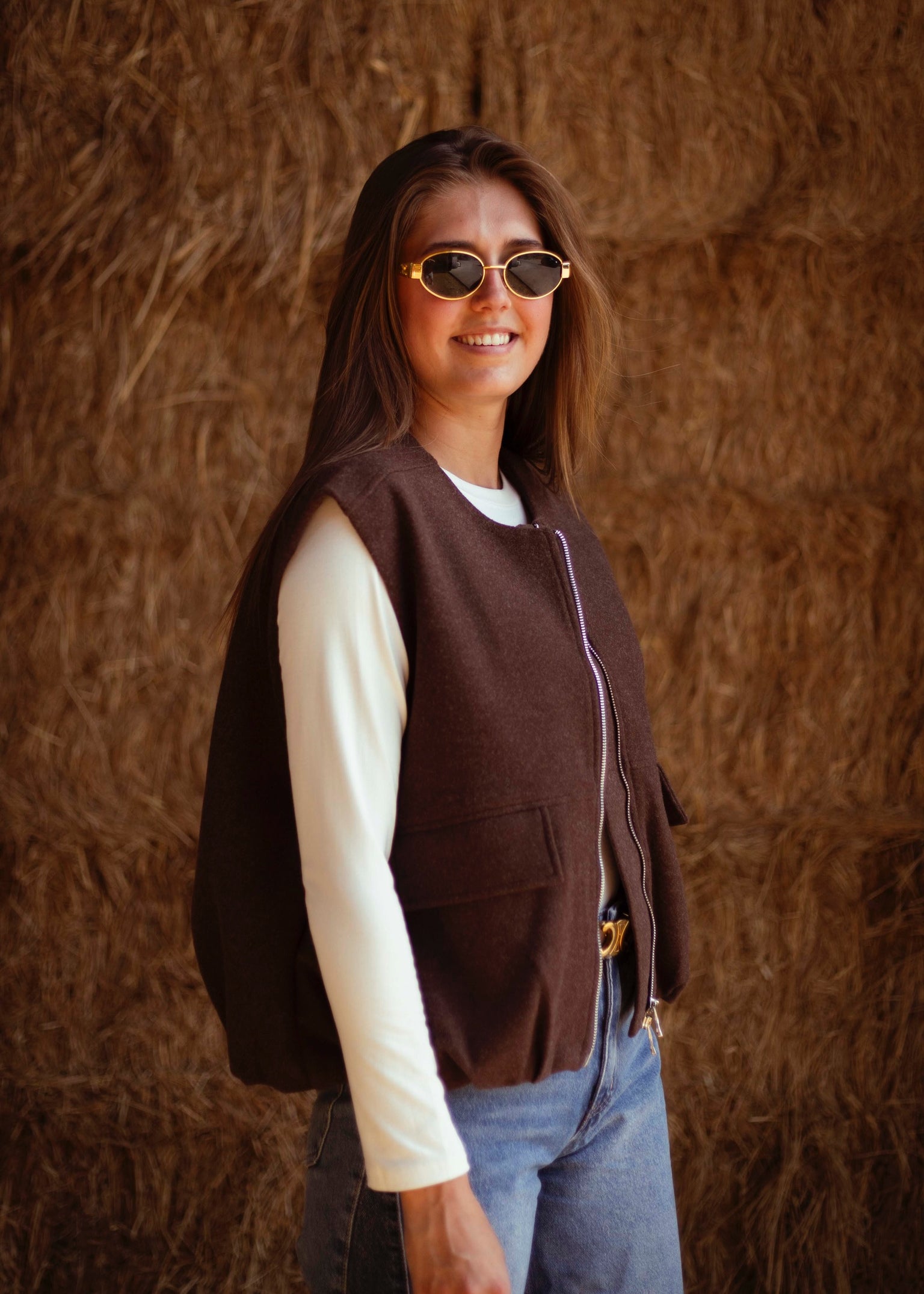 ZIVA BEIGE LEOPARD SLEEVELESS JACKET