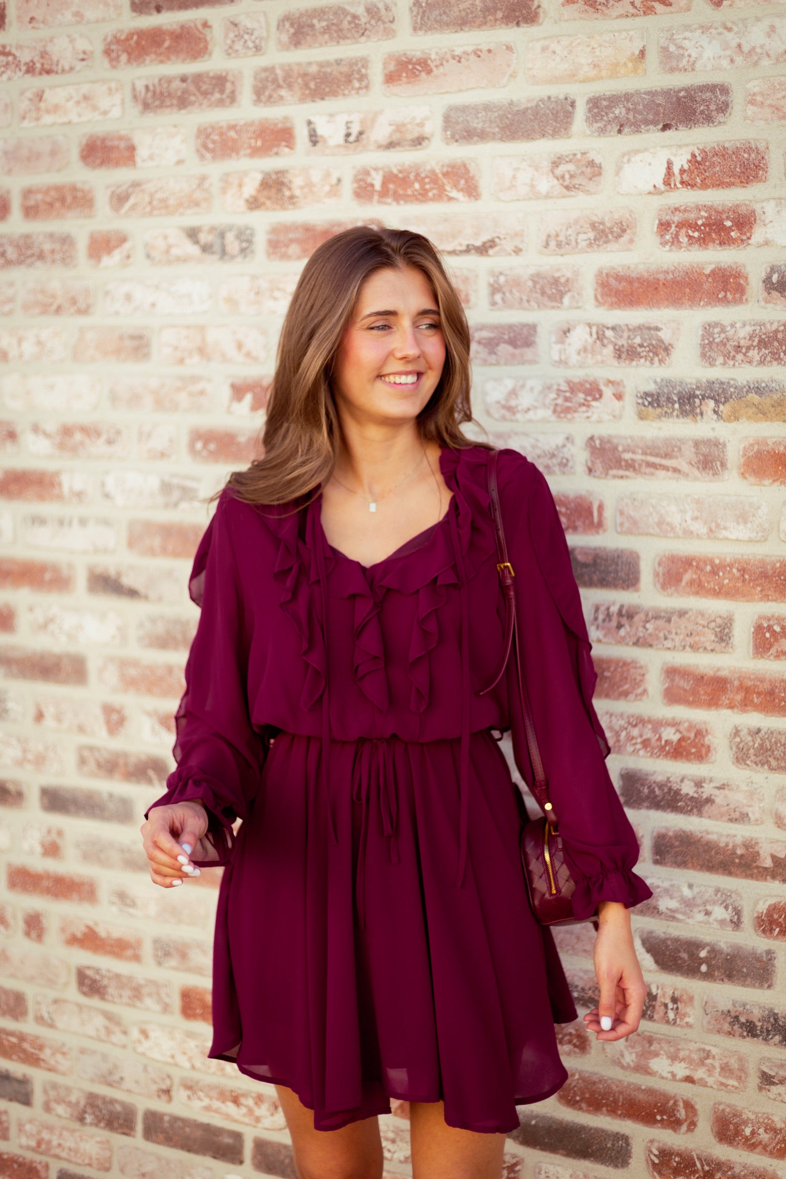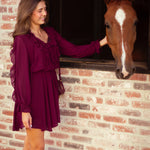 IVY BURGUNDY RUFFLE DRESS