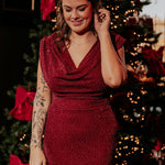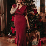 LUMINATE BORDEAUX RHINESTONE DRESS