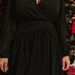 Een zwierig jurkje dat bij elke draai schittert dankzij subtiele steentjes die het licht vangen. Het speelse model zorgt voor een levendige en feestelijke uitstraling. Perfect om op te vallen en vol vertrouwen de dansvloer te ownen tijdens de feestdagen.