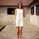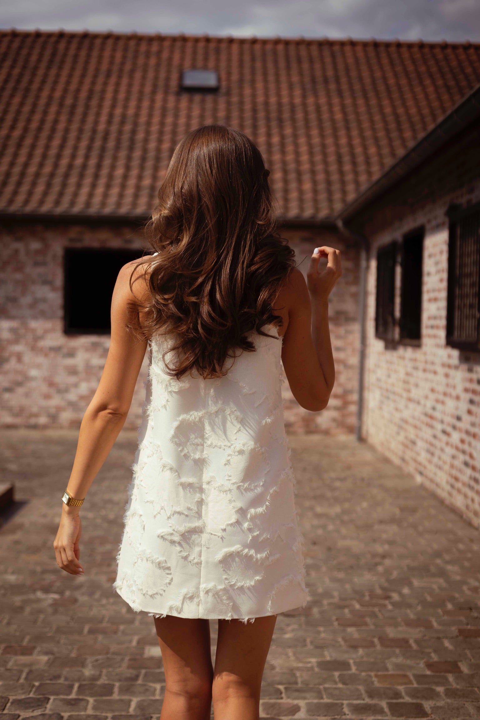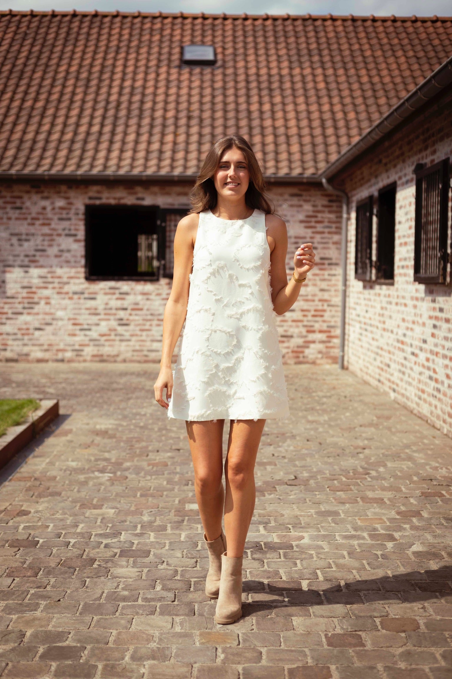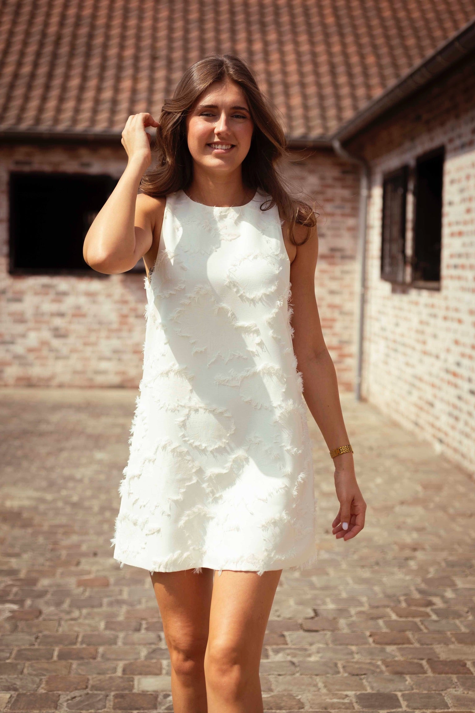 Dit mouwloze jurkje voelt net zo speciaal als het eruitziet dankzij de harige structuur die een opvallend en cozy effect geeft. De perfecte keuze voor wie iets anders wil dan klassiek, maar toch vrouwelijk wil blijven. Leuk met een gilet of blazer voor die eerste frisse herfstdagen.