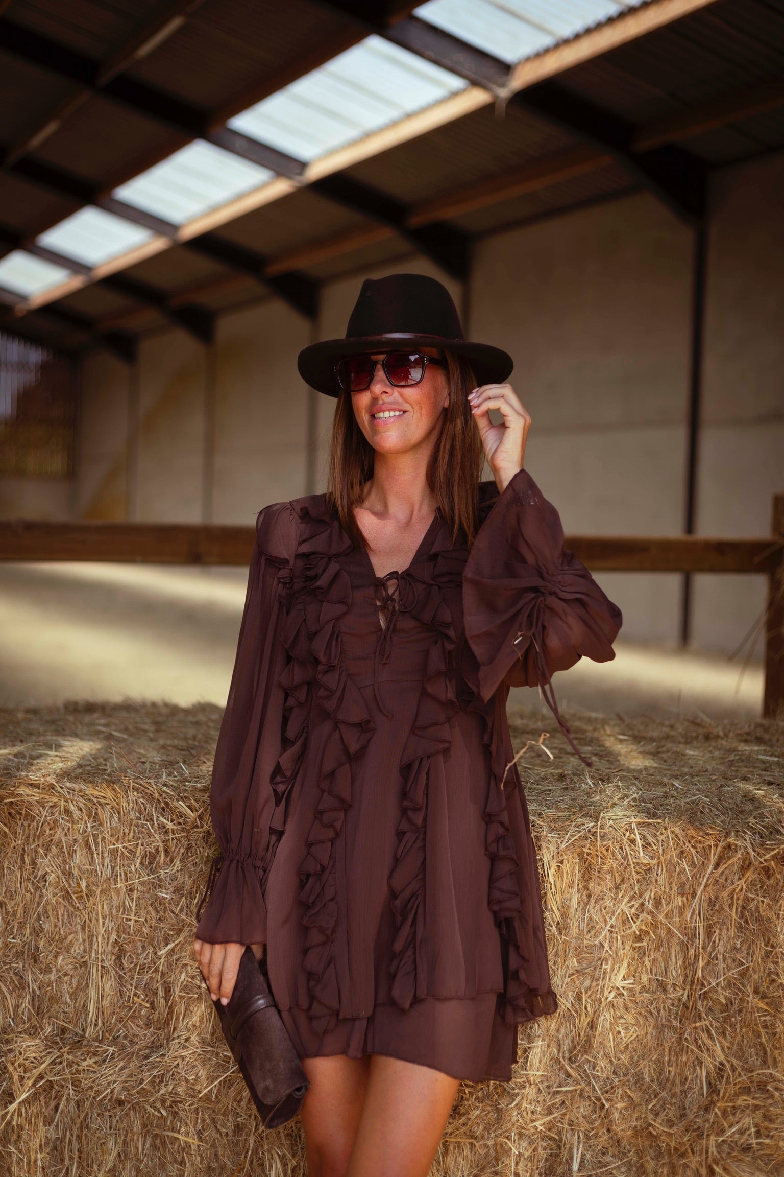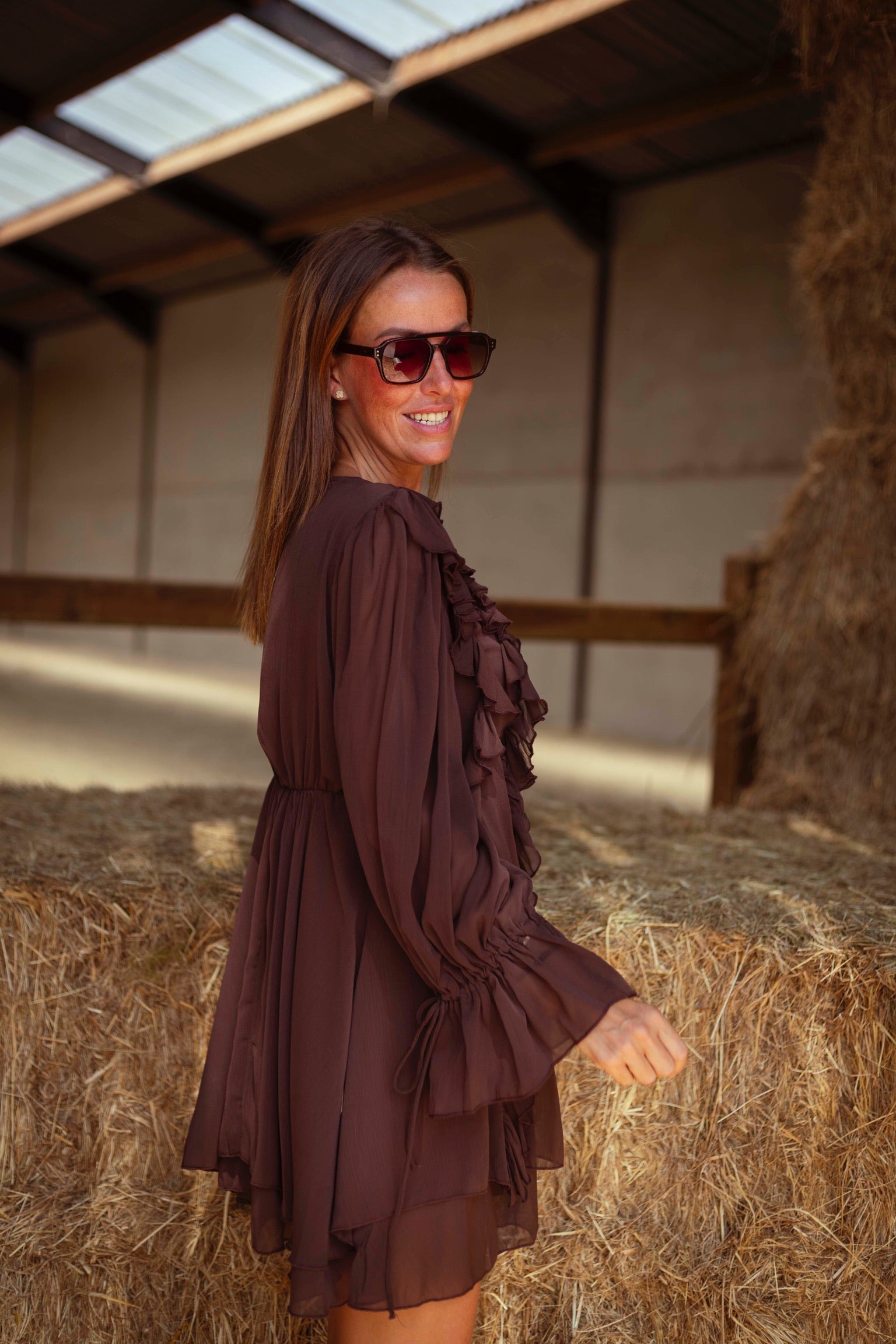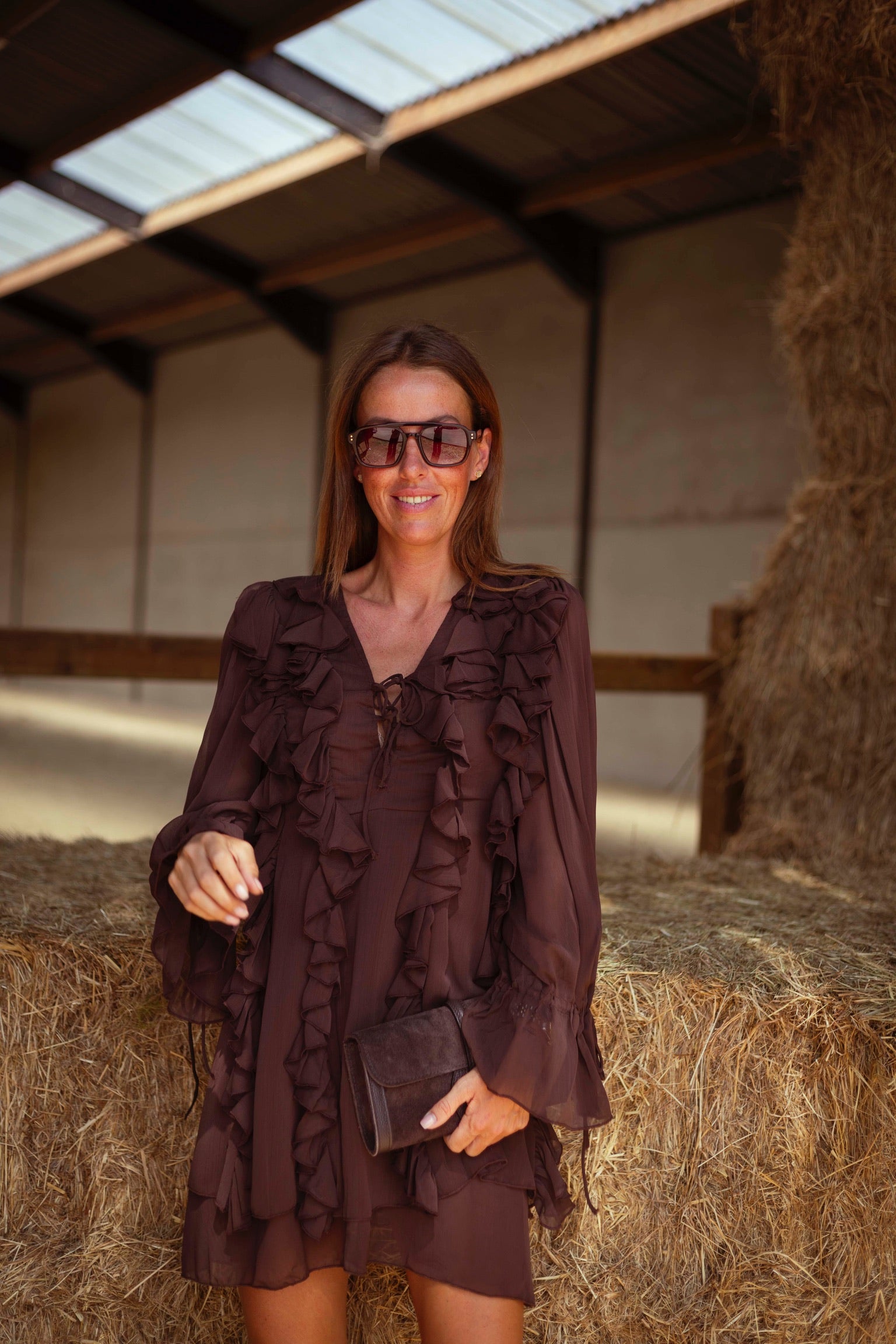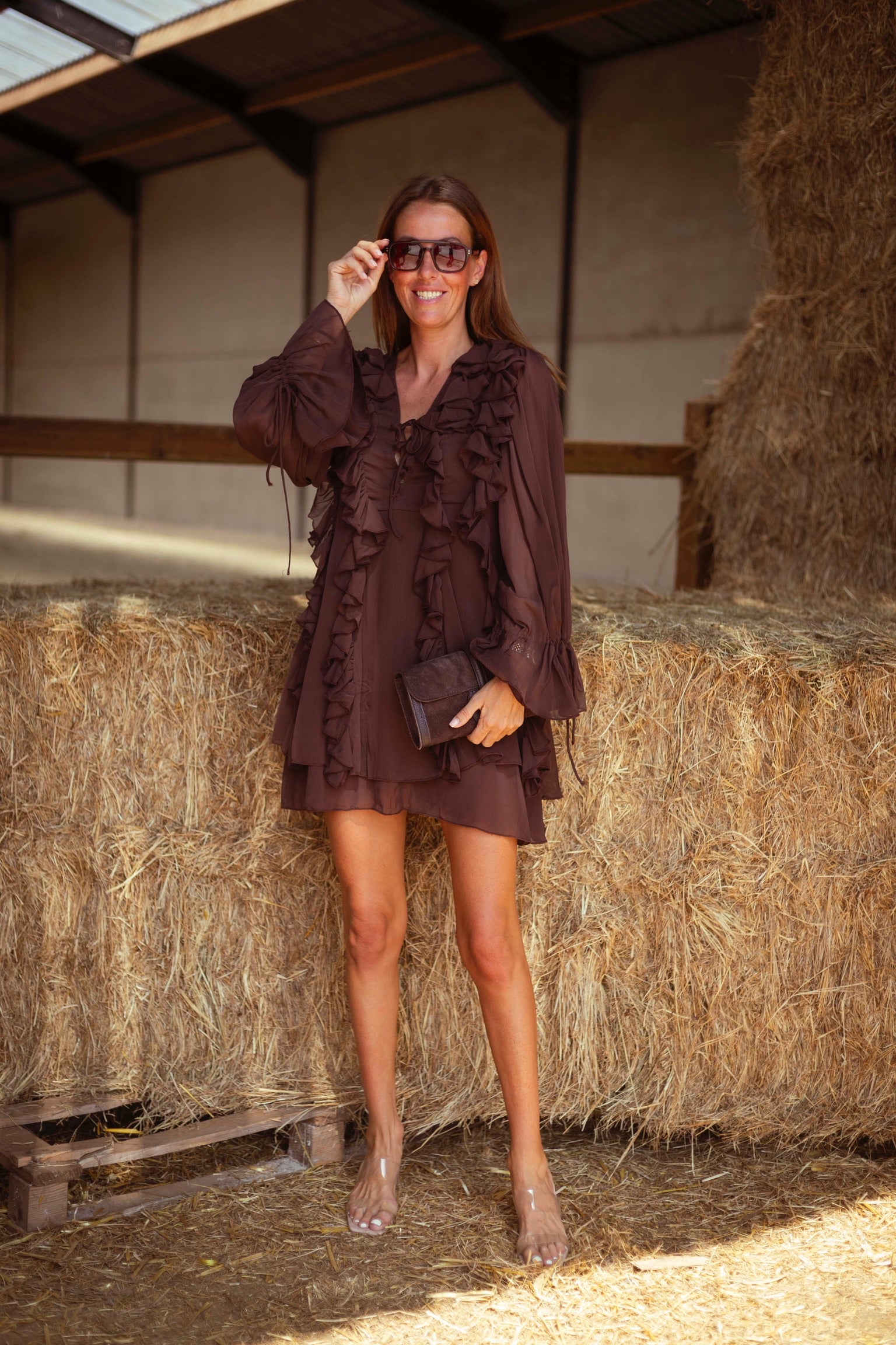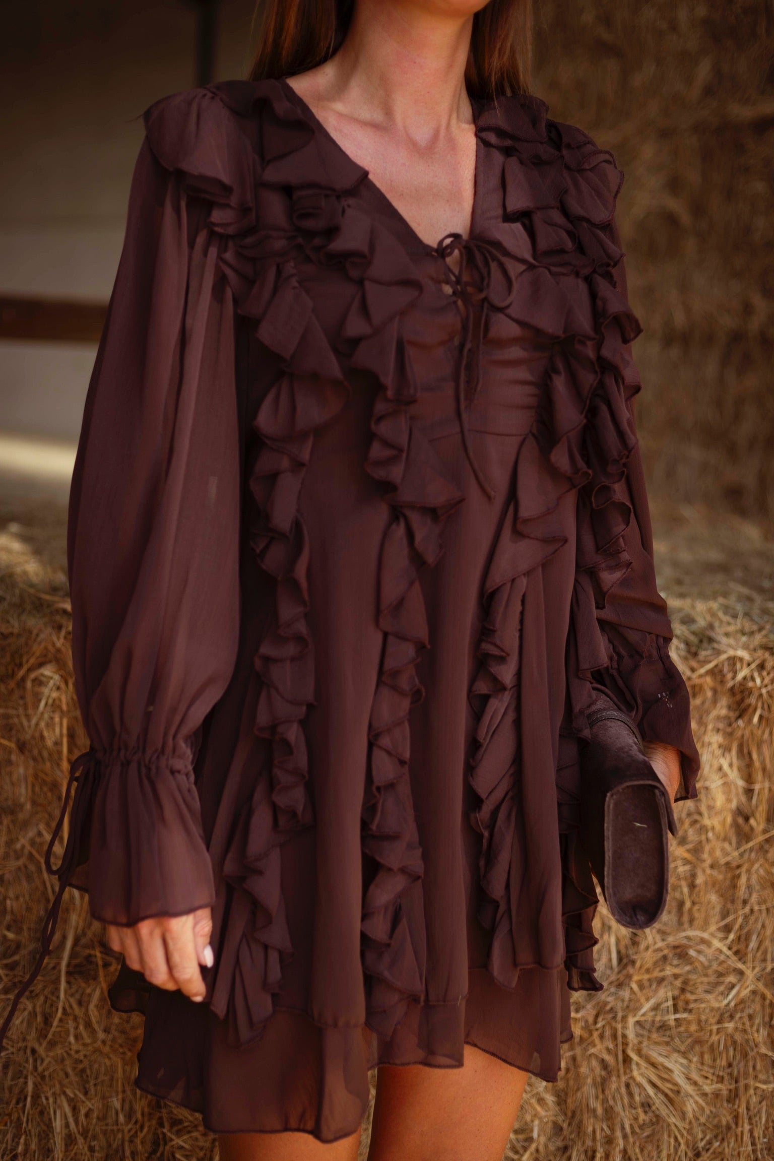 THELMA BROWN RUFFLE DRESS – Boetiek Pure Sense