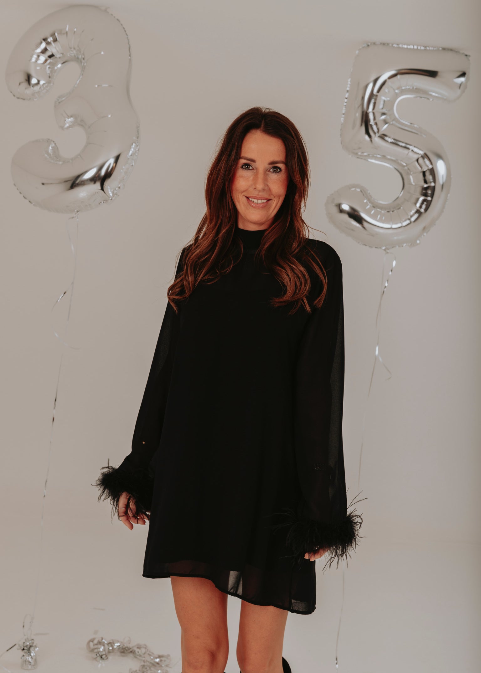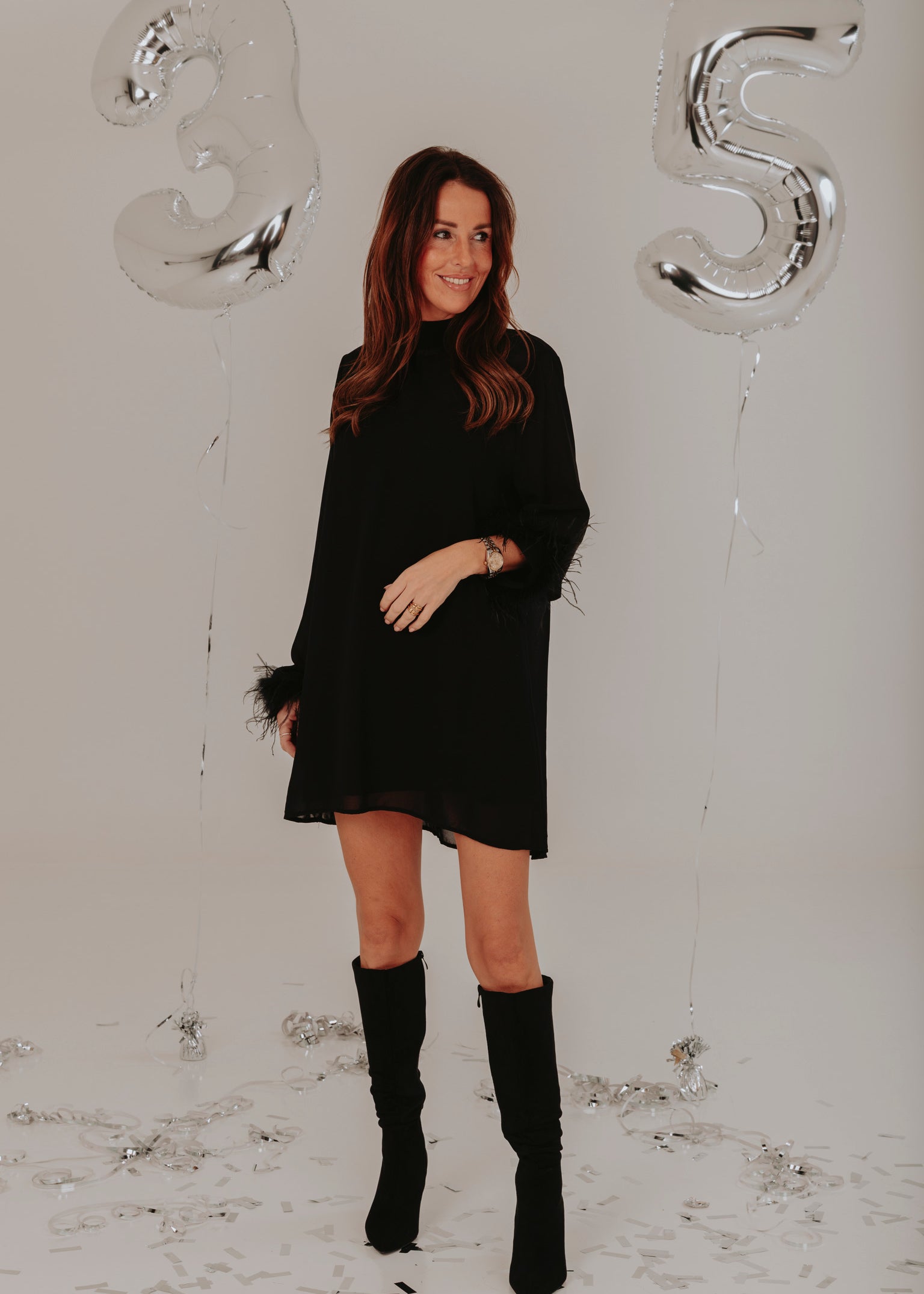 FESTIVE BLACK LACE CUT-OUT DRESS