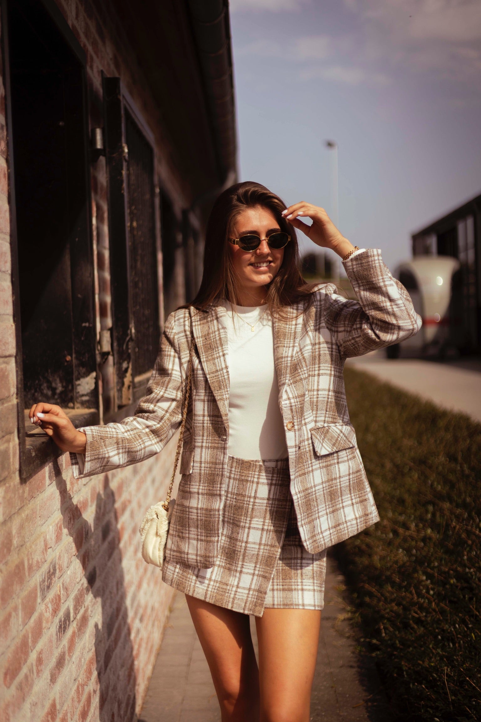 EVERLY BEIGE CHECKERED SKORT – Boetiek Pure Sense