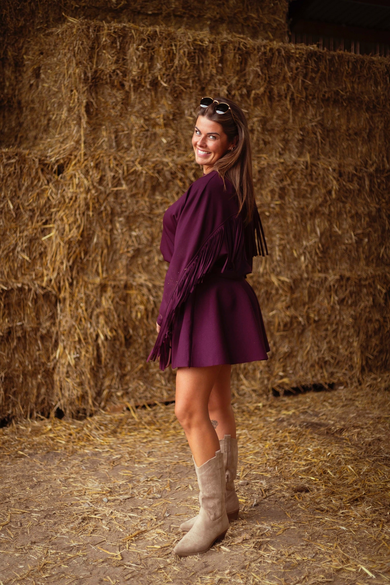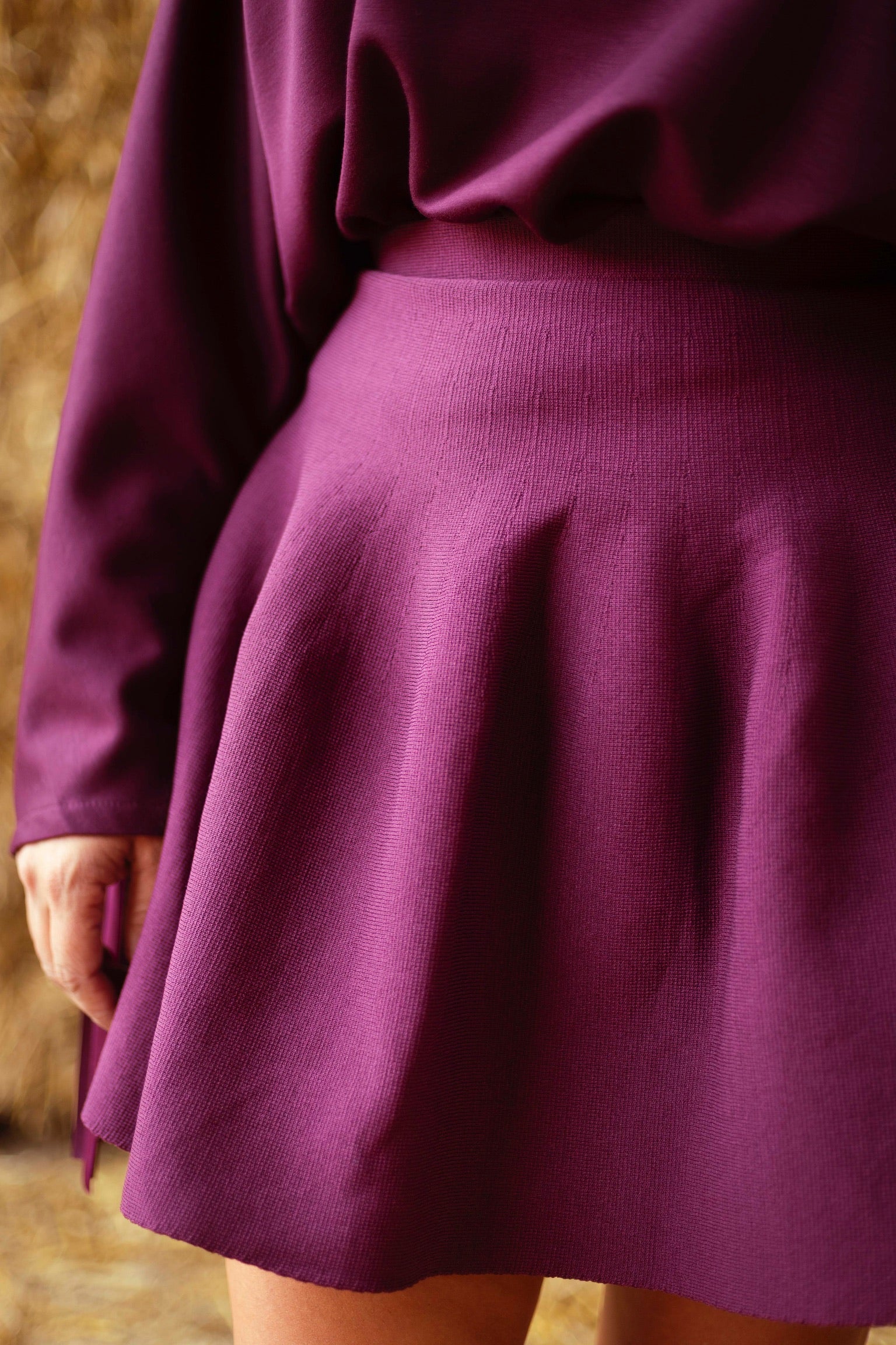 Een diepe bordeauxtint en een speels peplumdetail geven dit rokje een warme, herfstige charme. Elegant en toch speels, ideaal om te combineren met knusse knitwear of een chique blouse.
