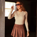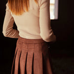 MIRANDA BROWN SUEDE PLISSE SKIRT