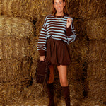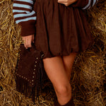 Een zacht suèdestuk met een luchtige, volumineuze vorm die elke outfit een speelse twist geeft. Ideaal te combineren met een strakke top of grofgebreide trui voor een perfect gebalanceerde herfstlook.