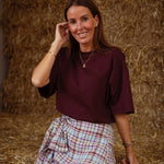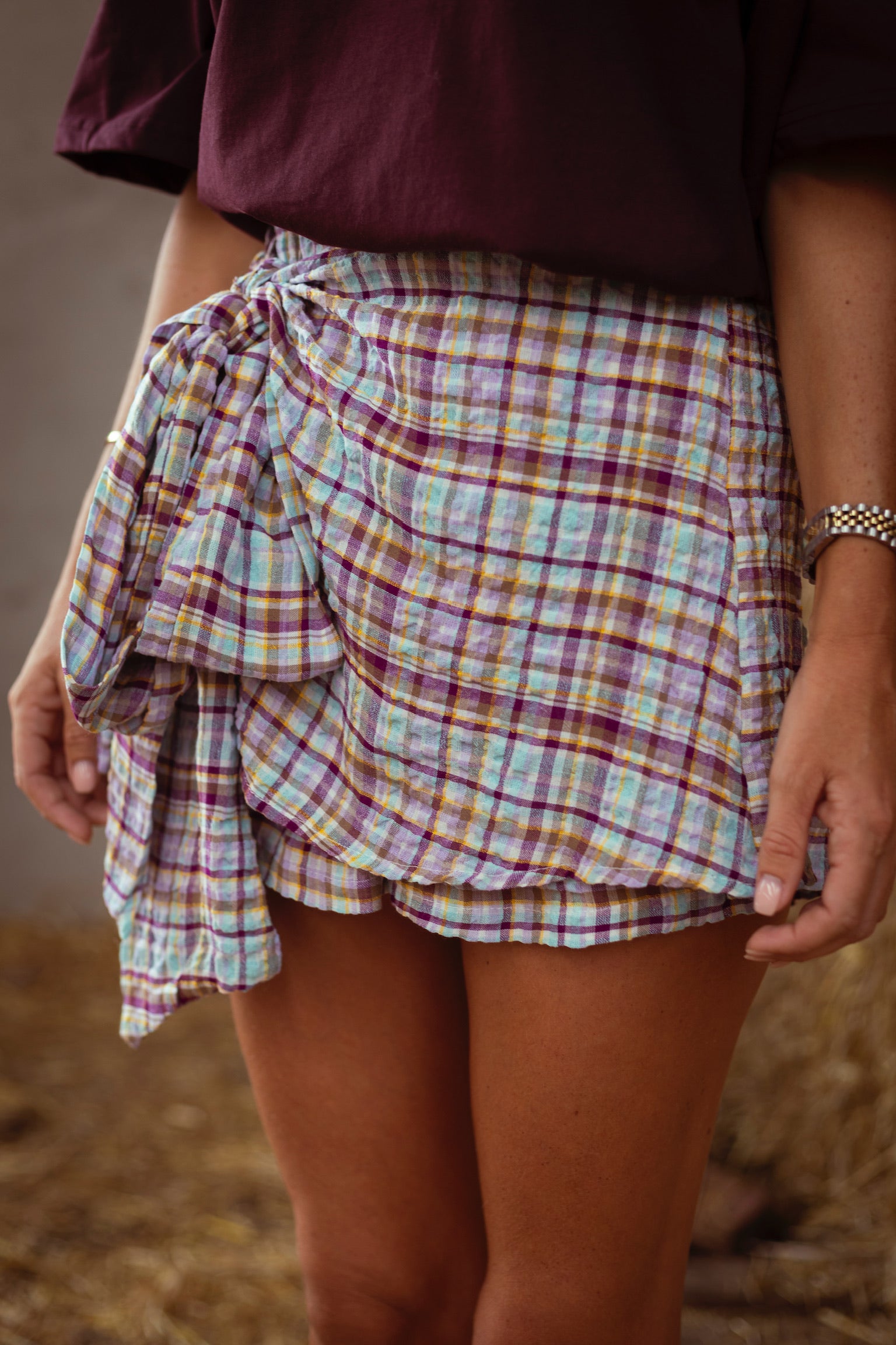 SAVANNAH BURGUNDY/BLUE CHECKERED WRAP SKORT