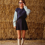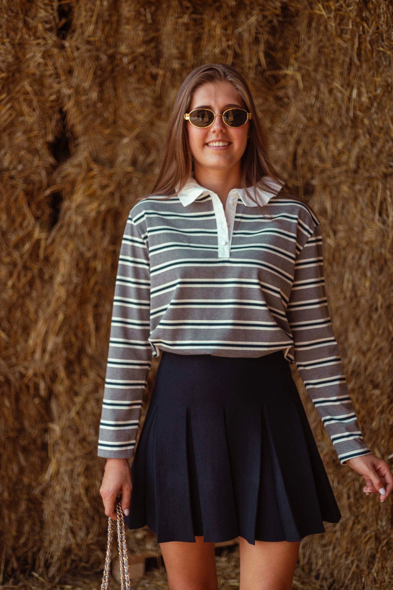 Een elegante plissérok in diepblauw die beweging en herfstgevoel moeiteloos combineert. Het luchtige materiaal geeft een speelse touch aan elke outfit, van casual tot chic.
