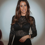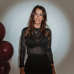 Een verfijnde longsleeve met een subtiele glinstering die het zwart extra diepte geeft. Ideaal om je herfstlook een vleugje elegantie te geven, zowel overdag als bij kaarslicht in de avond.