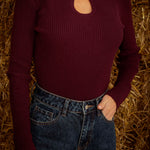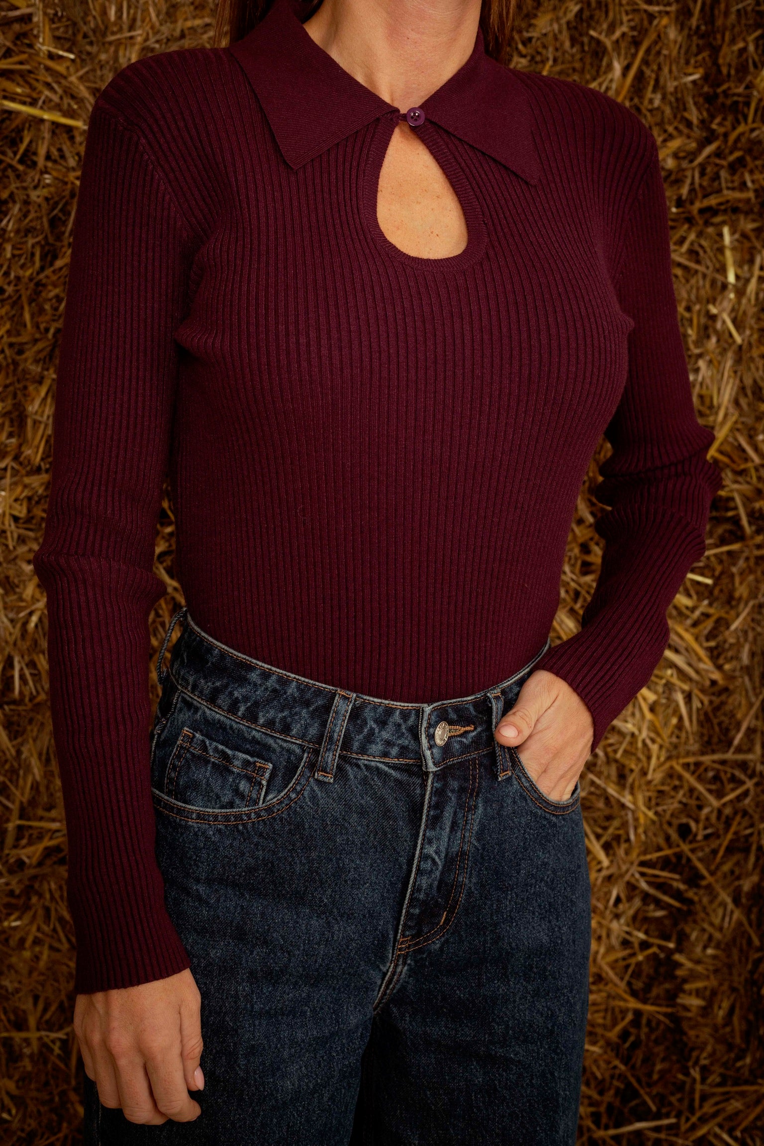 ROSAMUND BURGUNDY RIBBED LONGSLEEVE SHIRT