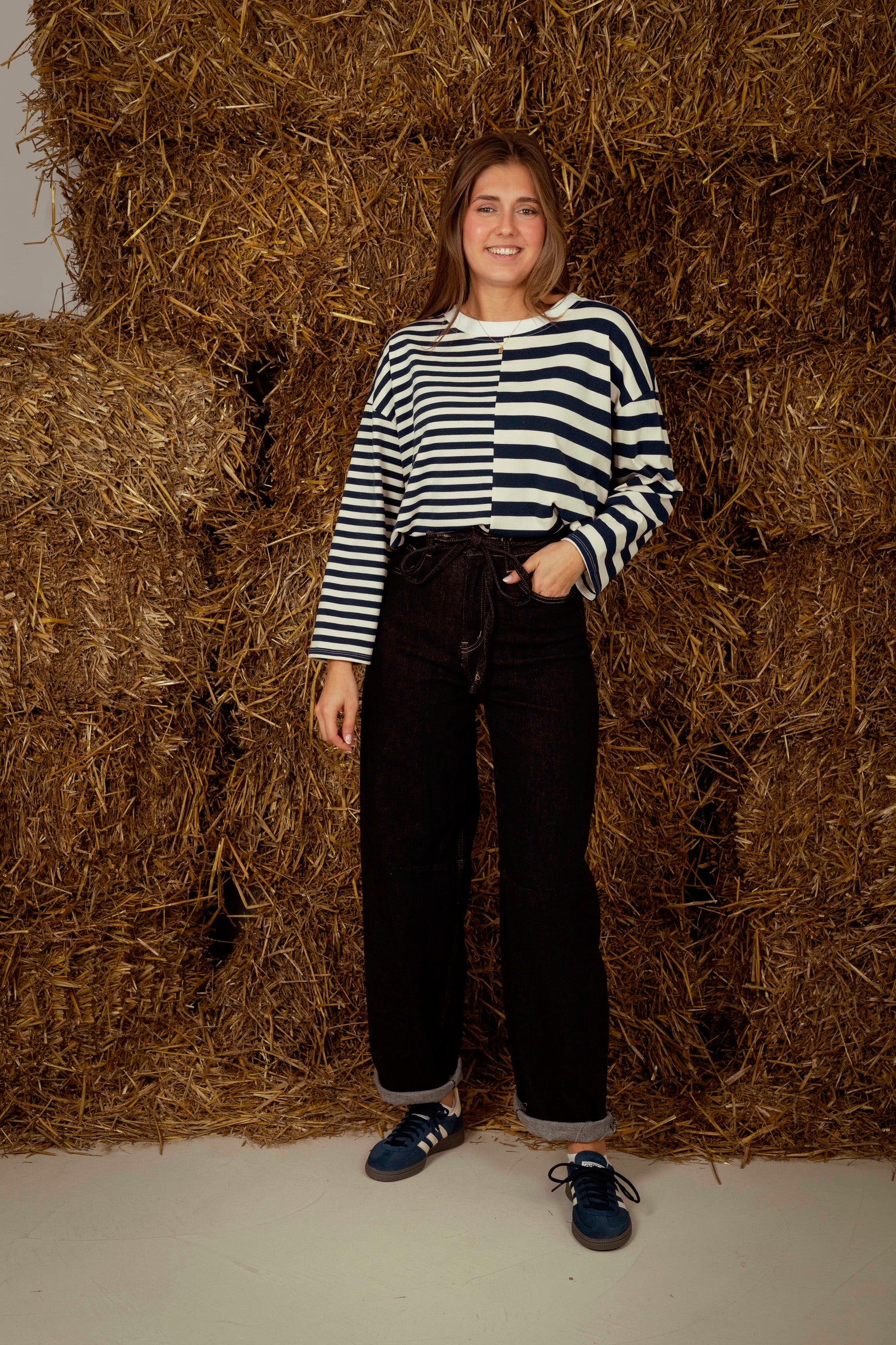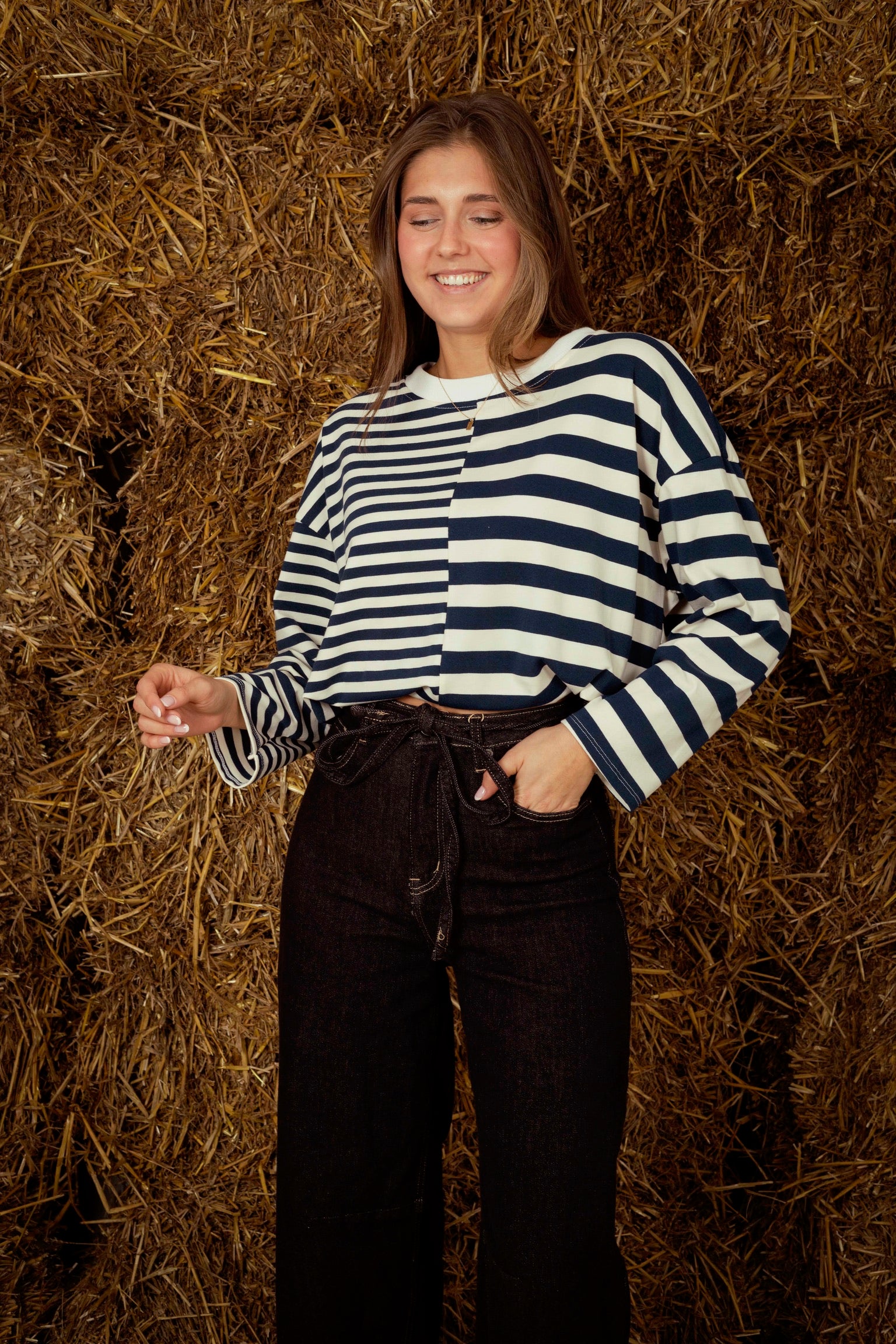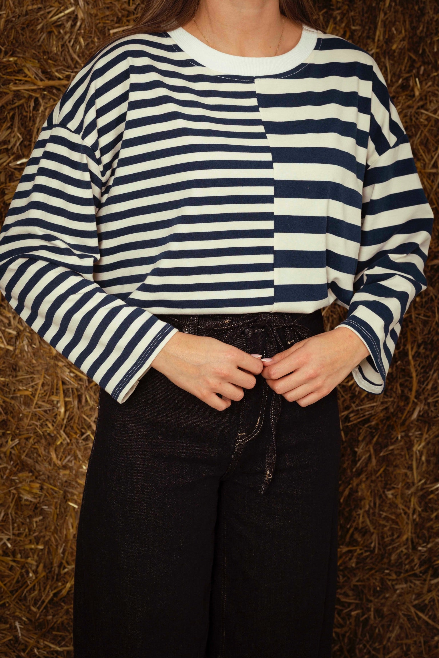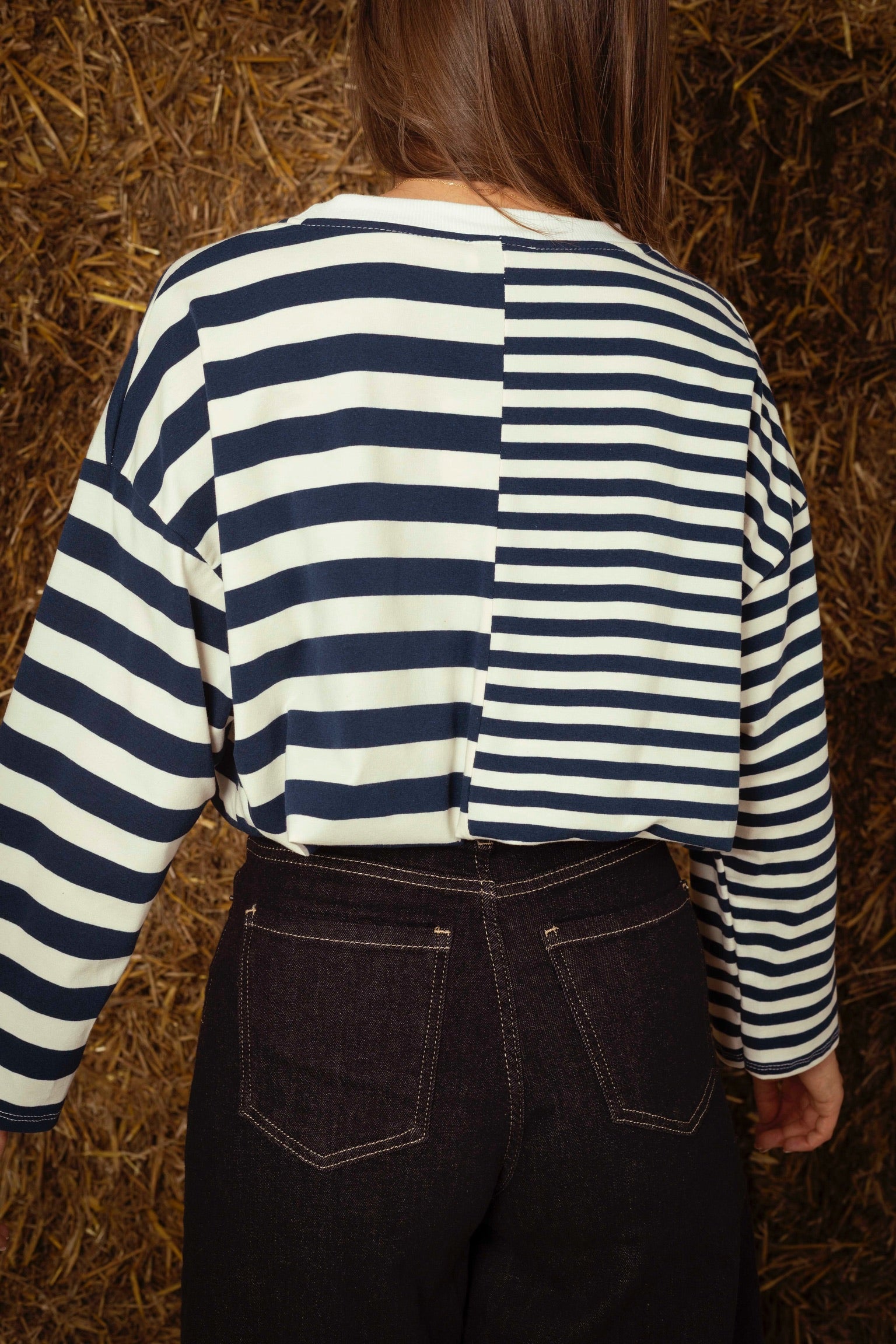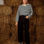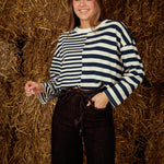 Een longsleeve met een speels contrast van fijne en bredere strepen die een eigentijdse twist aan je herfstlook geven. Perfect om te combineren met jeans of een zachte corduroy voor een relaxte, gelaagde stijl.
