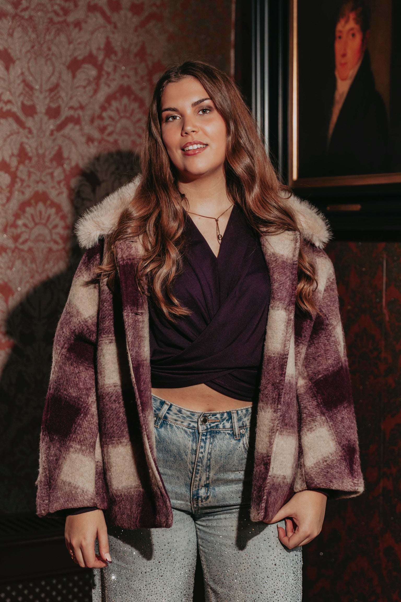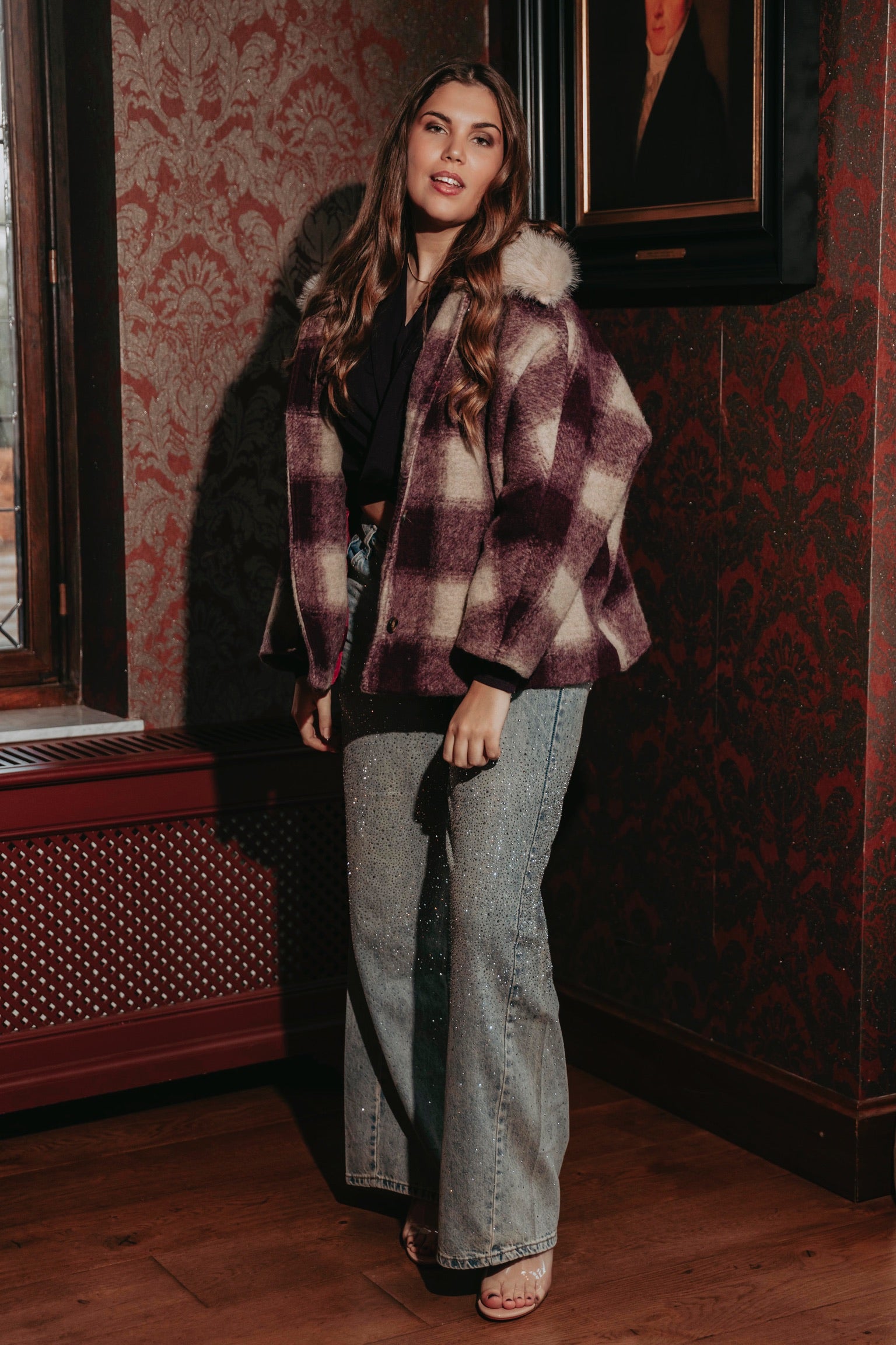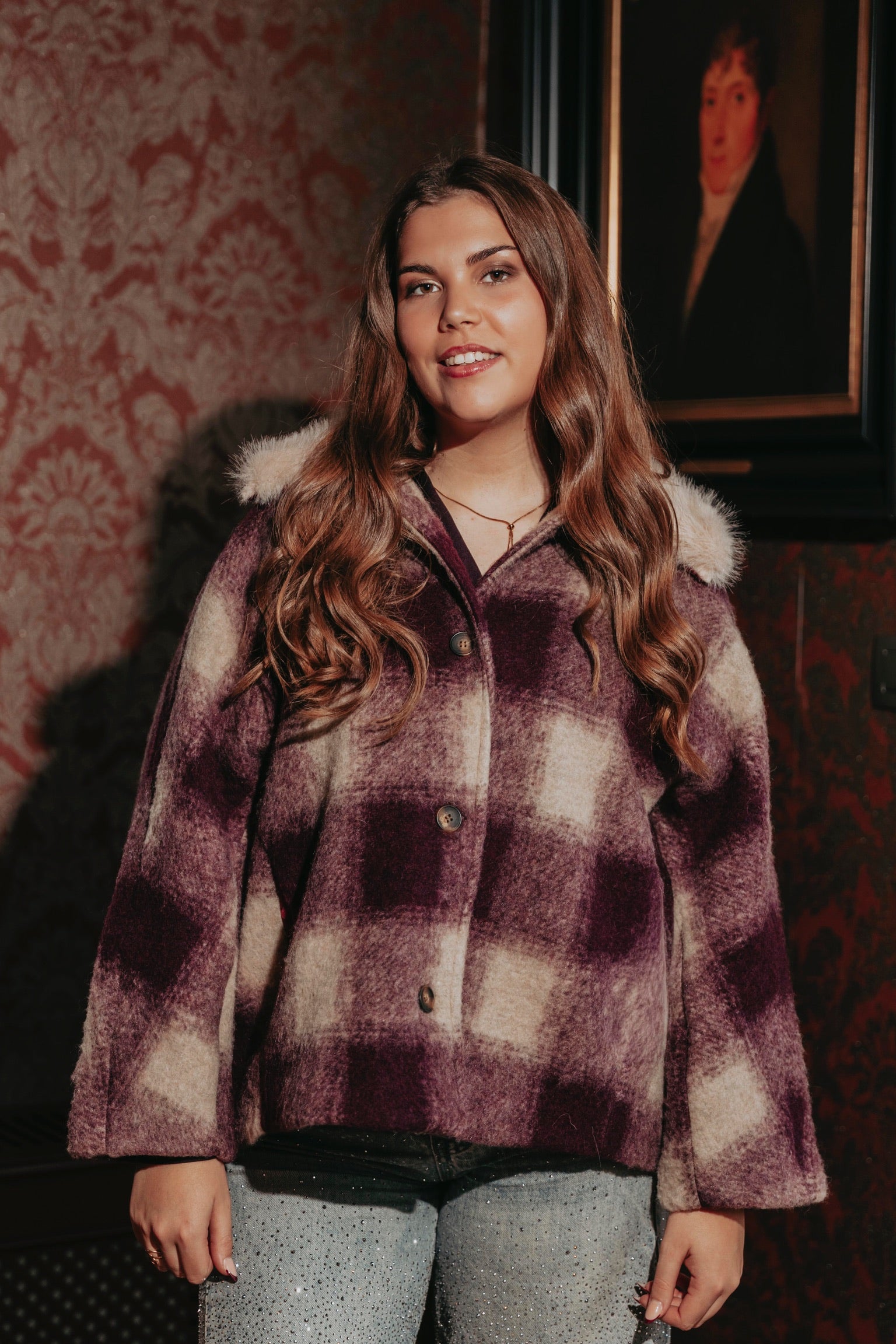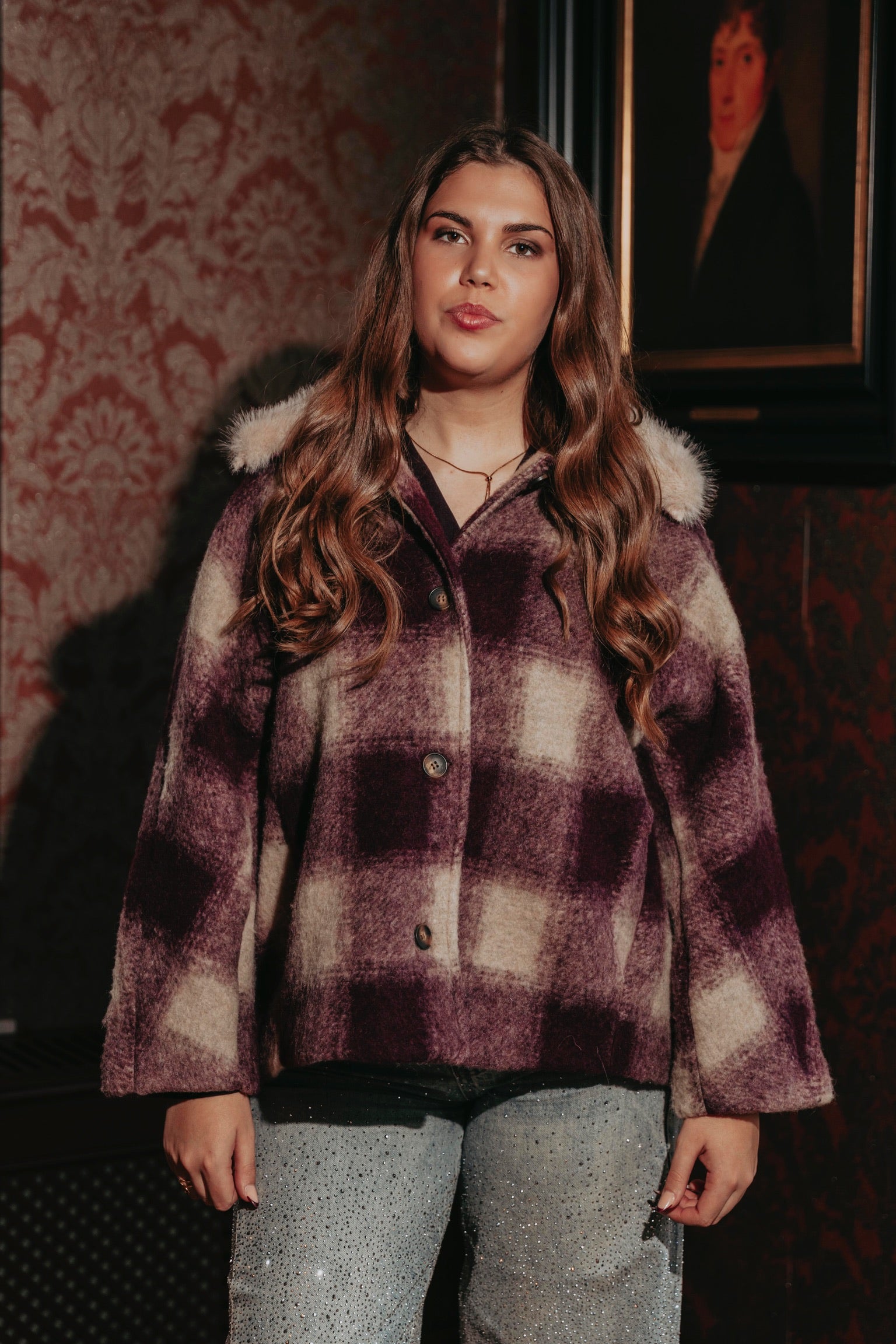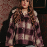 FUR YOUR WARDROBE BURGUNDY CHECKERED JACKET