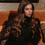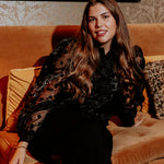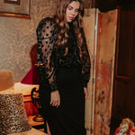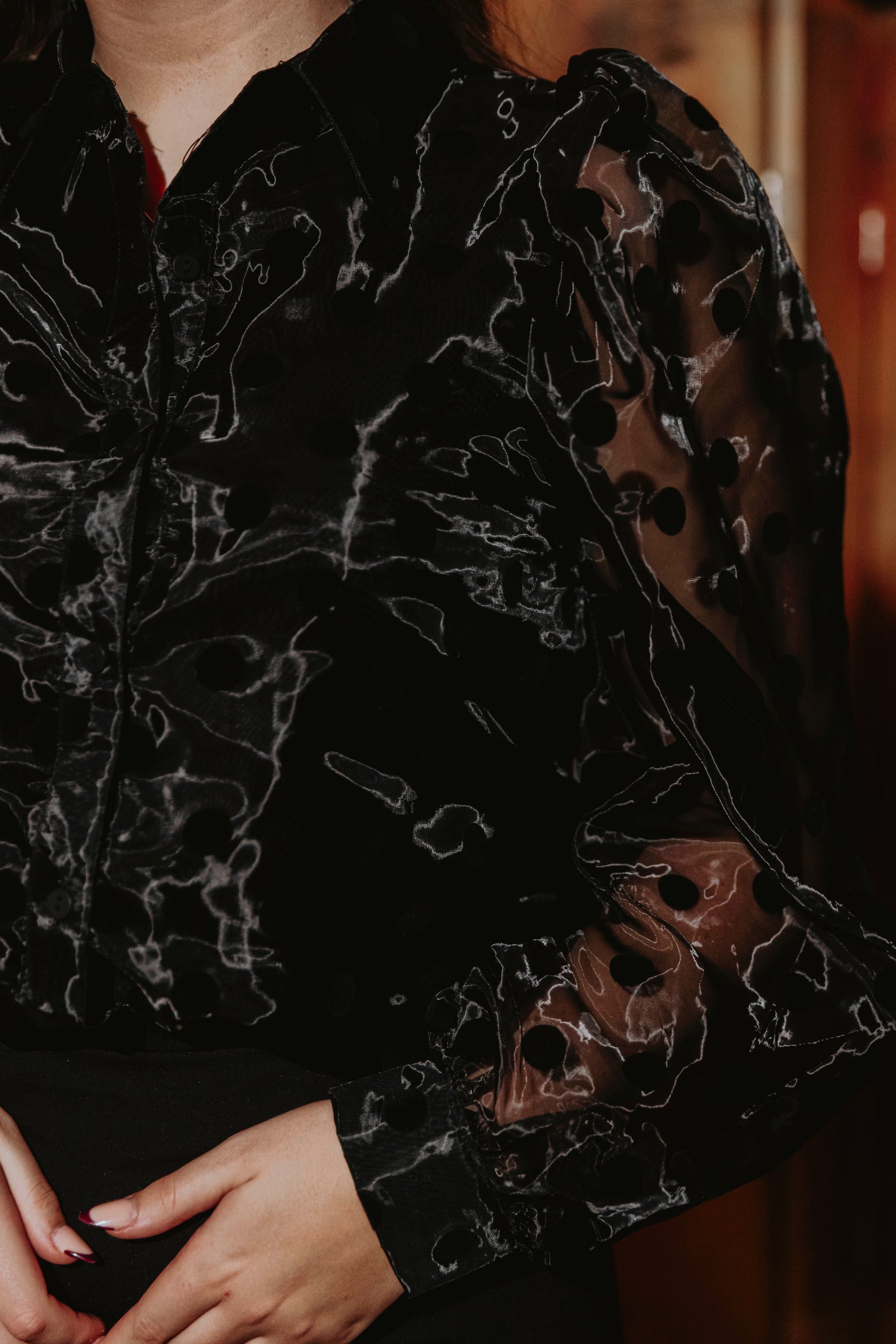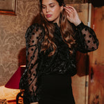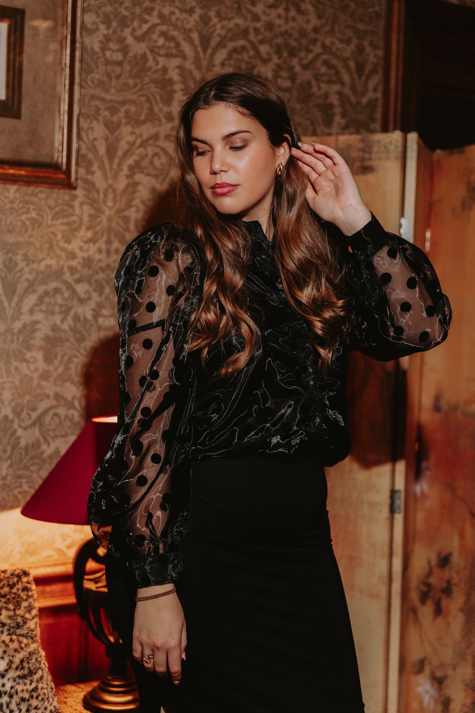 Deze zwarte blouse met speelse stippen geeft je meteen een energieke party‑vibe en laat je schitteren op de kerst- en nieuwjaarsfestiviteiten. Perfect om de dansvloer te veroveren en alle ogen op je te trekken.