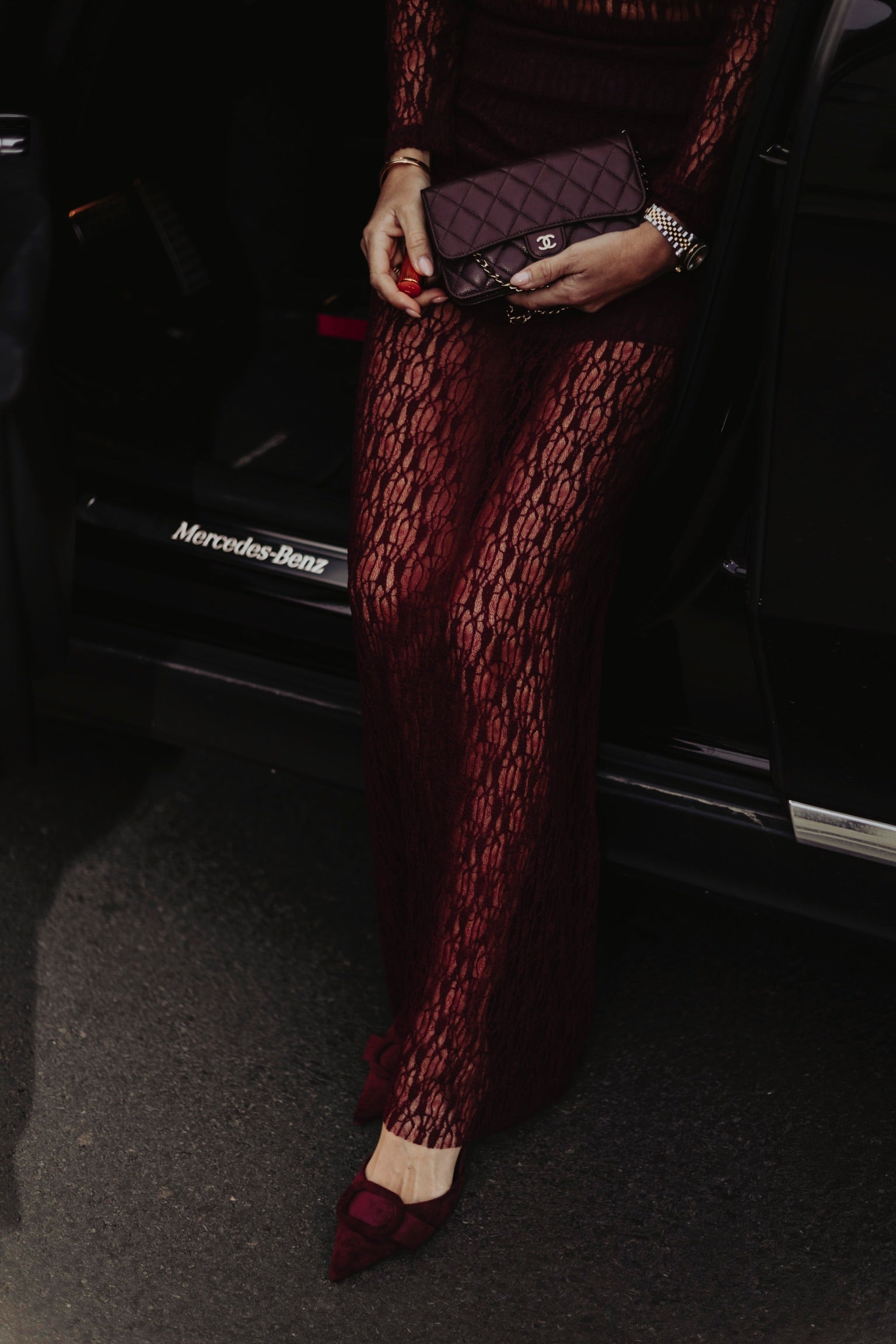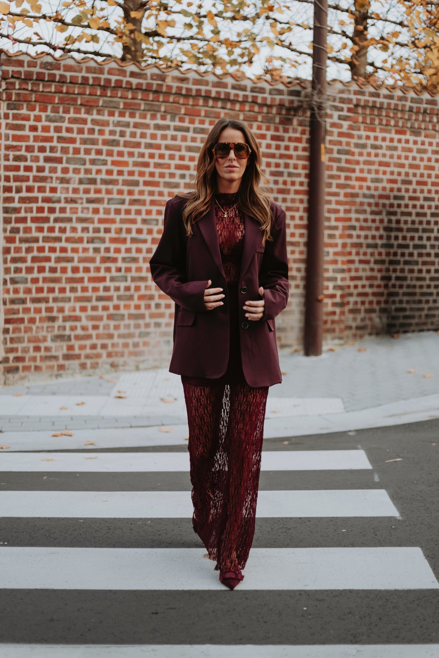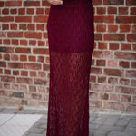 Diepe bordeauxrood en fijne kanten details zorgen voor een elegante herfst-winterlook. Zowel solo als in combinatie met een bijpassende blouse krijgt het een verfijnde uitstraling. Perfect te stylen met laarzen of hakken voor een chique, seizoenproof outfit.
