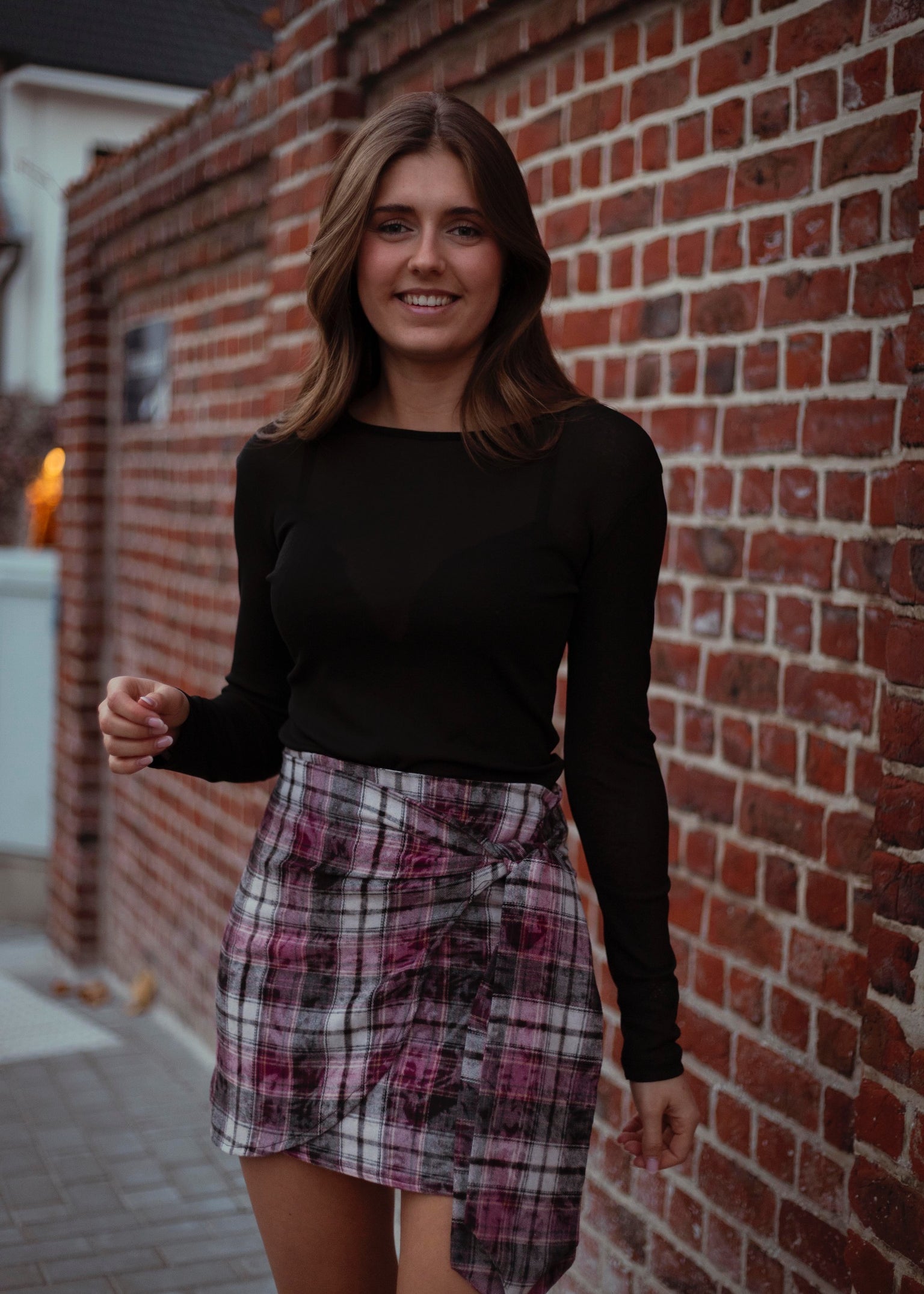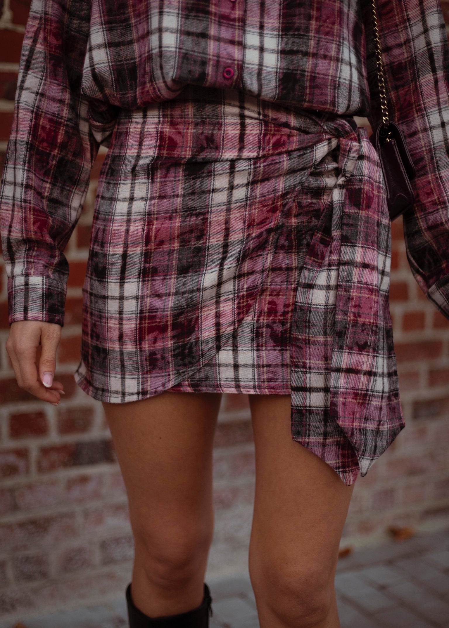 HAZY HUG BORDEAUX CHECKERED SKIRT