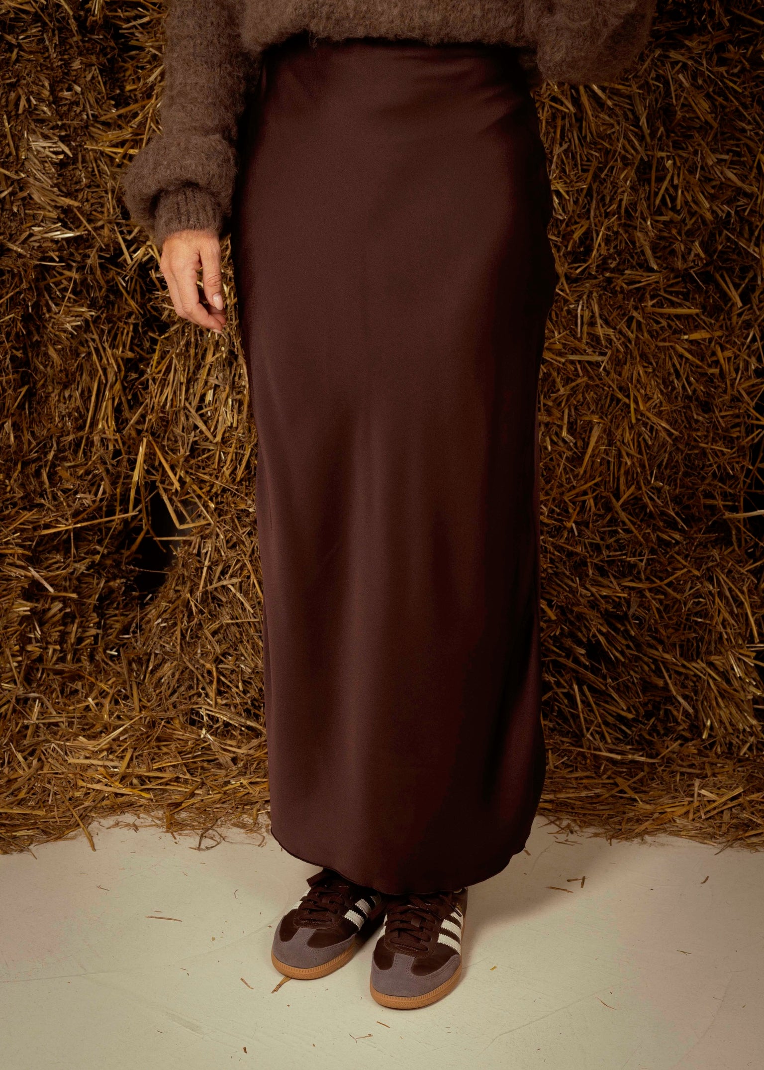 NOVA NOVEMBER BROWN SATIN SKIRT