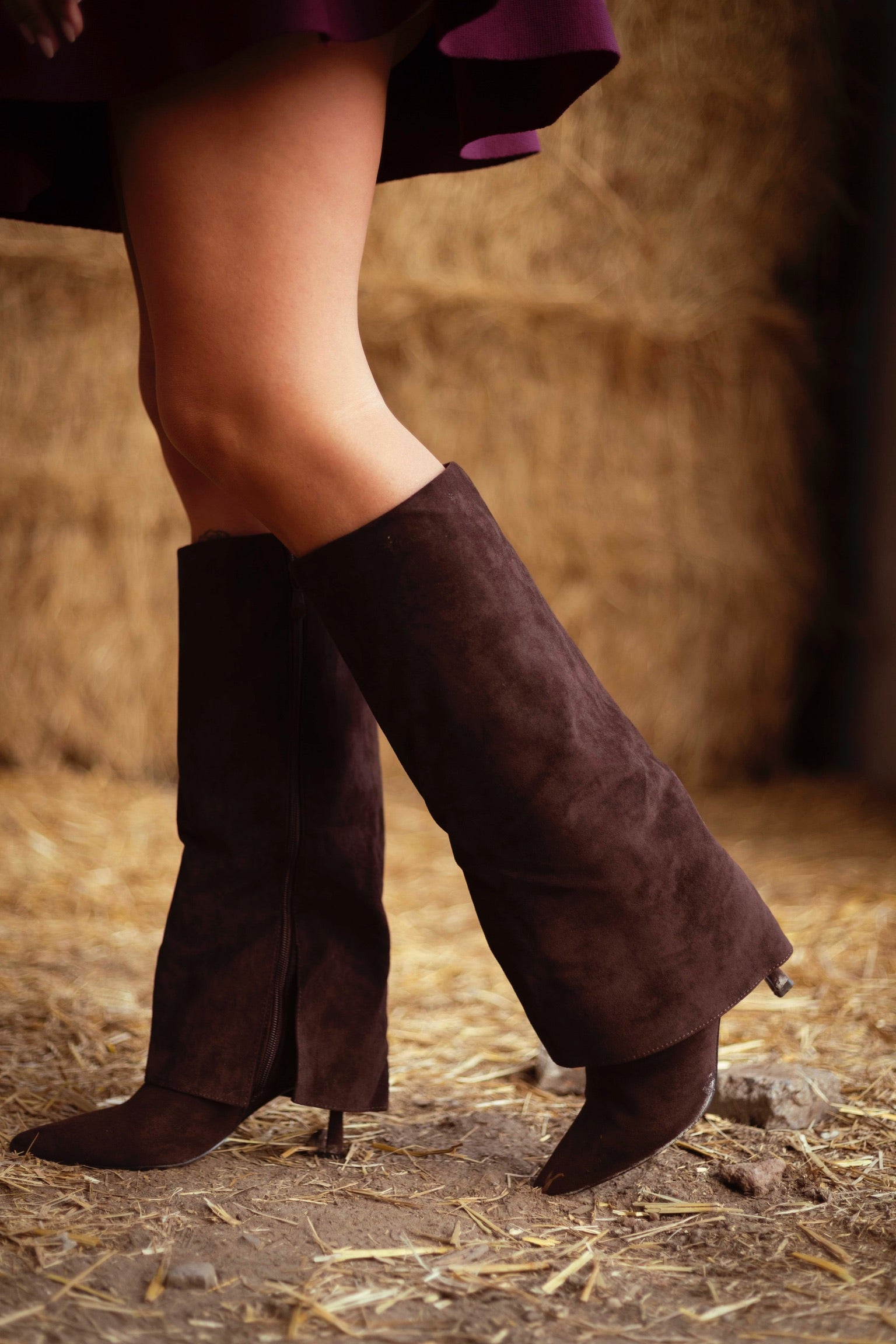 Met hun warme, bruine suède en elegante hak geven deze boots een verfijnde twist aan je herfstoutfits. De zachte omslag en diepe herfstkleur maken ze perfect voor frisse dagen vol vallende bladeren en gouden namiddagen.