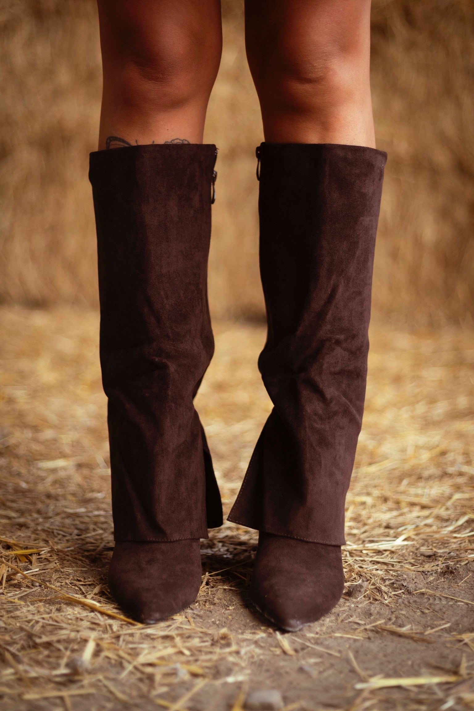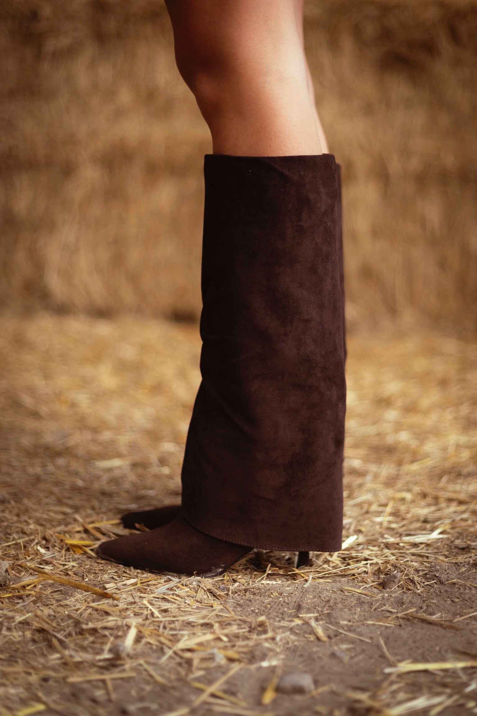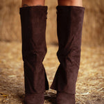 LIZZIE BROWN SUEDE FOLD OVER HEEL BOOTS